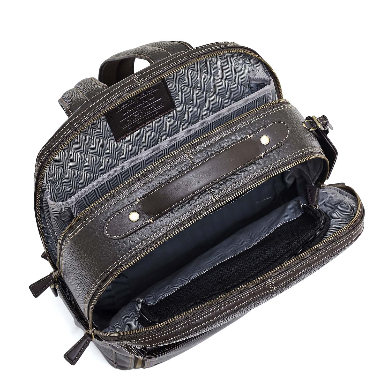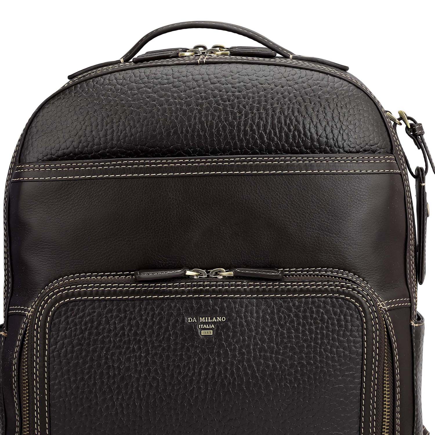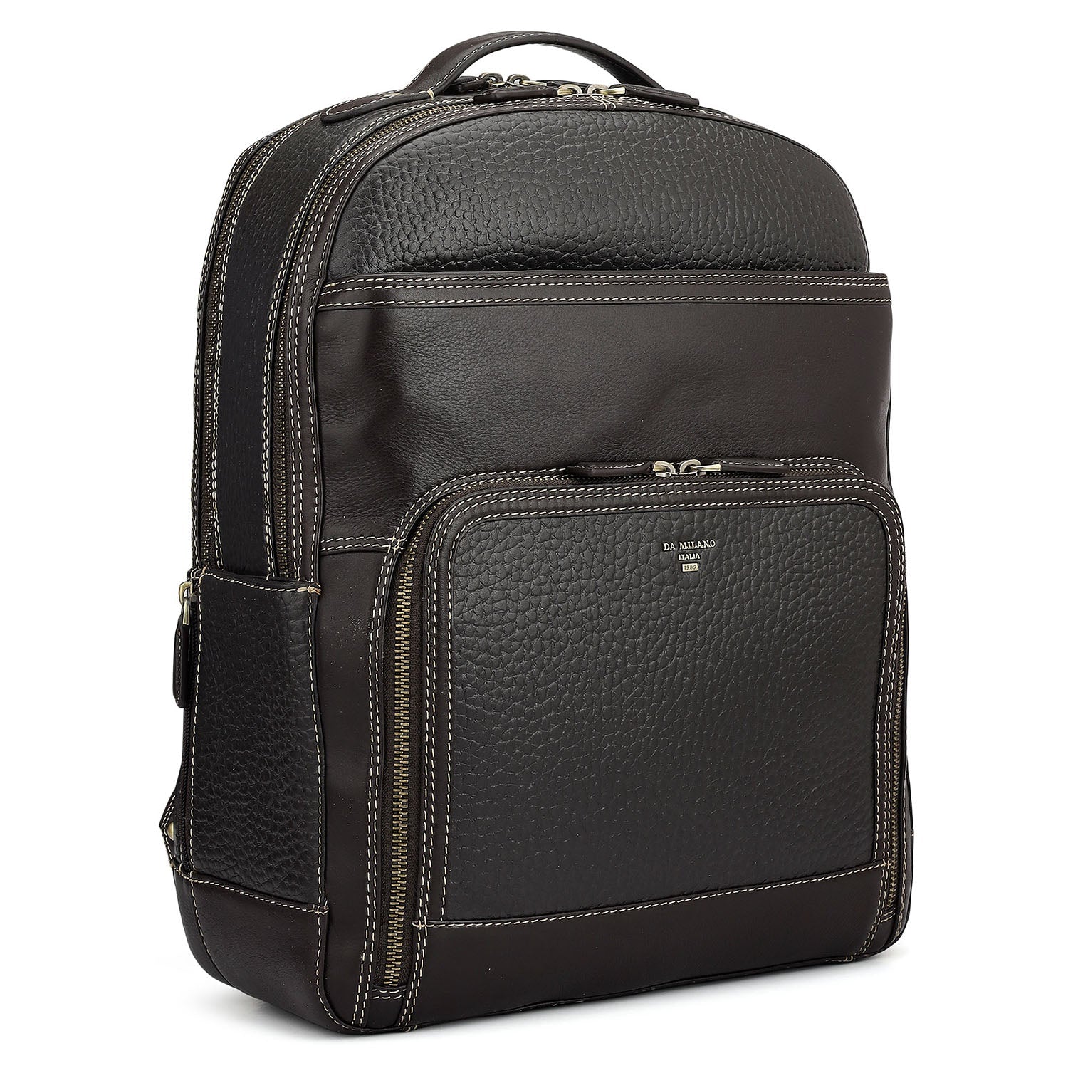 Leather backpack with a play of texture. Featuring multipurpose pockets on the exterior as well as interior to enhance utility. This functional bag is the perfect fusion of Italian craftsmanship and contemporary style. This bag can fit a standard laptop up to 15 inches.