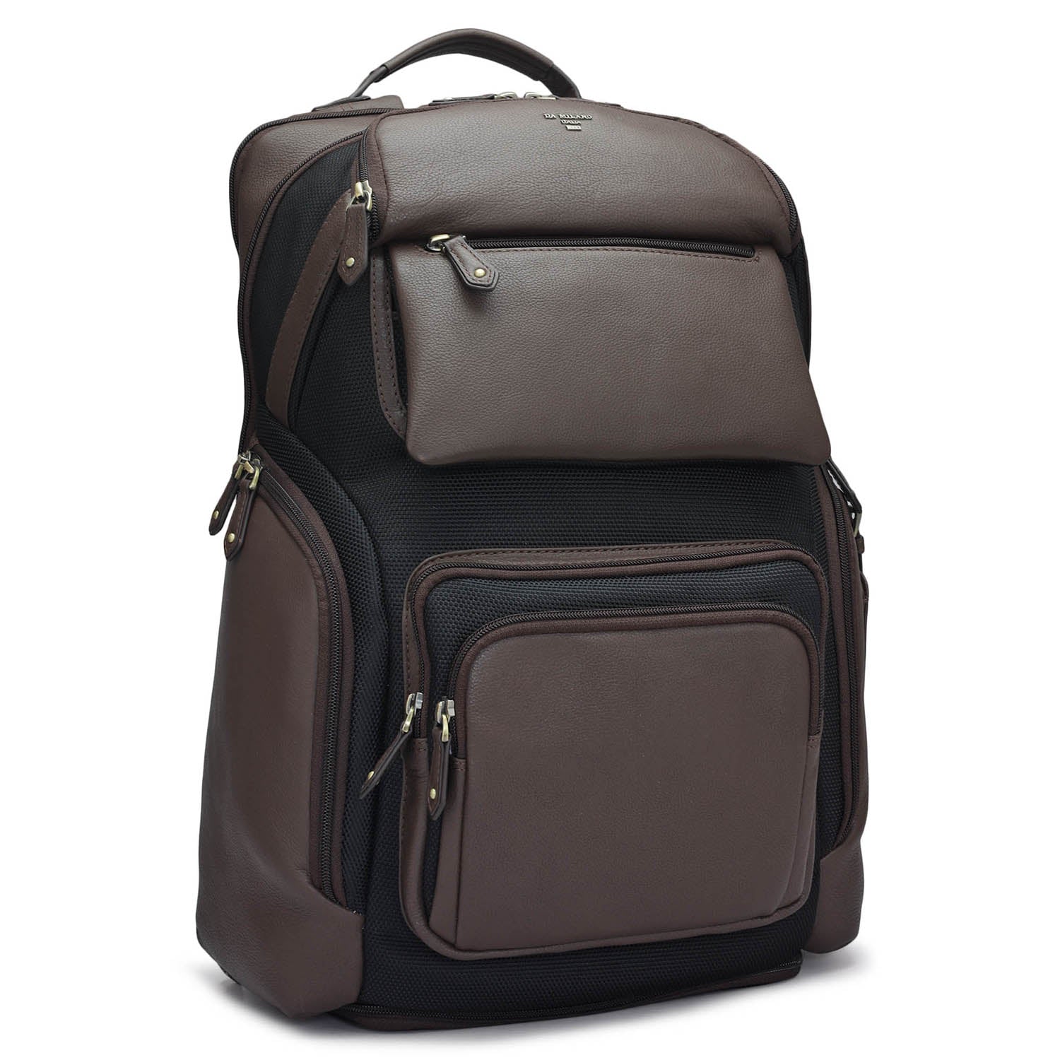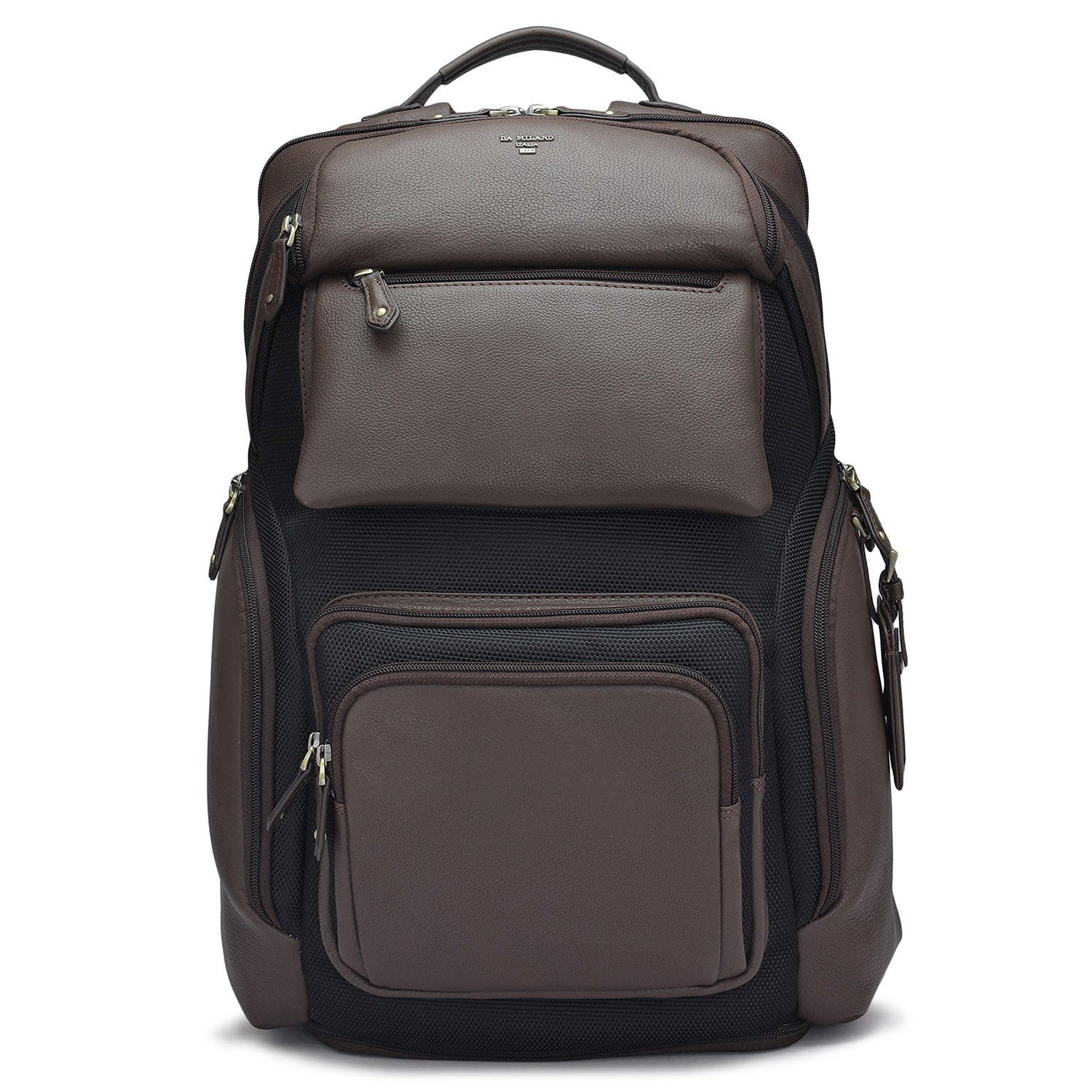 Leather backpack with a play of texture. Featuring multipurpose pockets on the exterior as well as interior to enhance utility. This functional bag is the perfect fusion of Italian craftsmanship and contemporary style. Comes with a detachable shoulder strap, and the bag can fit a standard laptop up to 16 inches.