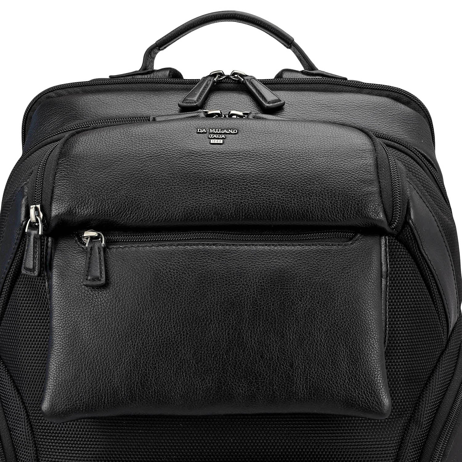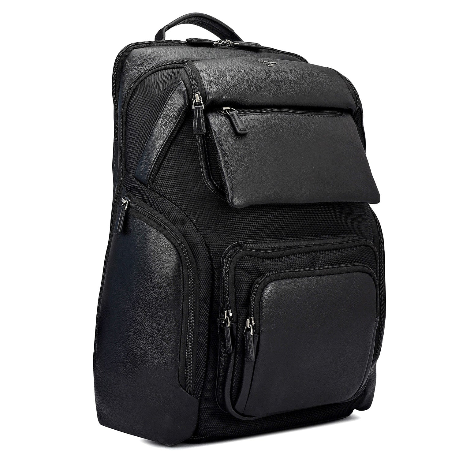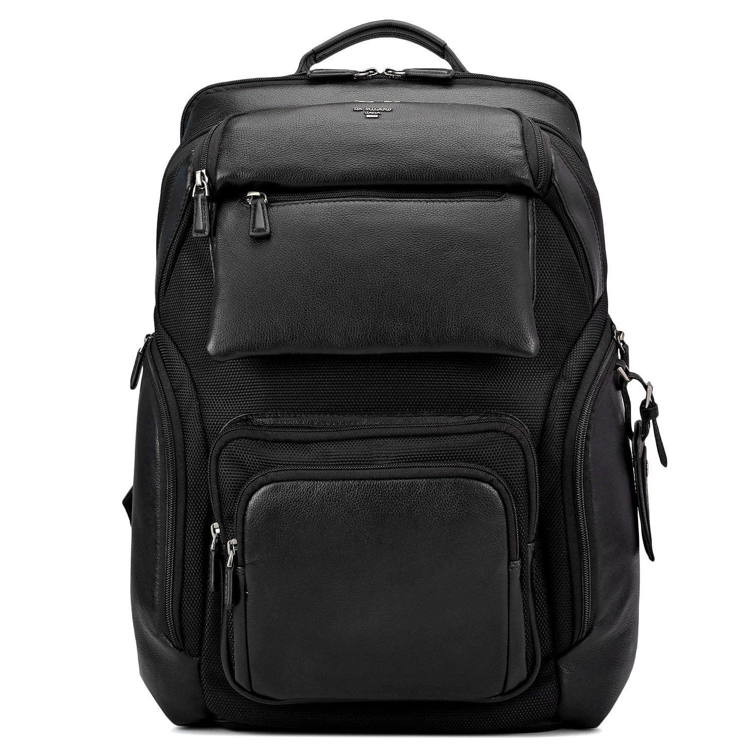 Leather backpack with a play of texture. Featuring multipurpose pockets on the exterior as well as interior to enhance utility. This functional bag is the perfect fusion of Italian craftsmanship and contemporary style. This backpack can fit a standard laptop up to 16 inches.
