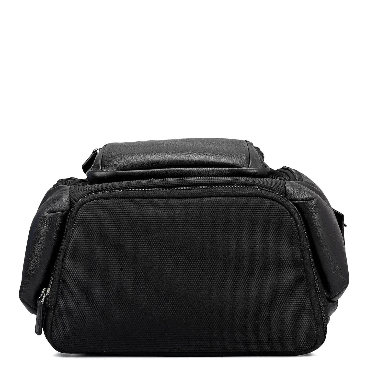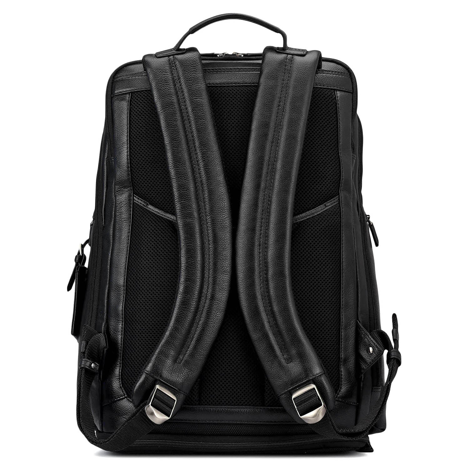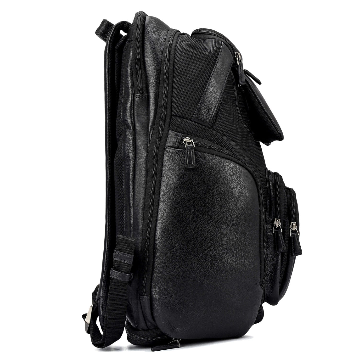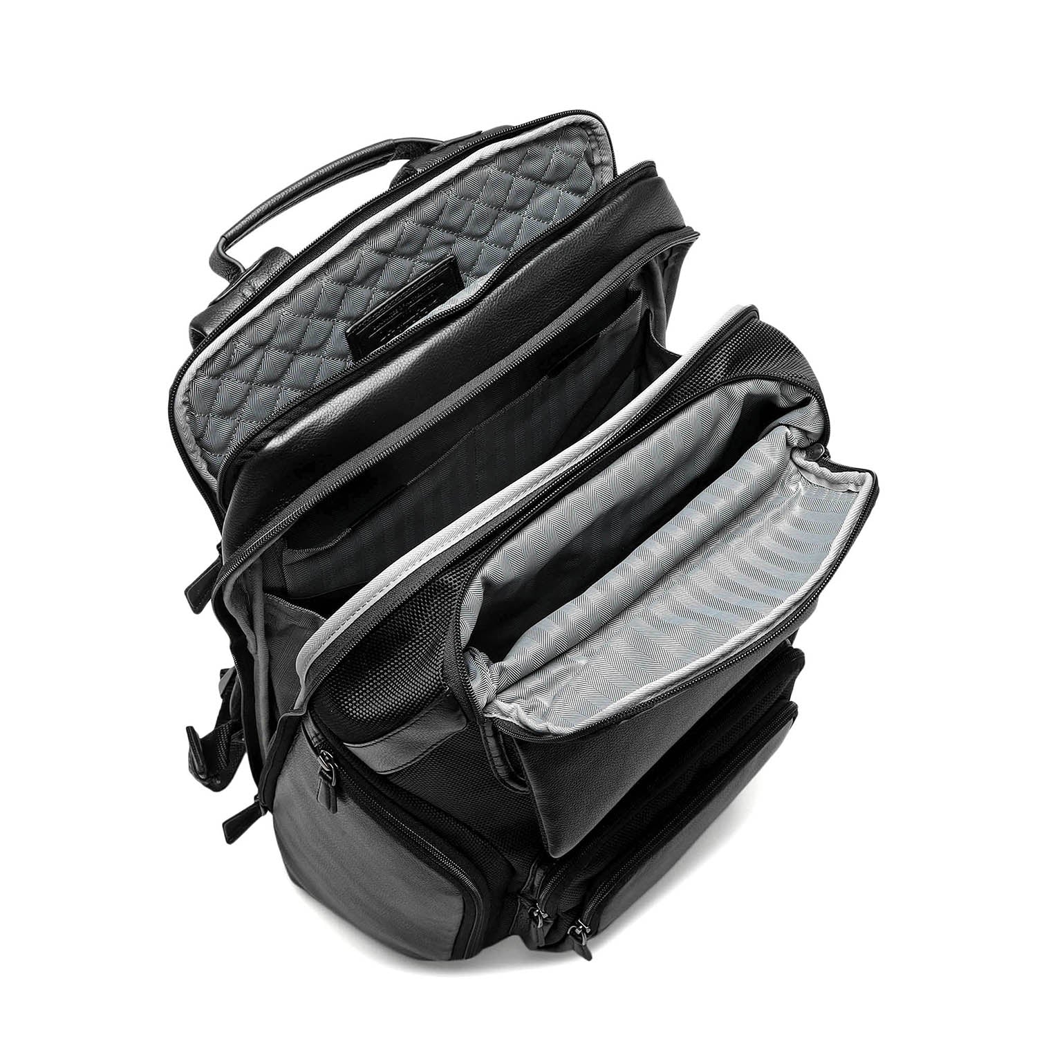 Leather backpack with a play of texture. Featuring multipurpose pockets on the exterior as well as interior to enhance utility. This functional bag is the perfect fusion of Italian craftsmanship and contemporary style. This backpack can fit a standard laptop up to 16 inches.