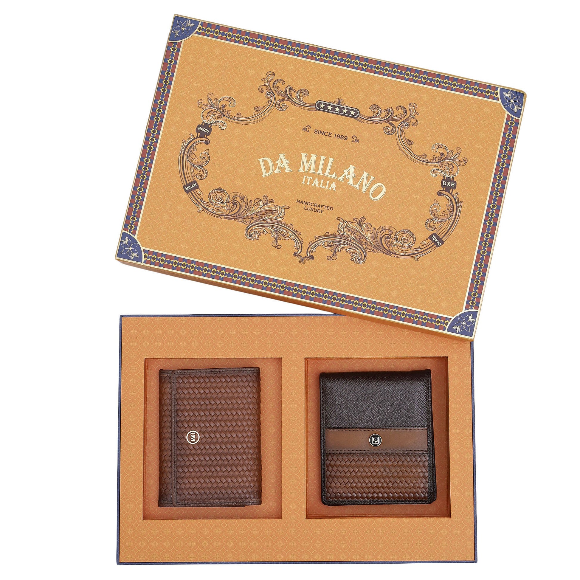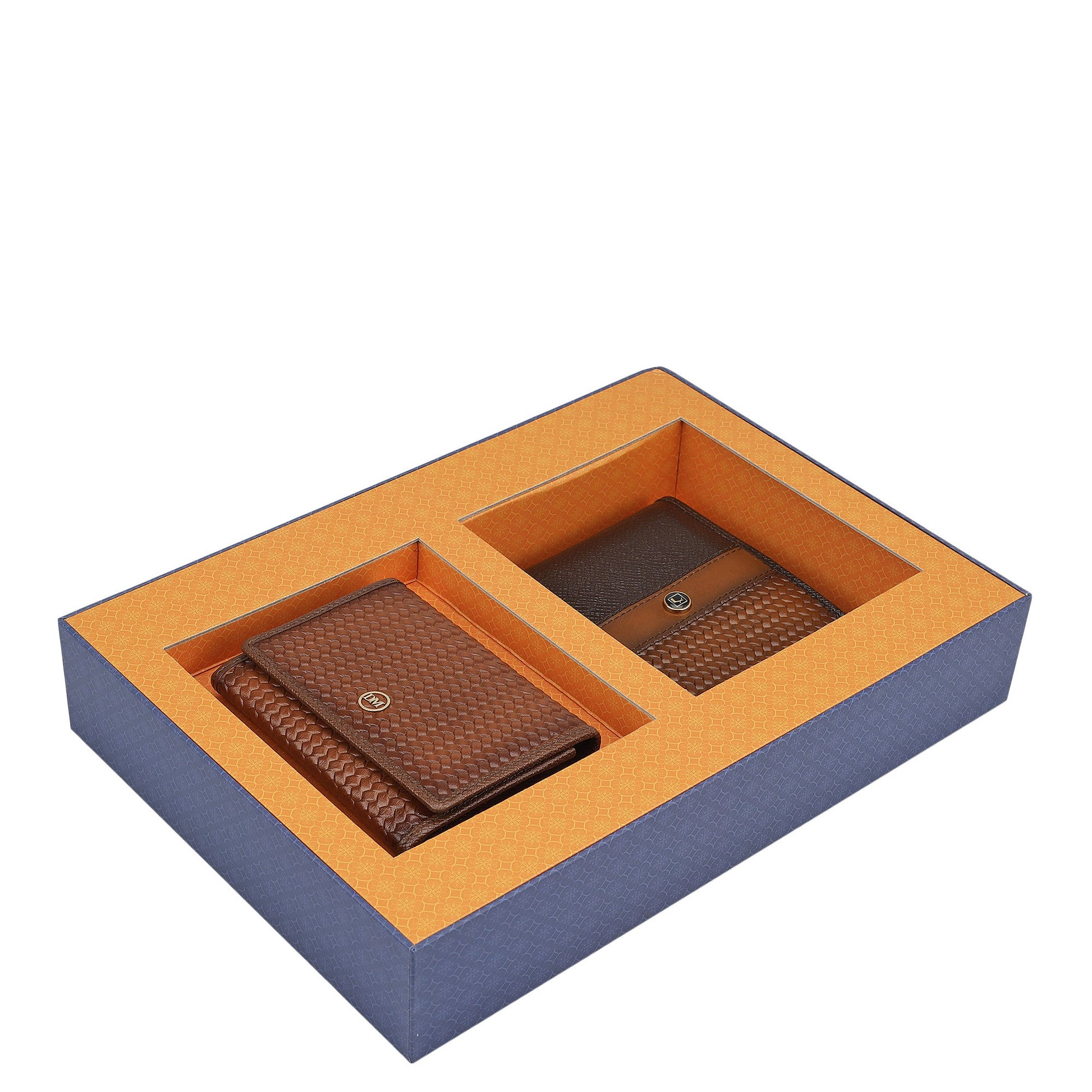Chocolate Cognac Franzy Mat-Emboss Leather Mens Wallet & Card Case Gift Set