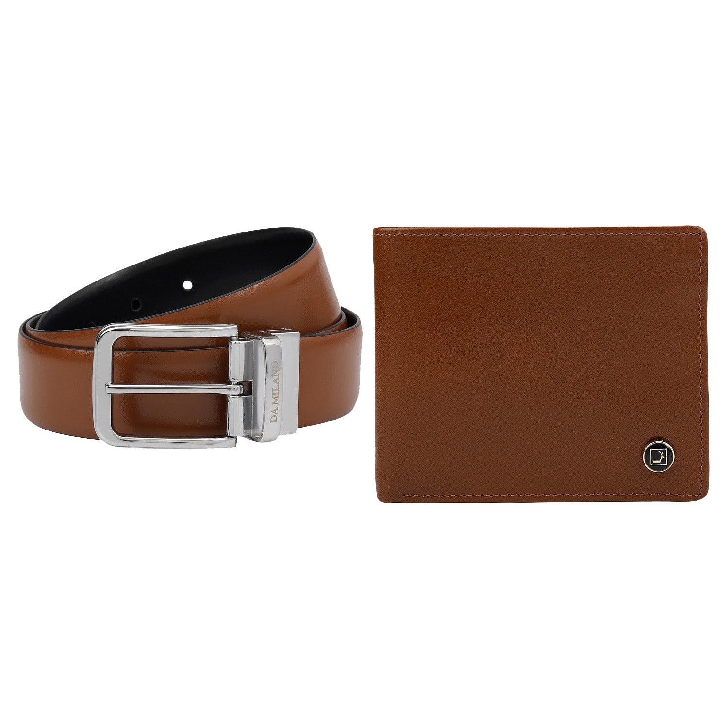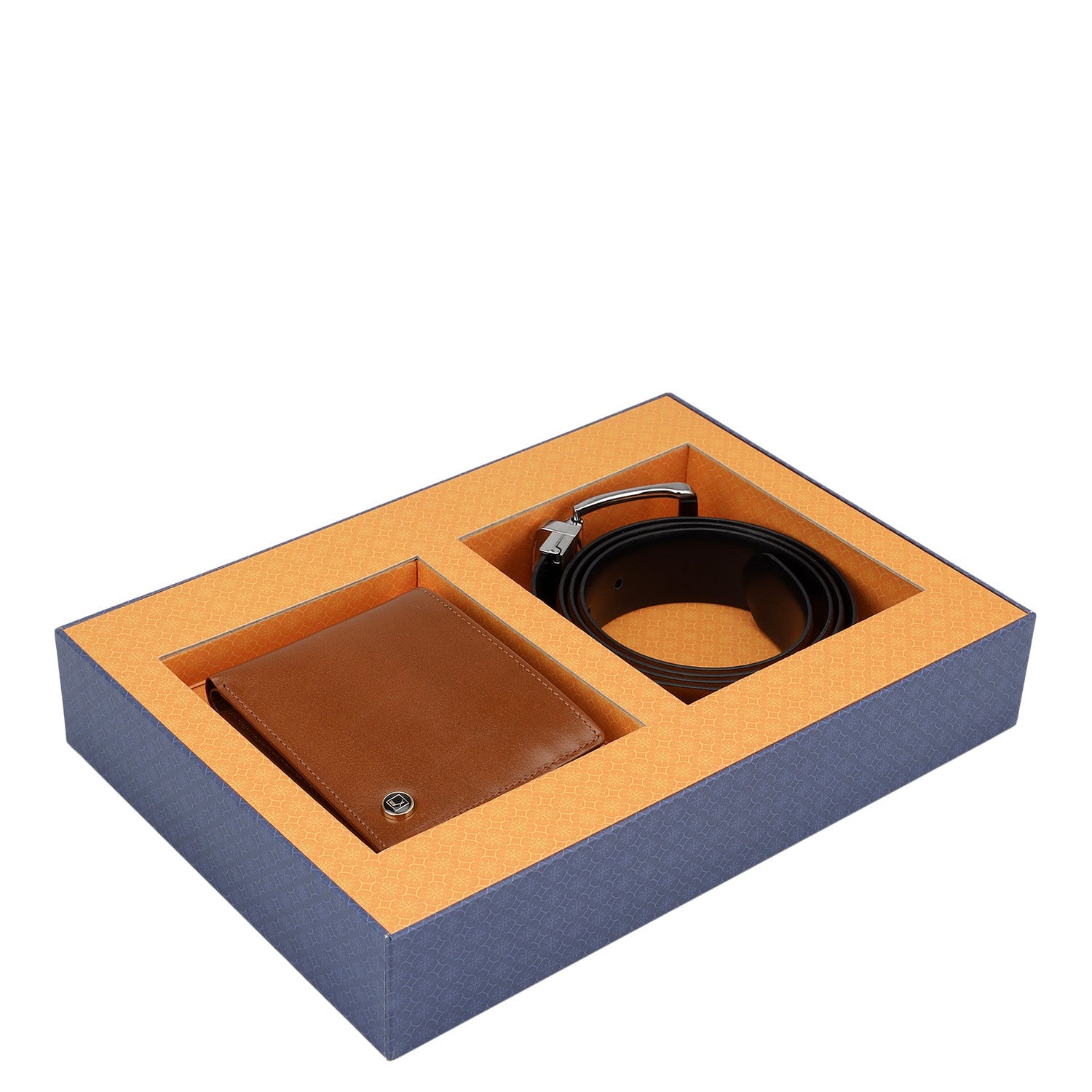 Cognac Plain Leather Mens Wallet & Belt Gift Set