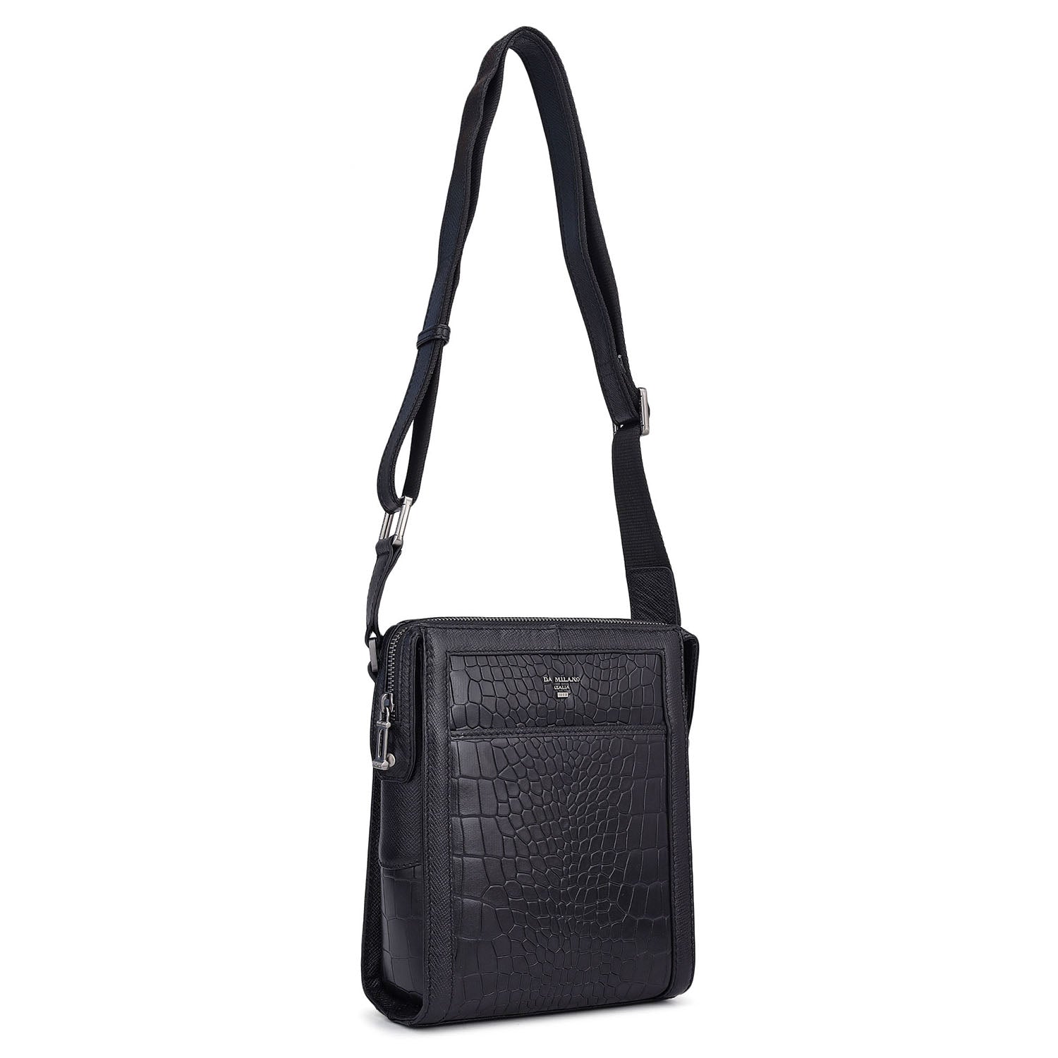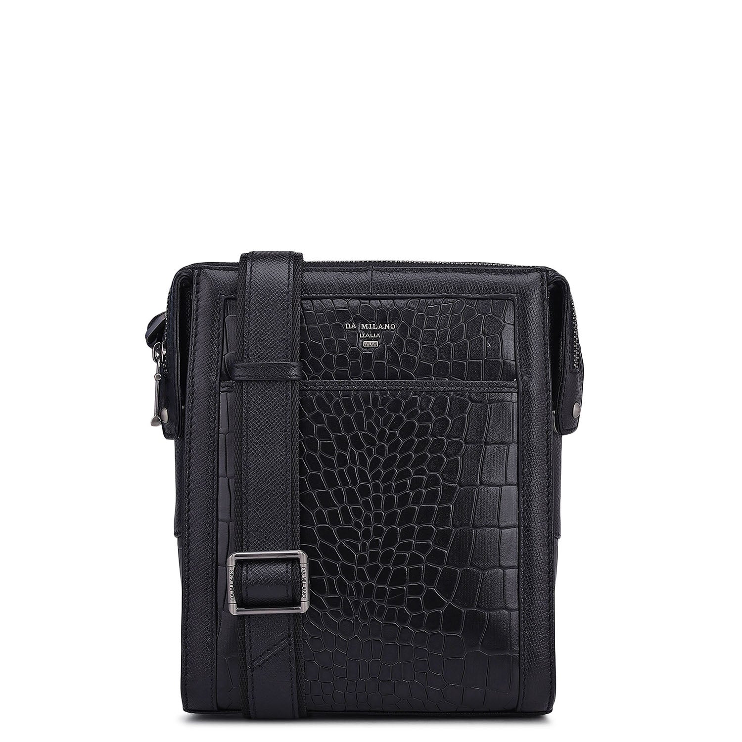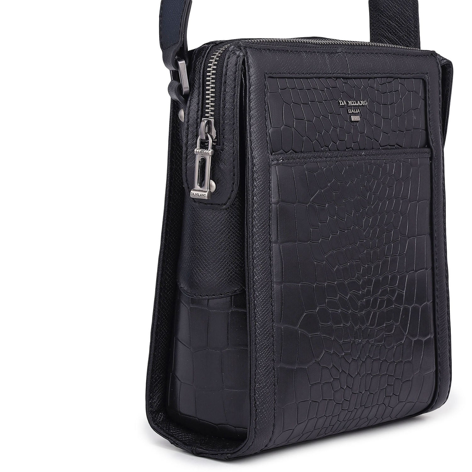 Croco Franzy Leather Men Sling - Black