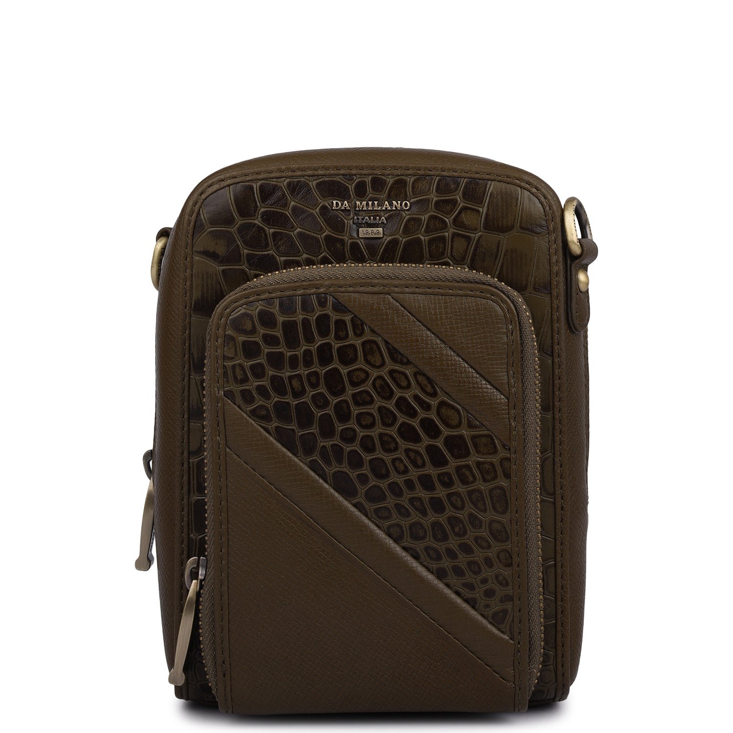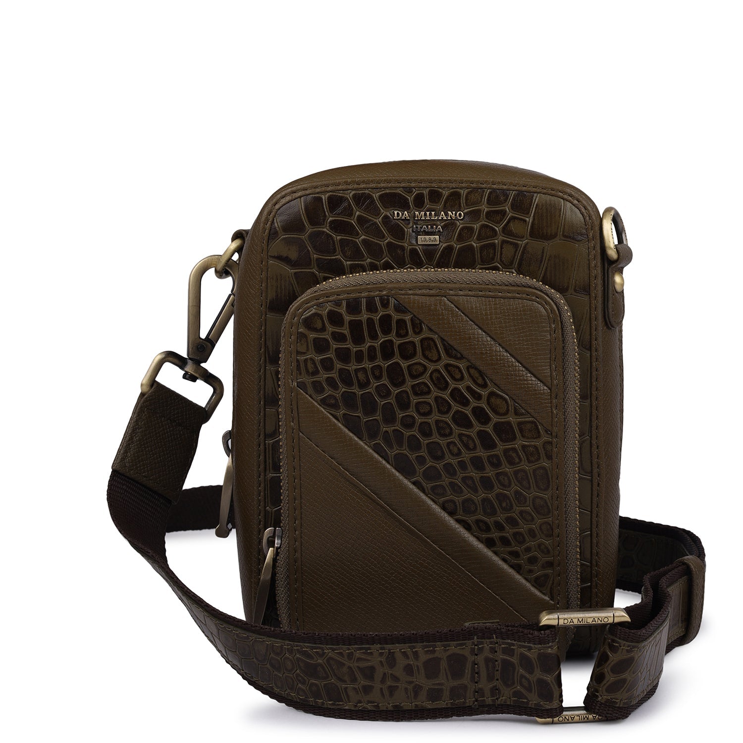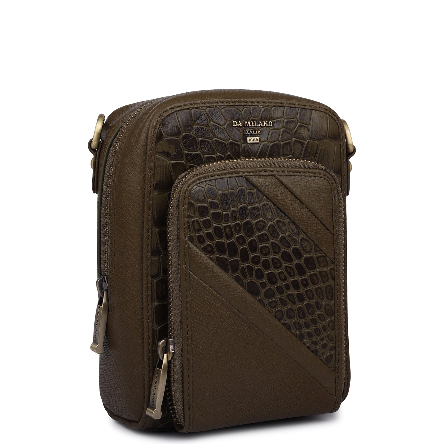 Croco Franzy Leather Men Sling - Military Green