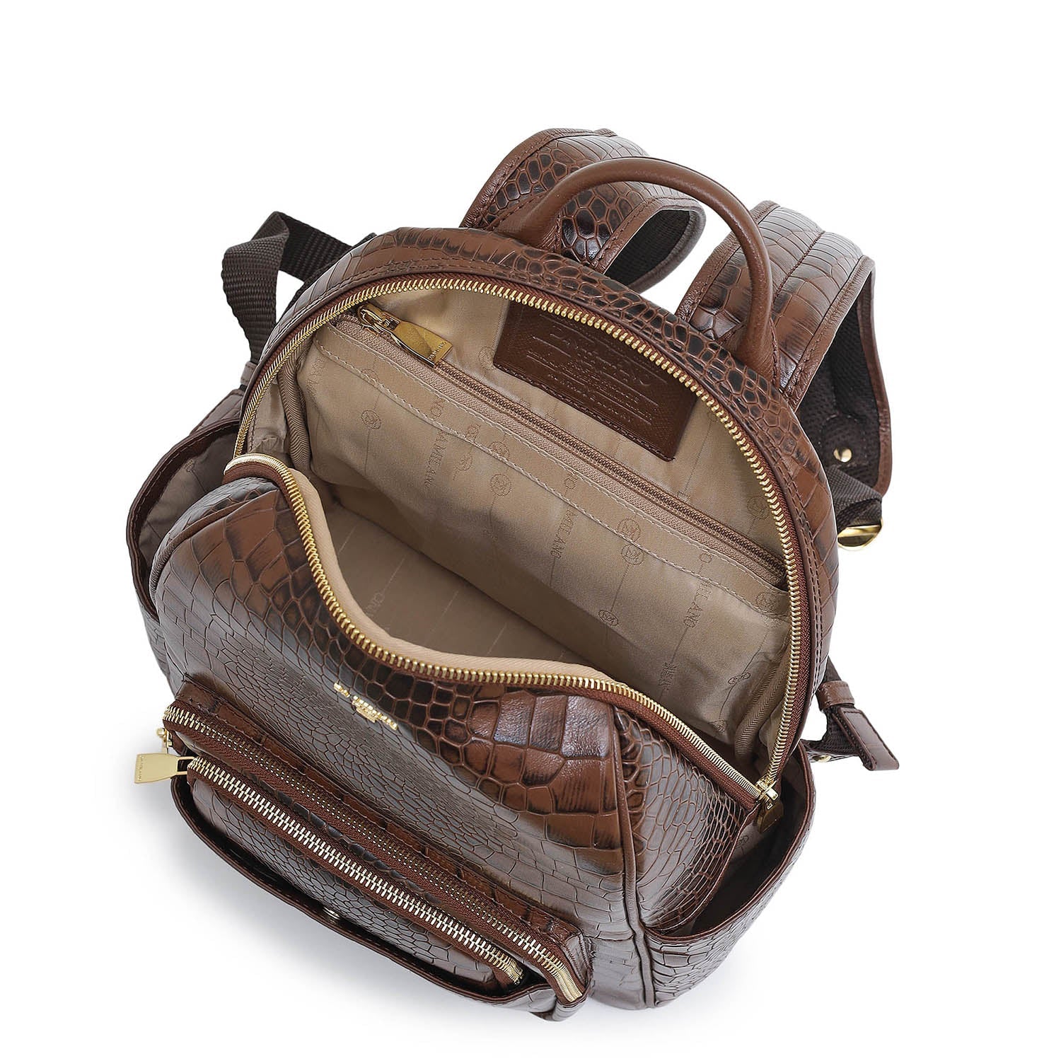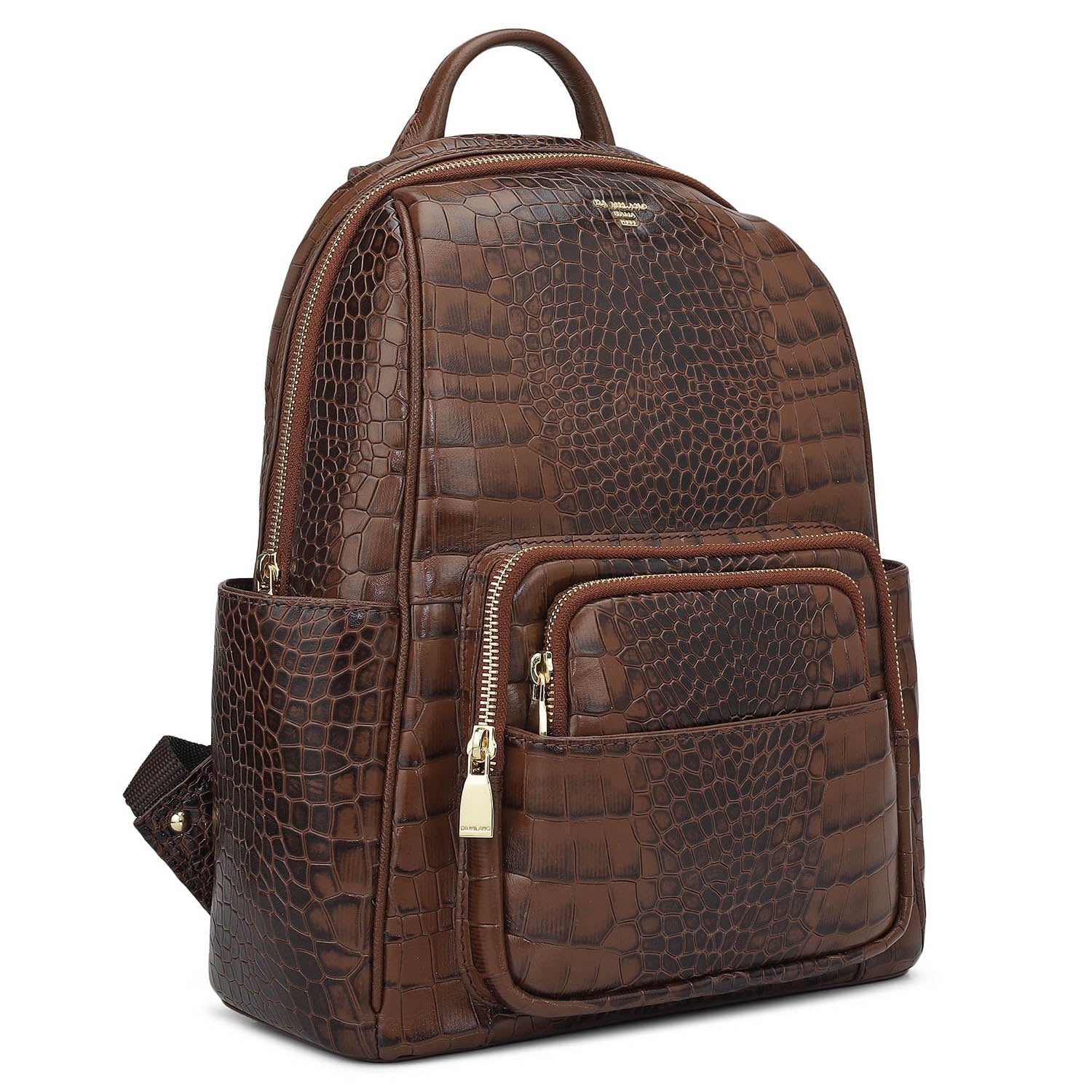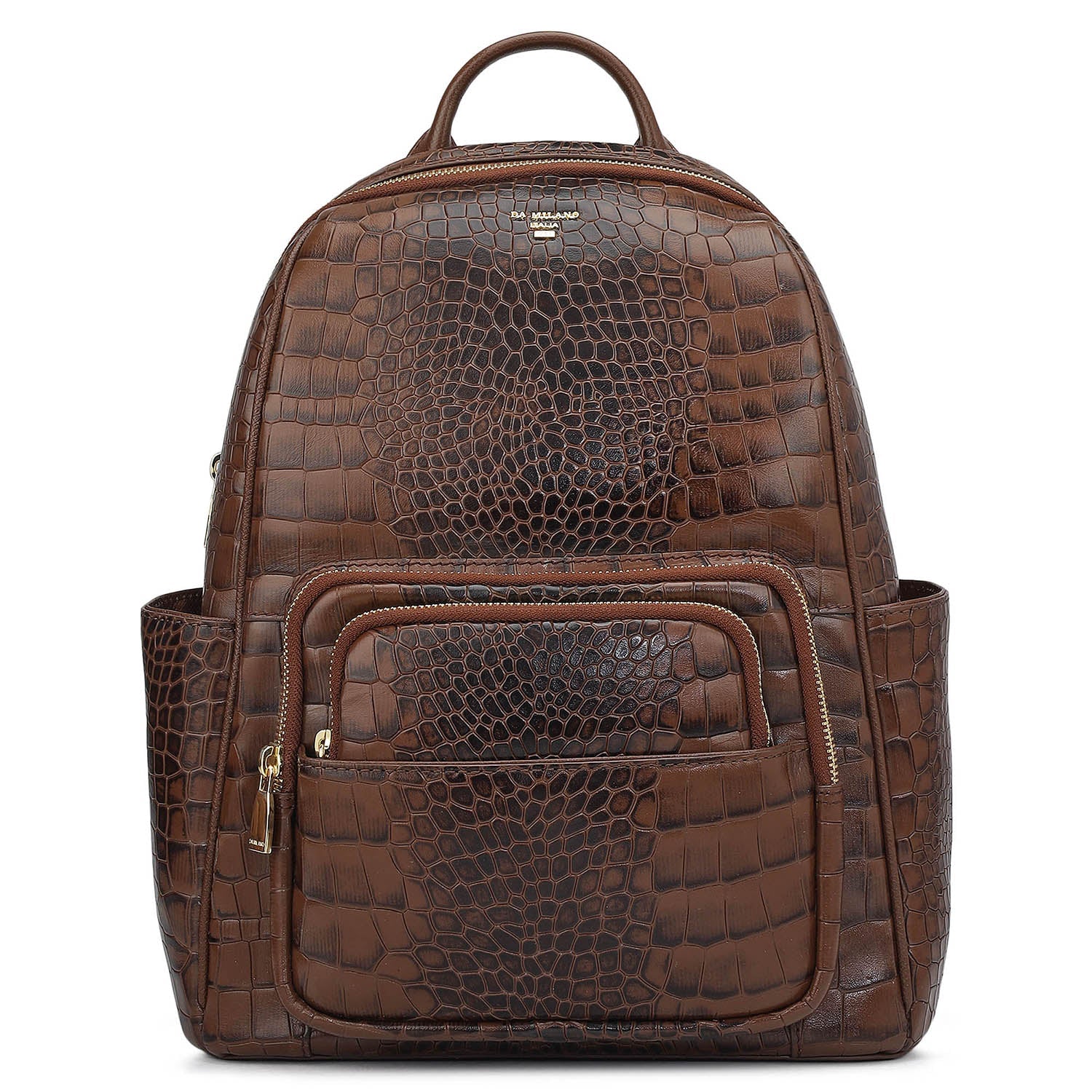 Leather backpack with a play of texture. Featuring multipurpose pockets on the exterior as well as interior to enhance utility. This functional bag is the perfect fusion of Italian craftsmanship and contemporary style.