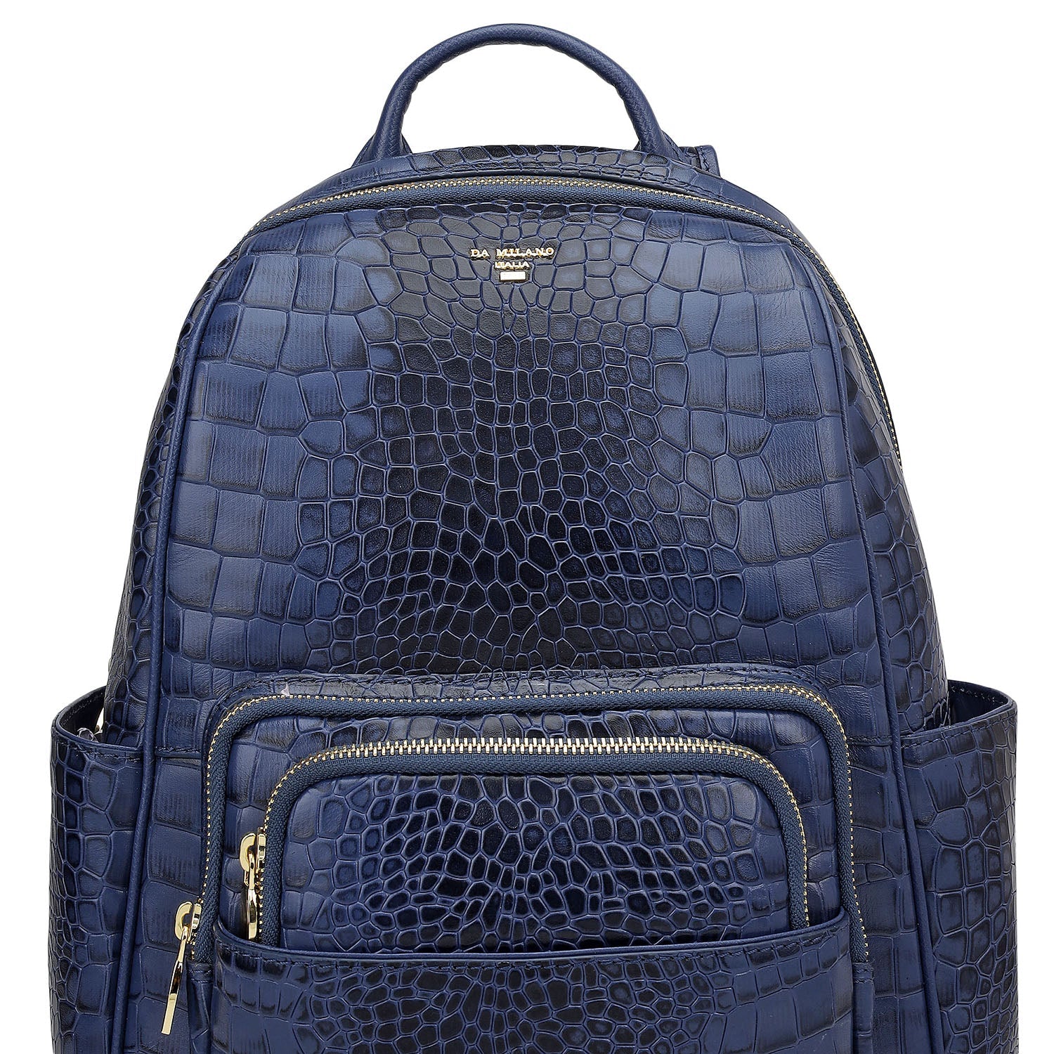Leather backpack with a play of texture. Featuring multipurpose pockets on the exterior as well as interior to enhance utility. This functional bag is the perfect fusion of Italian craftsmanship and contemporary style.