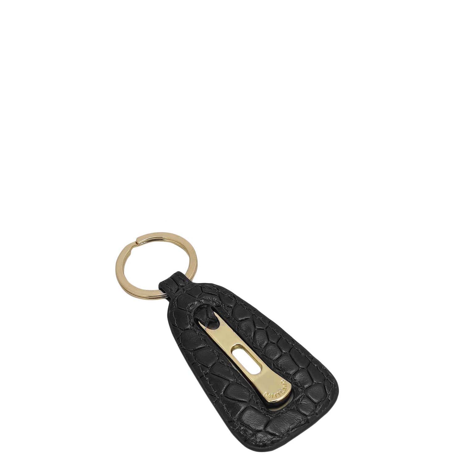 Croco Leather Key Chain - Black