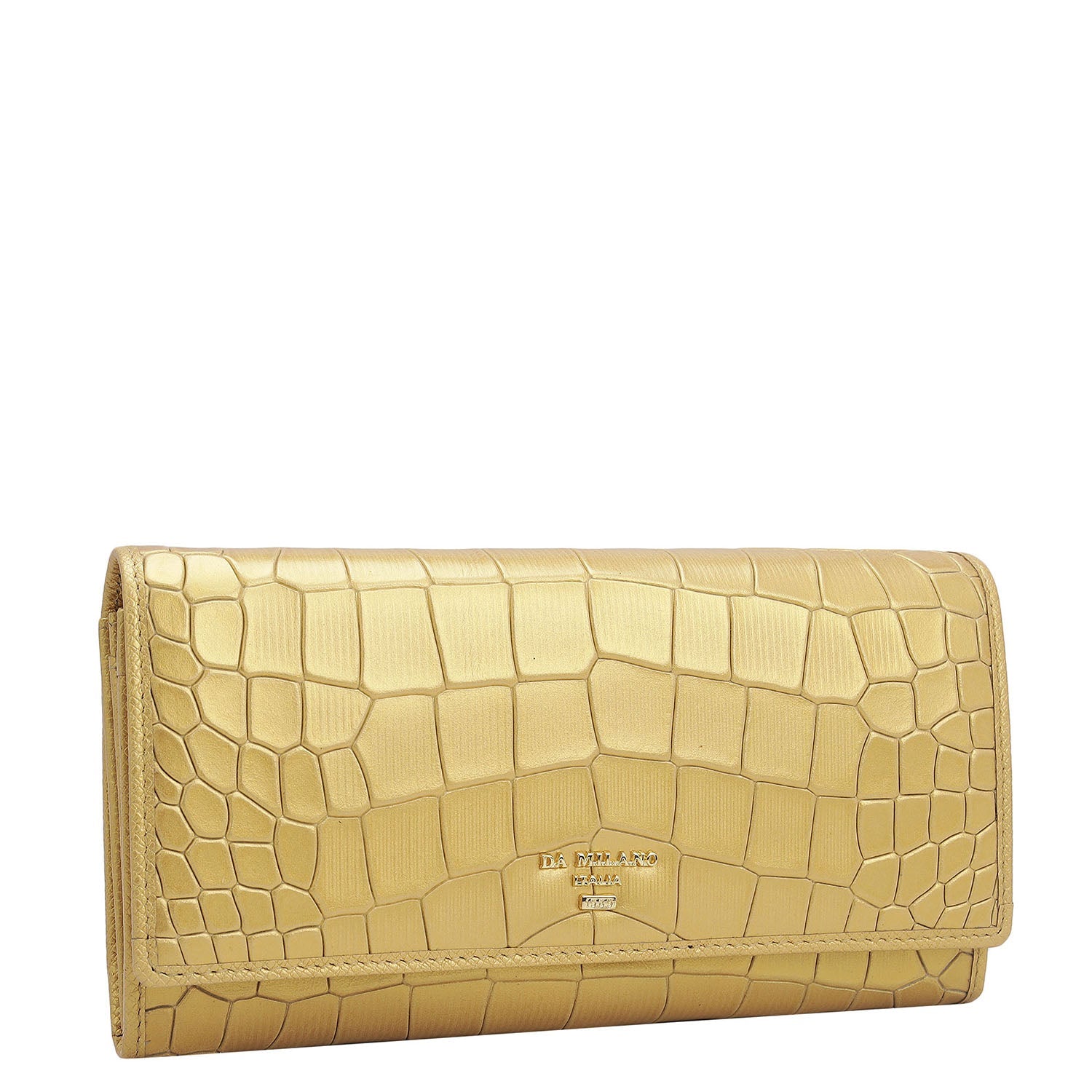 Croco Leather Ladies Wallet - Gold