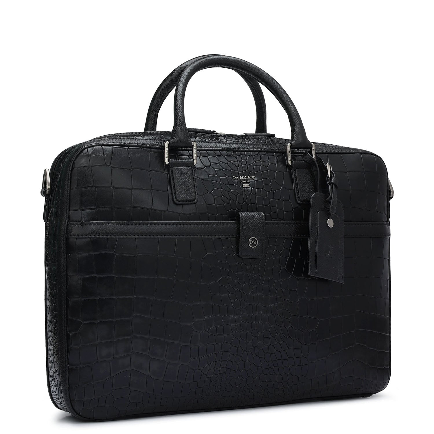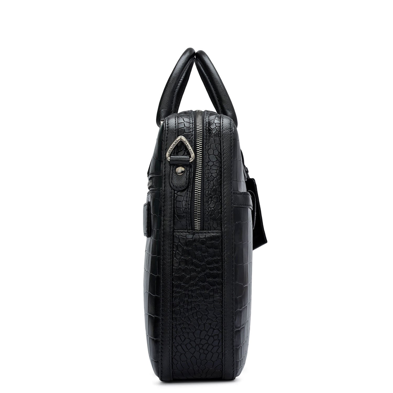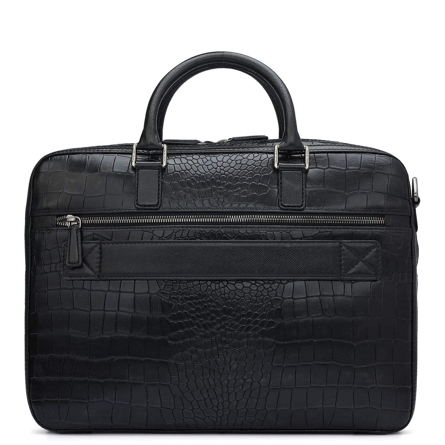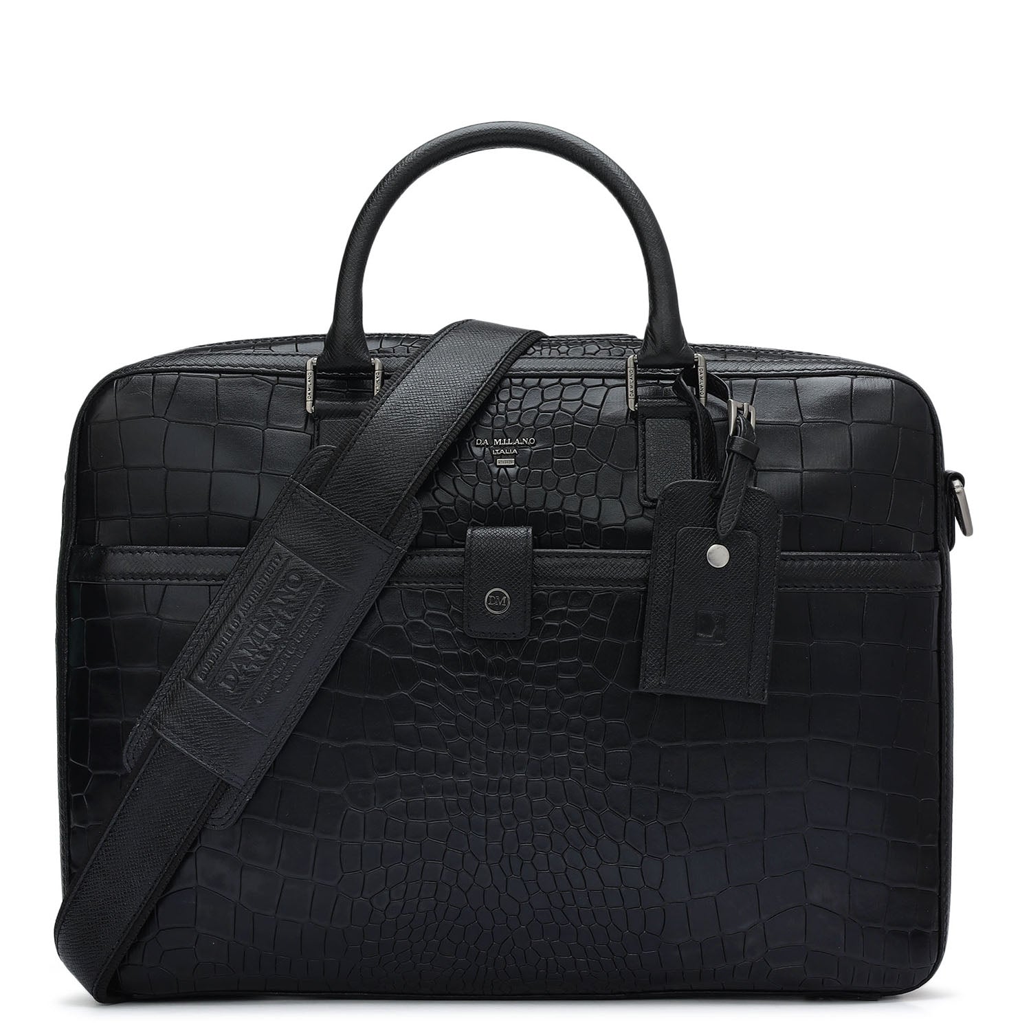 Croco Leather Laptop Bag - Black