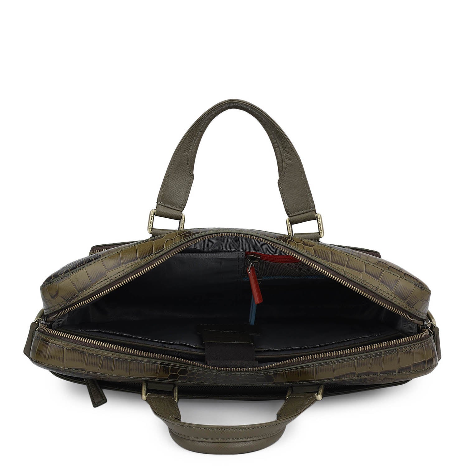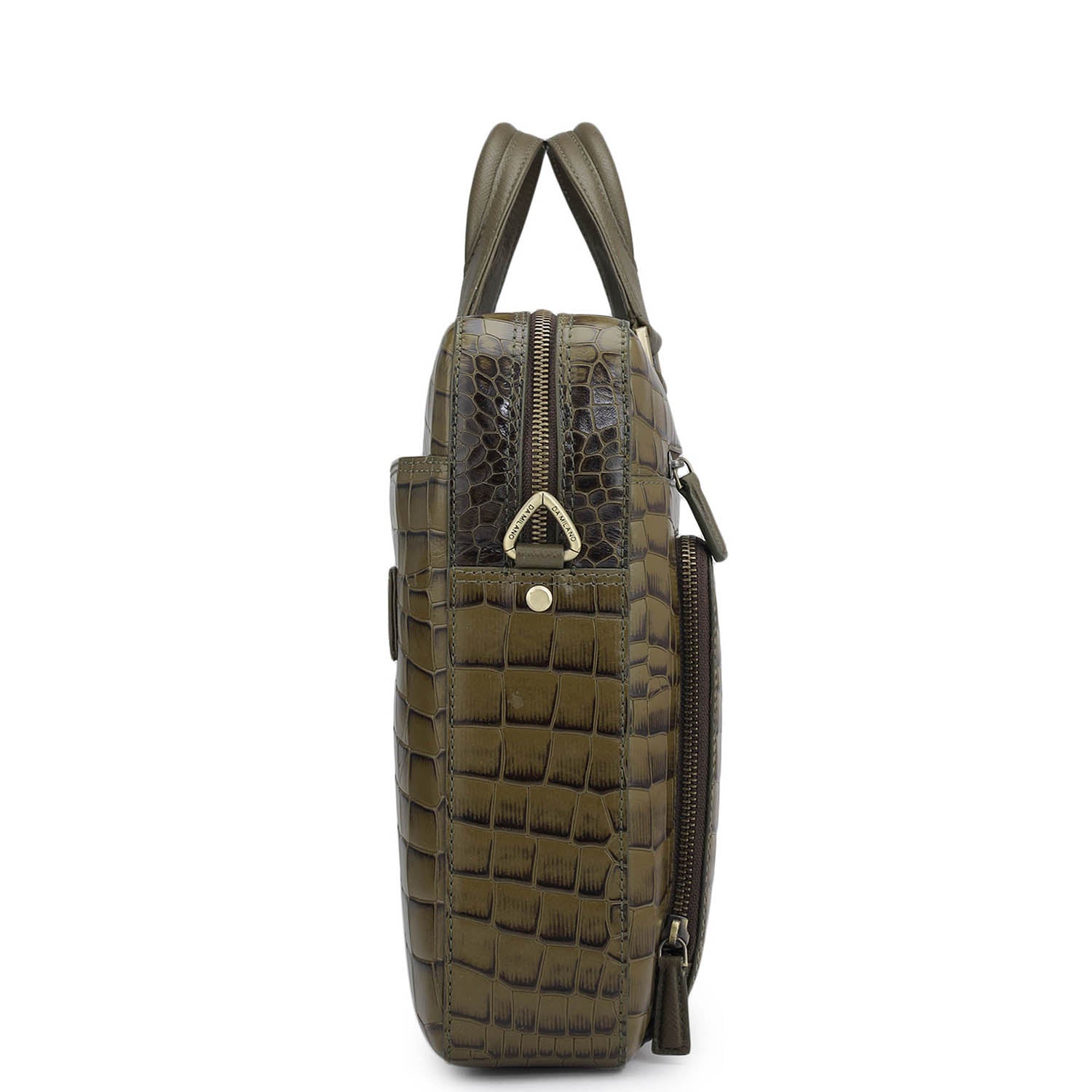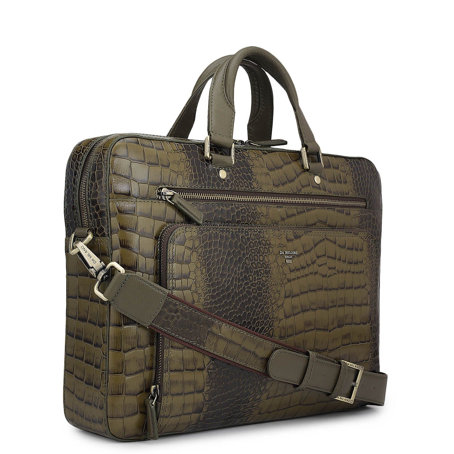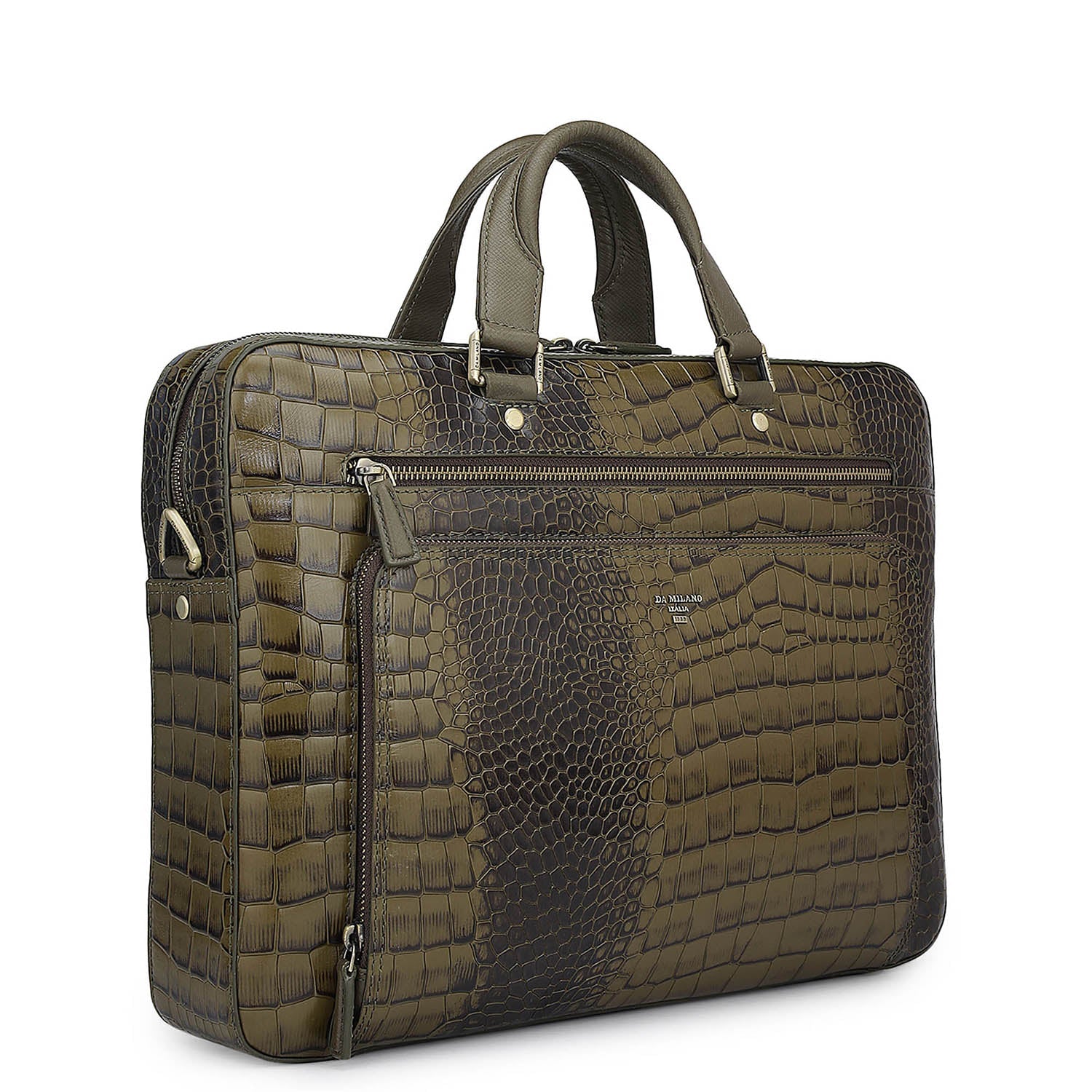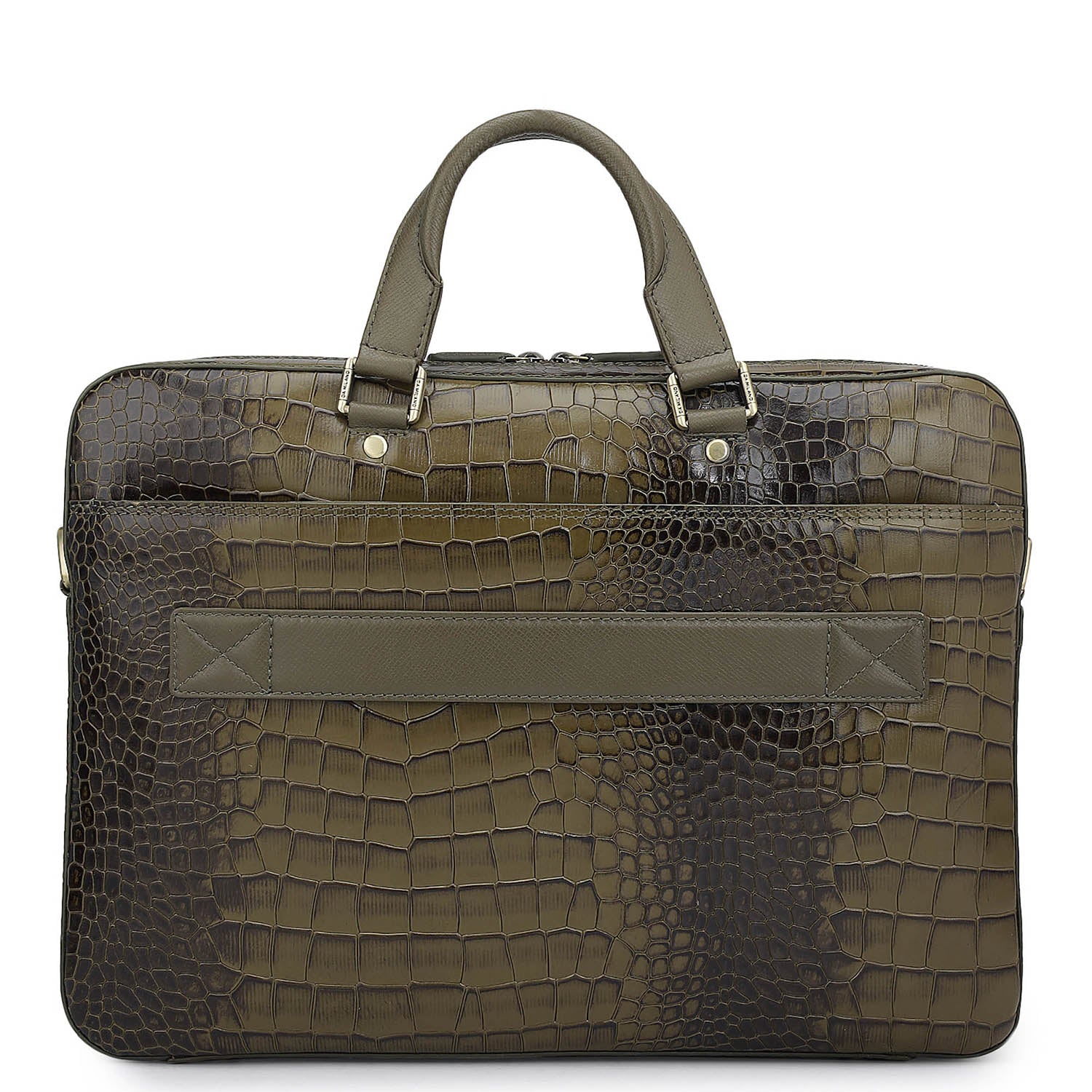 Croco Leather Laptop Bag - Military Green