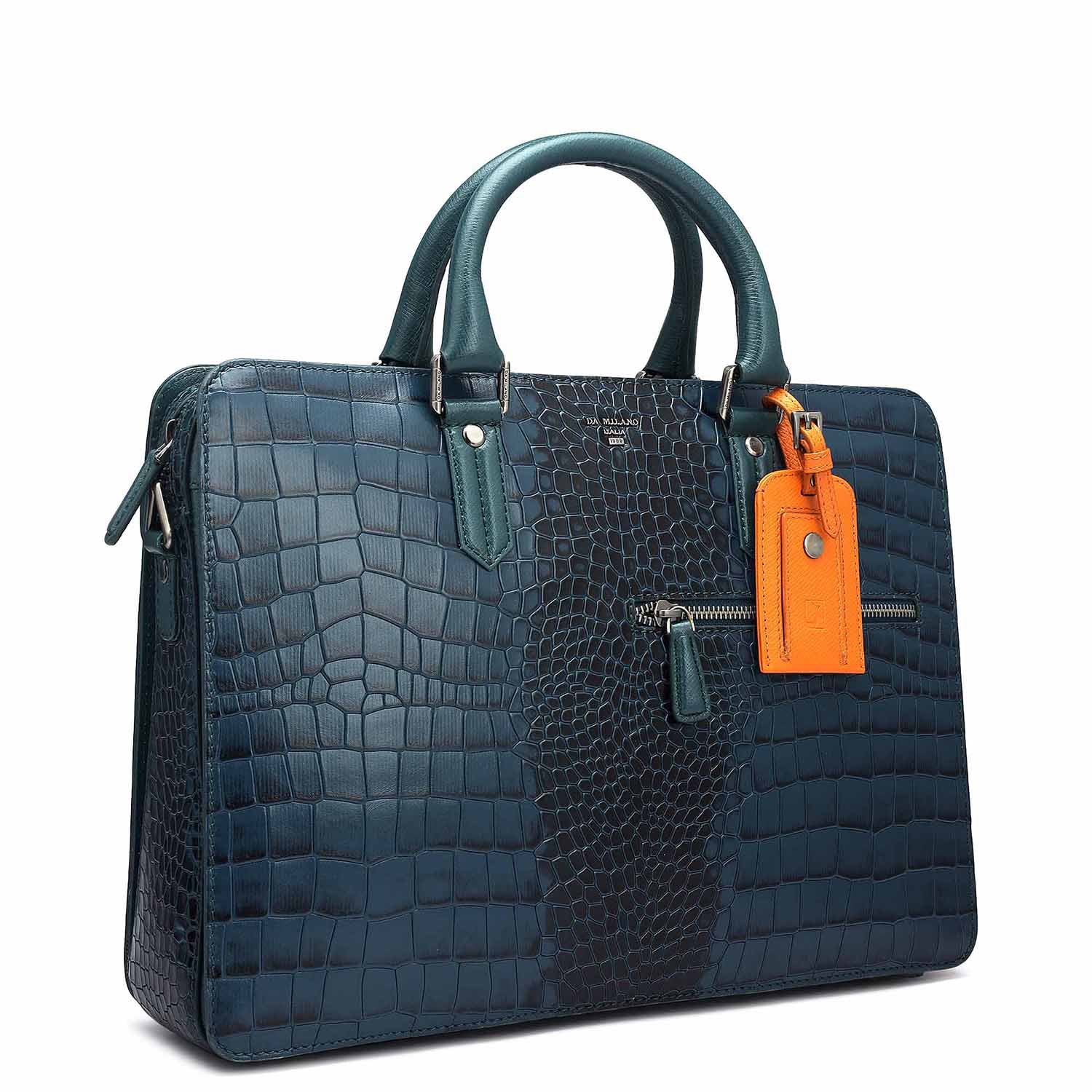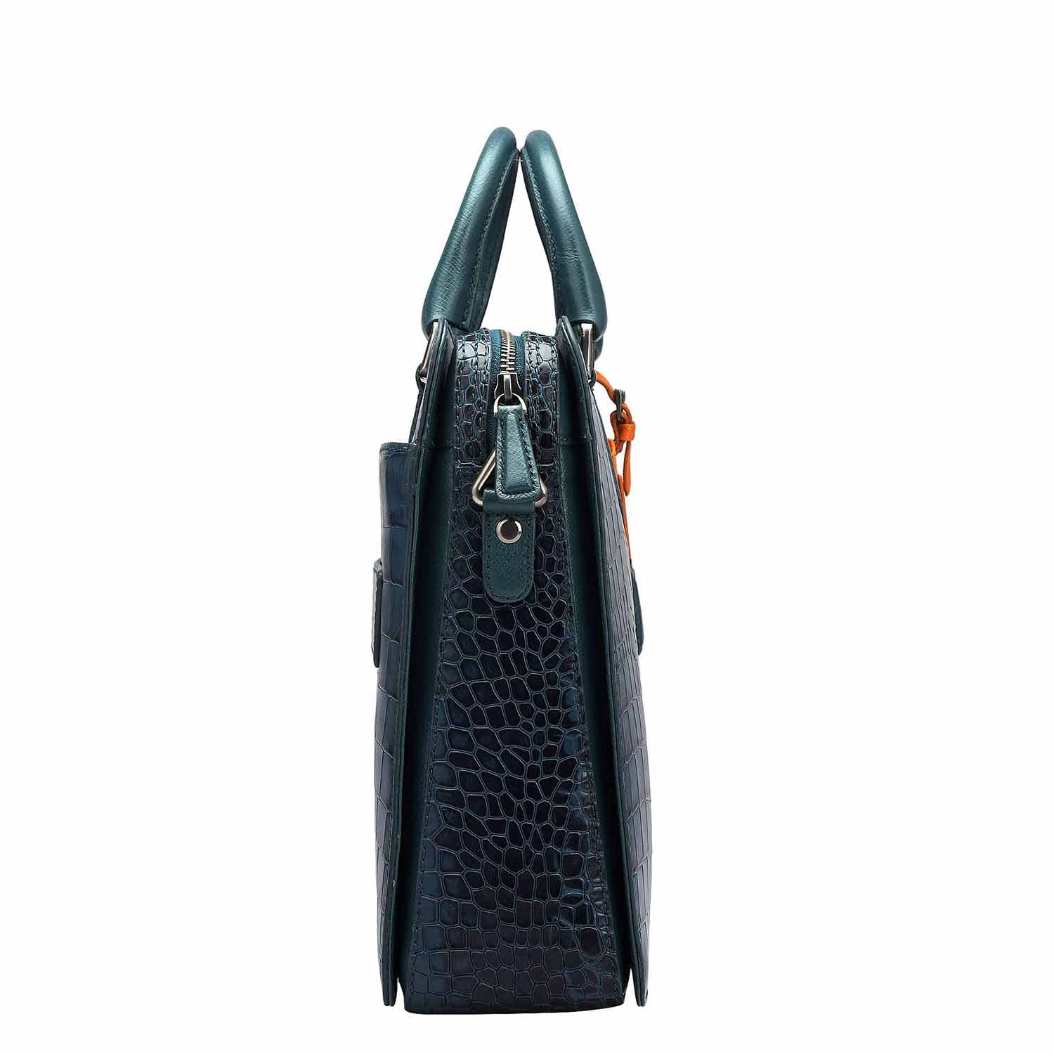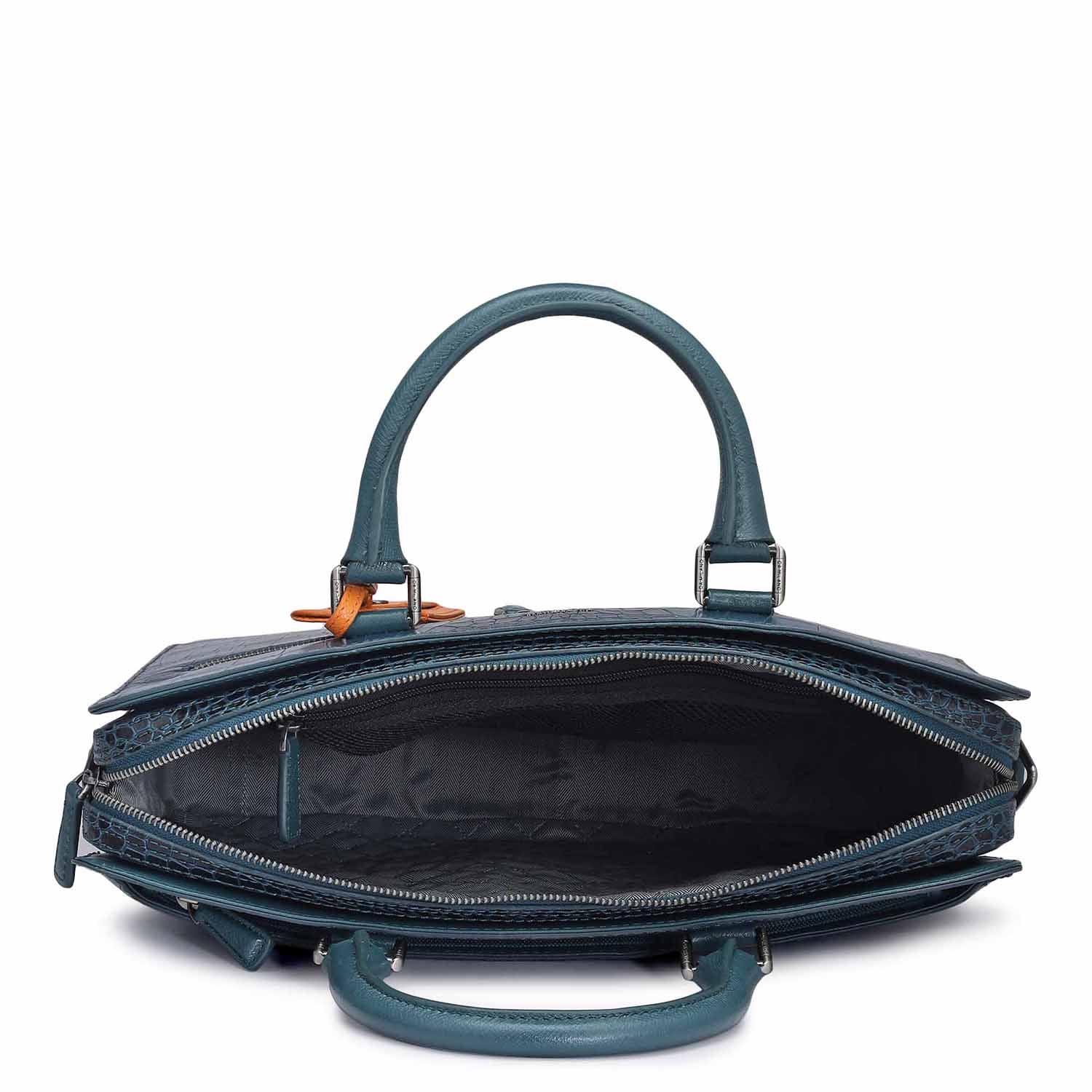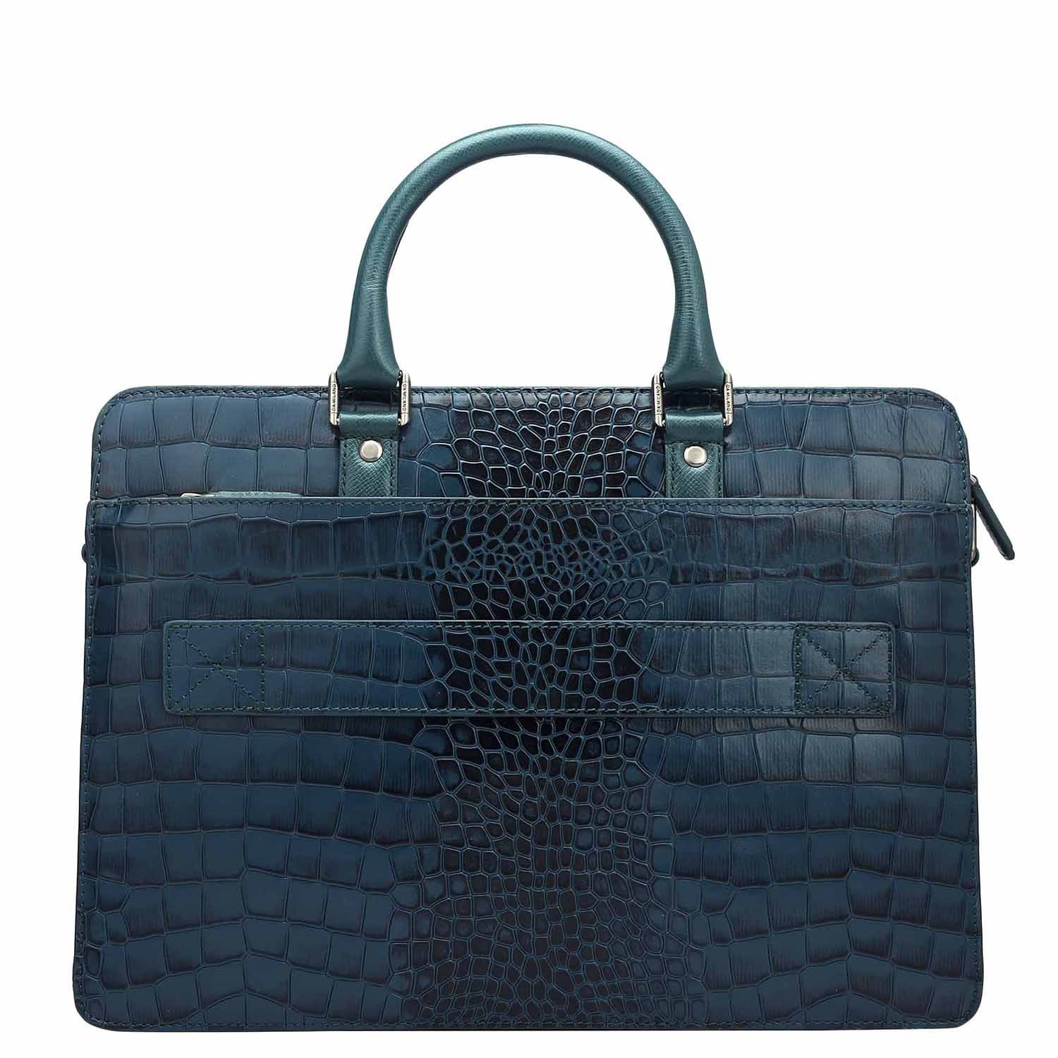 Croco Embossed Leather Laptop Bag – Ocean Blue