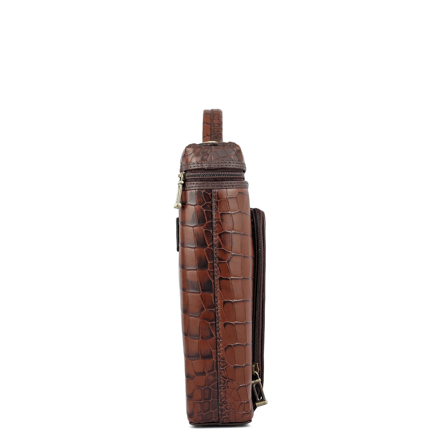 Keep in dust bag when not in use. Clean with soft cloth & leather cream. Avoid exposure to excess heat & water to maintain authentic shine of natural leather.