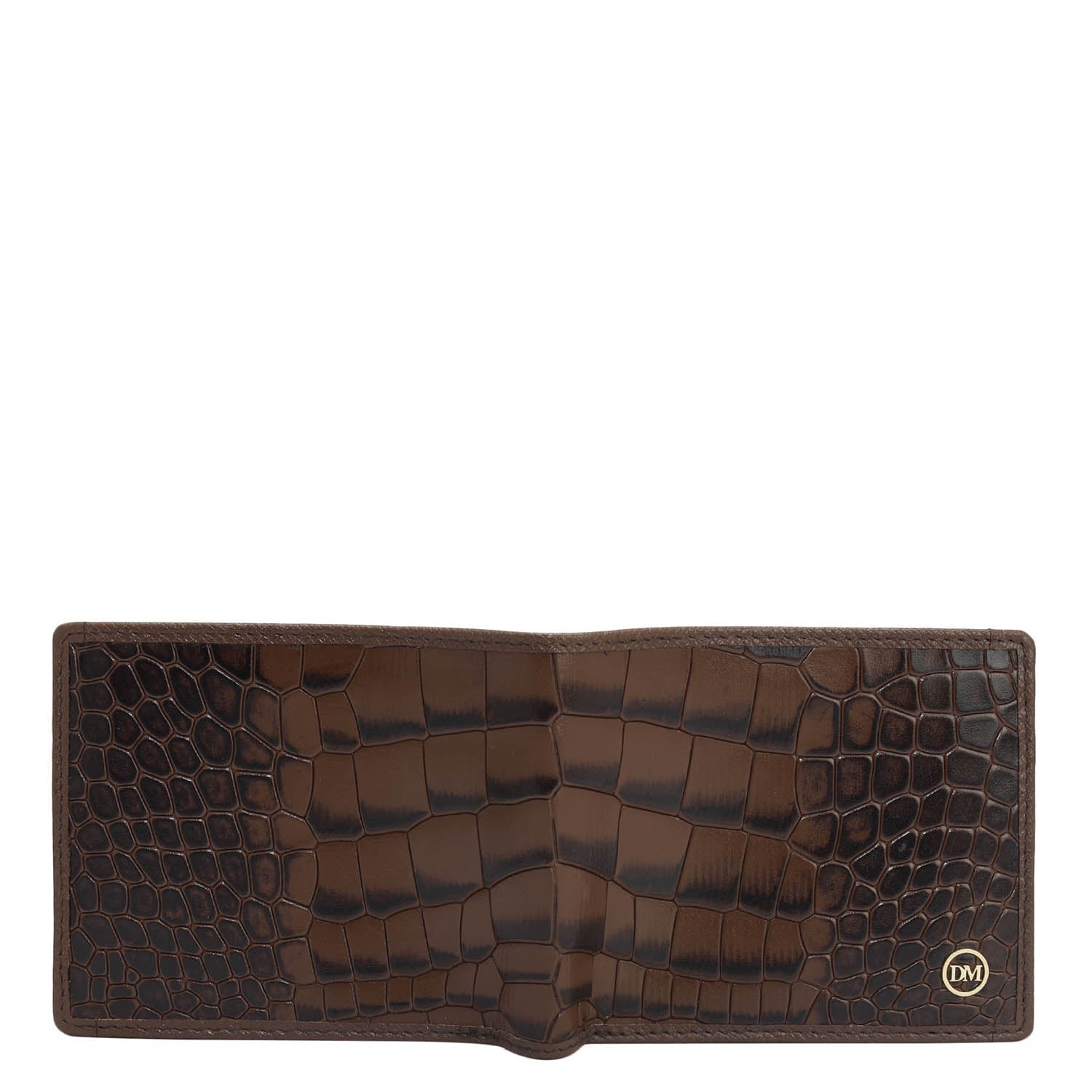 Crafted from textured leather, Da Milano men's bifold wallet offers a compact yet stylish design. Featuring easy-to-organize compartments, card slots, and pockets, it combines practicality with elegance. Subtle branding on the front enhances its refined appearance.