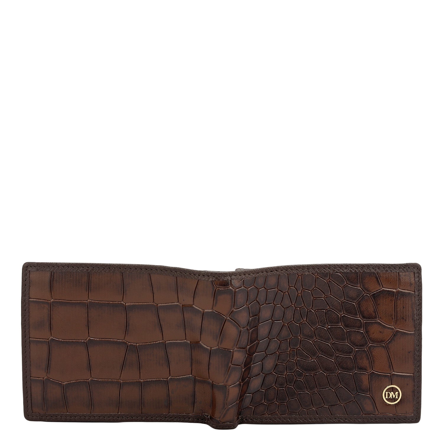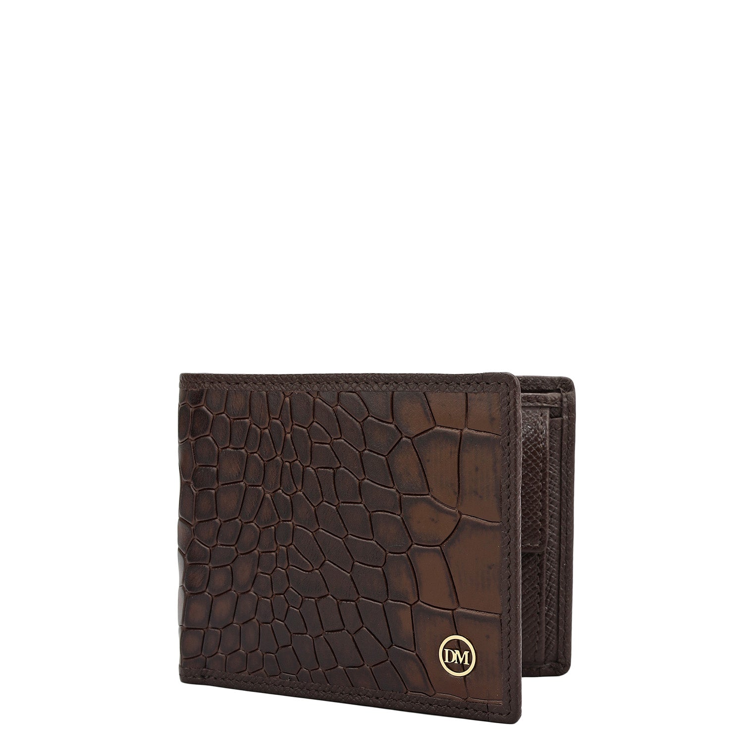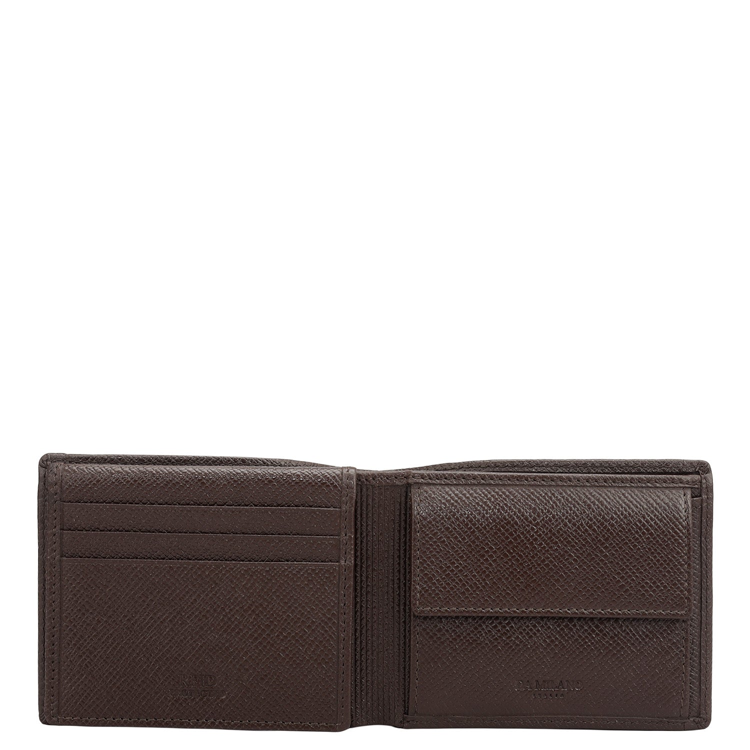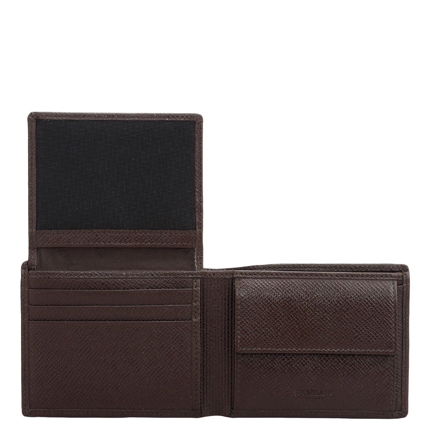 Crafted from textured leather, Da Milano men's bifold wallet offers a compact yet stylish design. Featuring easy-to-organize compartments, card slots, and pockets, it combines practicality with elegance. Subtle branding on the front enhances its refined appearance.