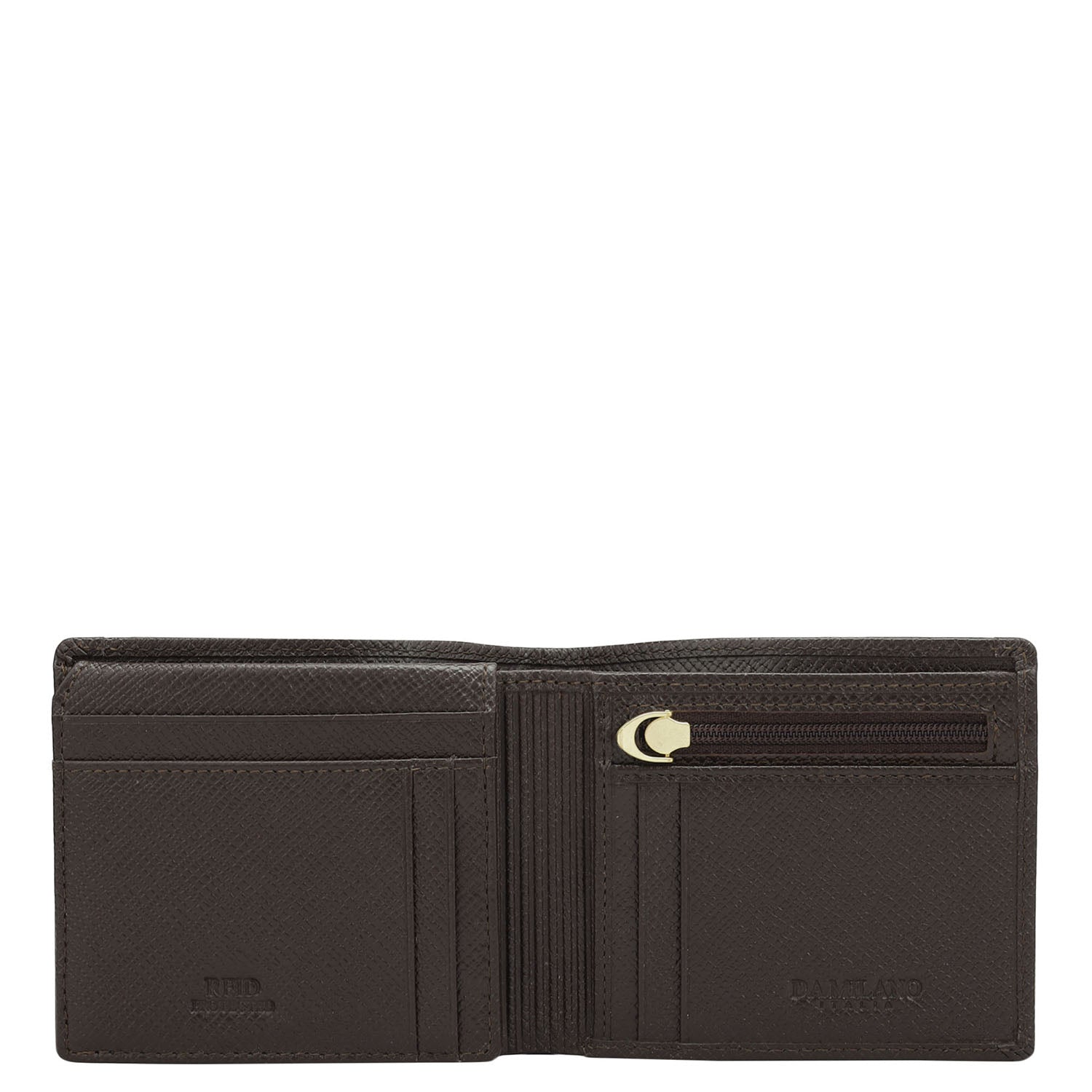 Crafted from textured leather, Da Milano men's bifold wallet offers a compact yet stylish design. Featuring easy-to-organize compartments, card slots, and pockets, it combines practicality with elegance. Subtle branding on the front enhances its refined appearance.
