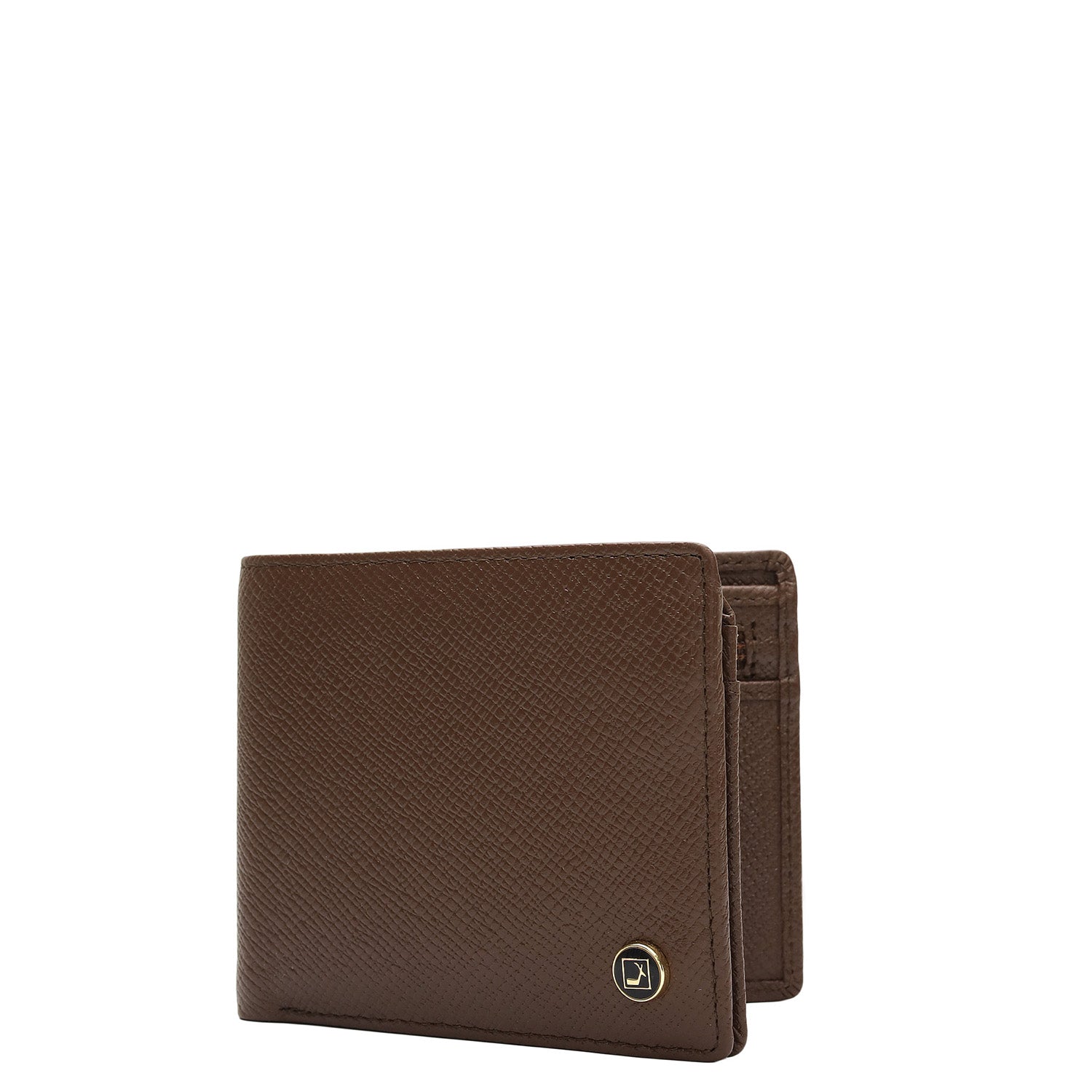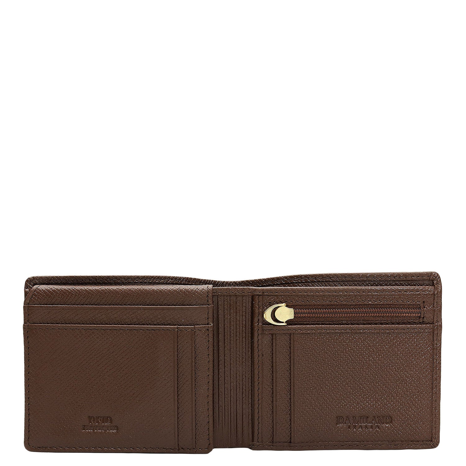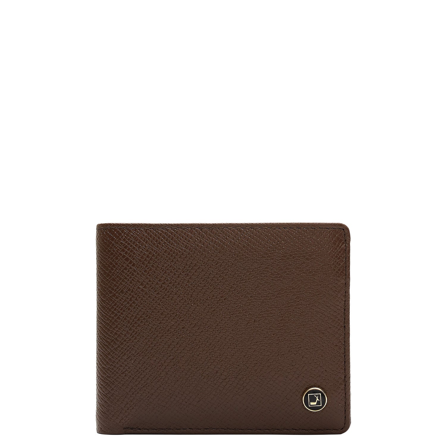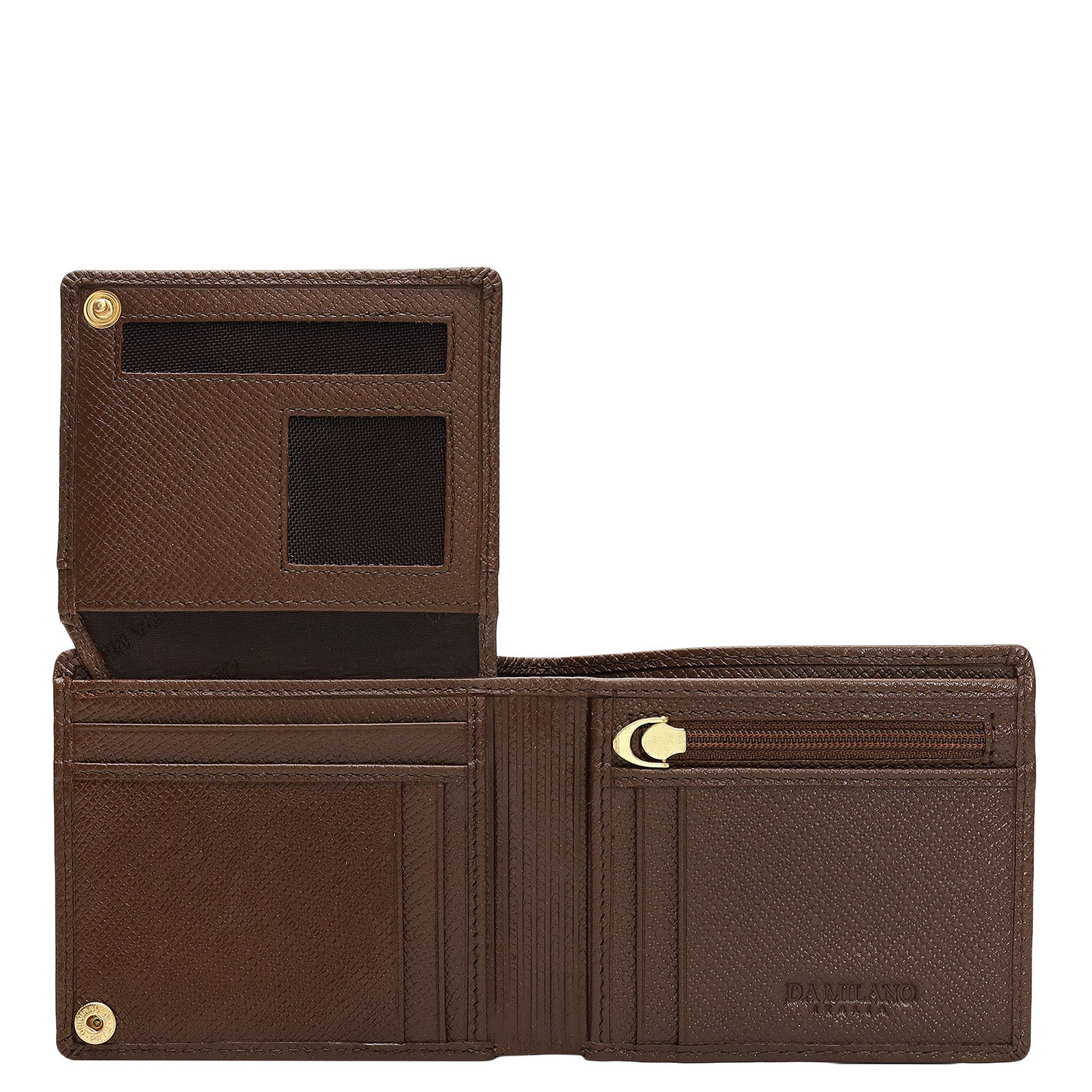 Crafted from textured leather, Da Milano men's bifold wallet offers a compact yet stylish design. Featuring easy-to-organize compartments, card slots, and pockets, it combines practicality with elegance. Subtle branding on the front enhances its refined appearance.