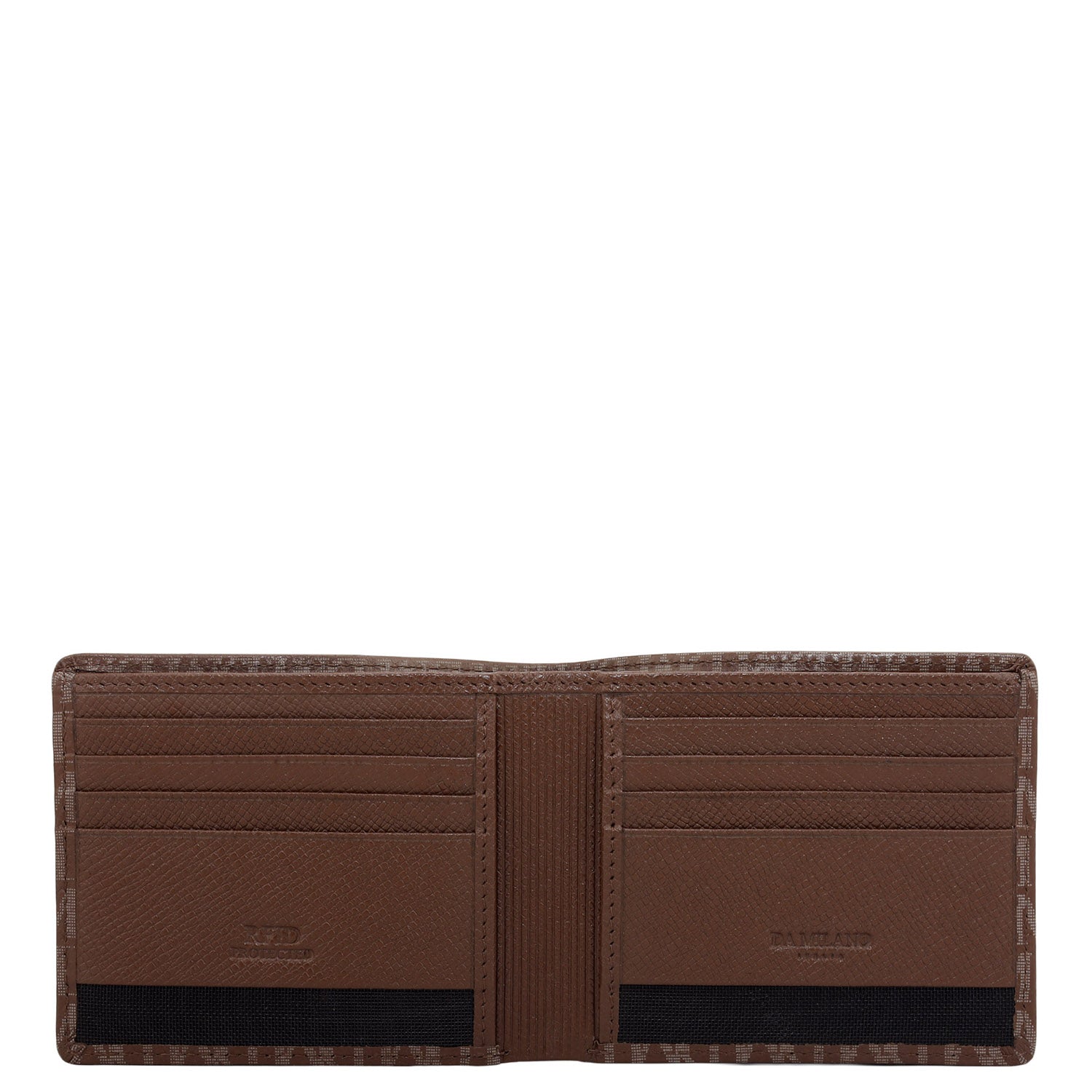 Crafted from textured leather, Da Milano men's bifold wallet offers a compact yet stylish design. Featuring easy-to-organize compartments, card slots, and pockets, it combines practicality with elegance. Subtle branding on the front enhances its refined appearance.