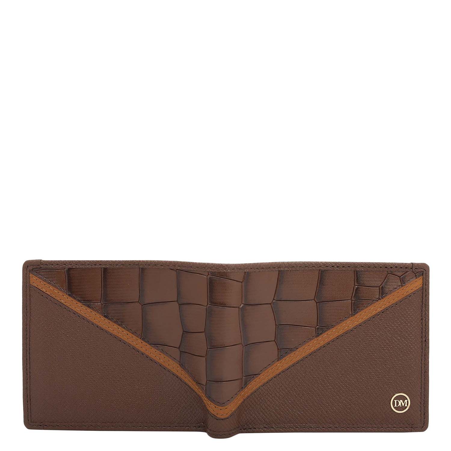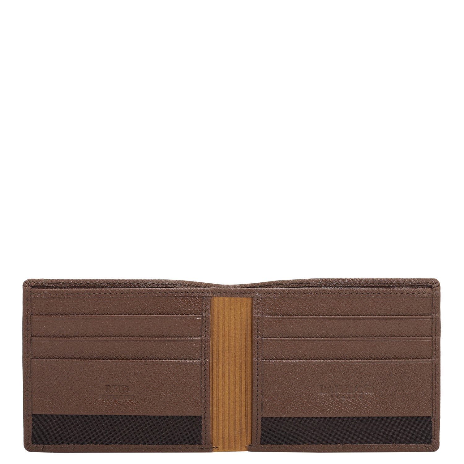 Crafted from textured leather, Da Milano men's bifold wallet offers a compact yet stylish design. Featuring easy-to-organize compartments, card slots, and pockets, it combines practicality with elegance. Subtle branding on the front enhances its refined appearance.