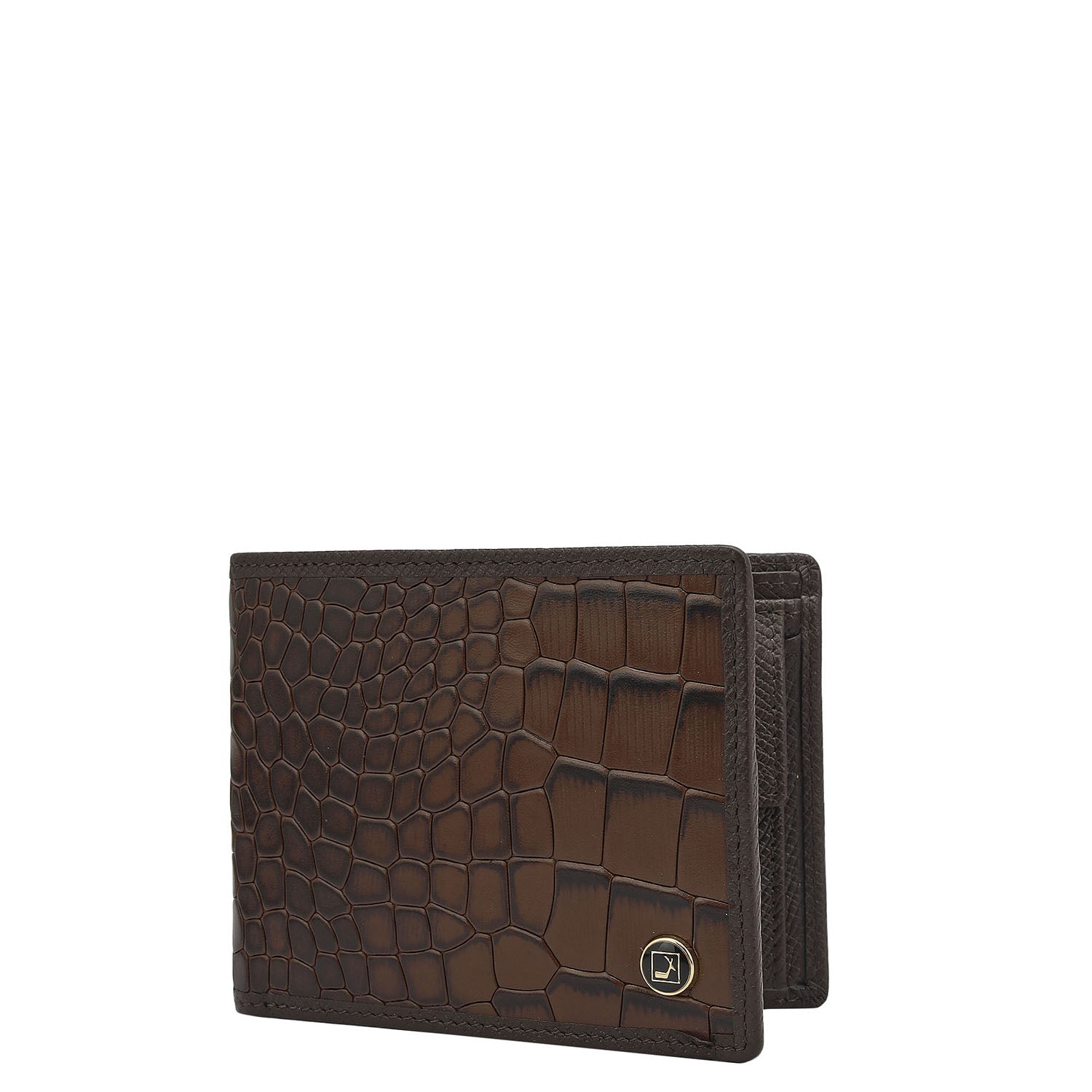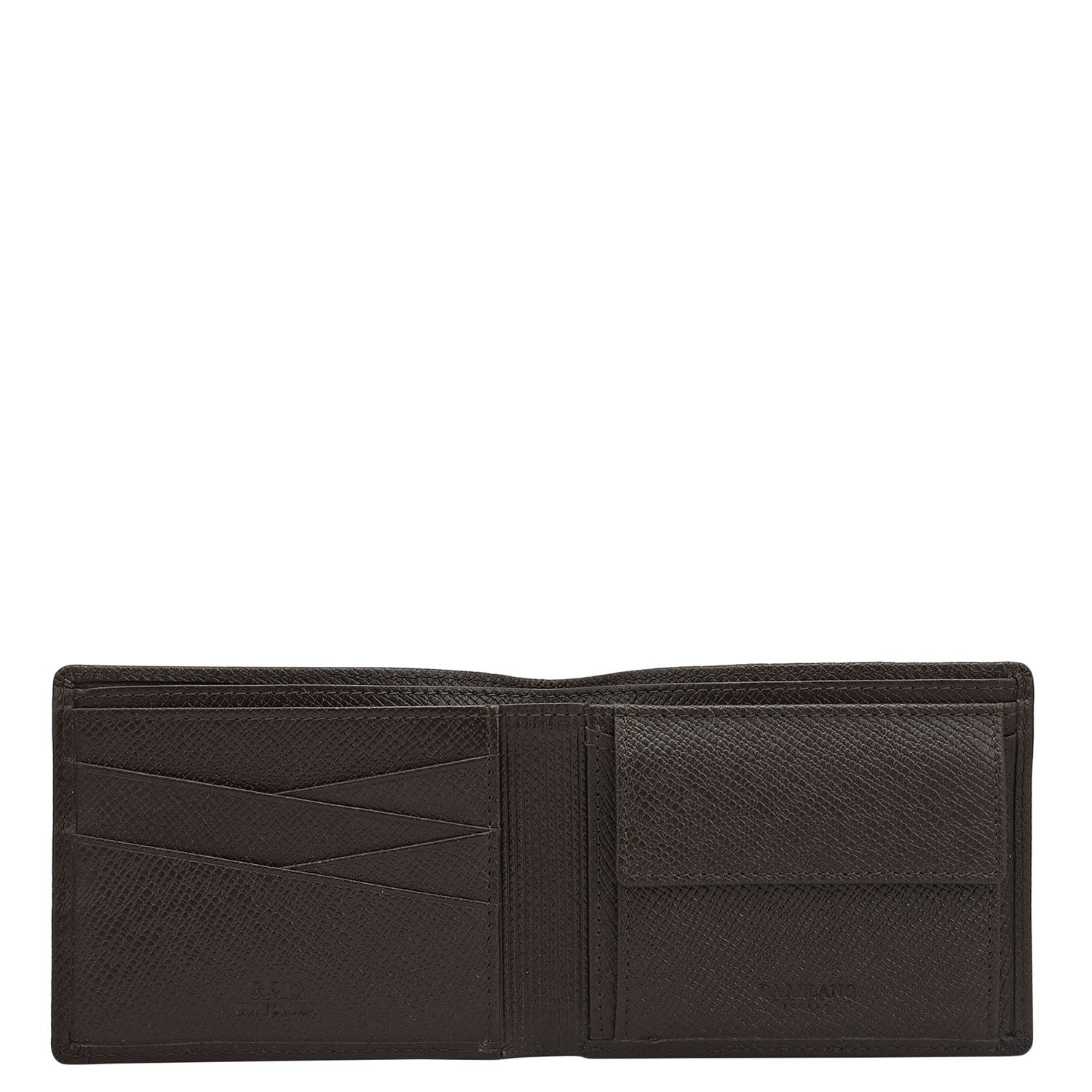 Crafted from textured leather, Da Milano men's bifold wallet offers a compact yet stylish design. Featuring easy-to-organize compartments, card slots, and pockets, it combines practicality with elegance. Subtle branding on the front enhances its refined appearance.