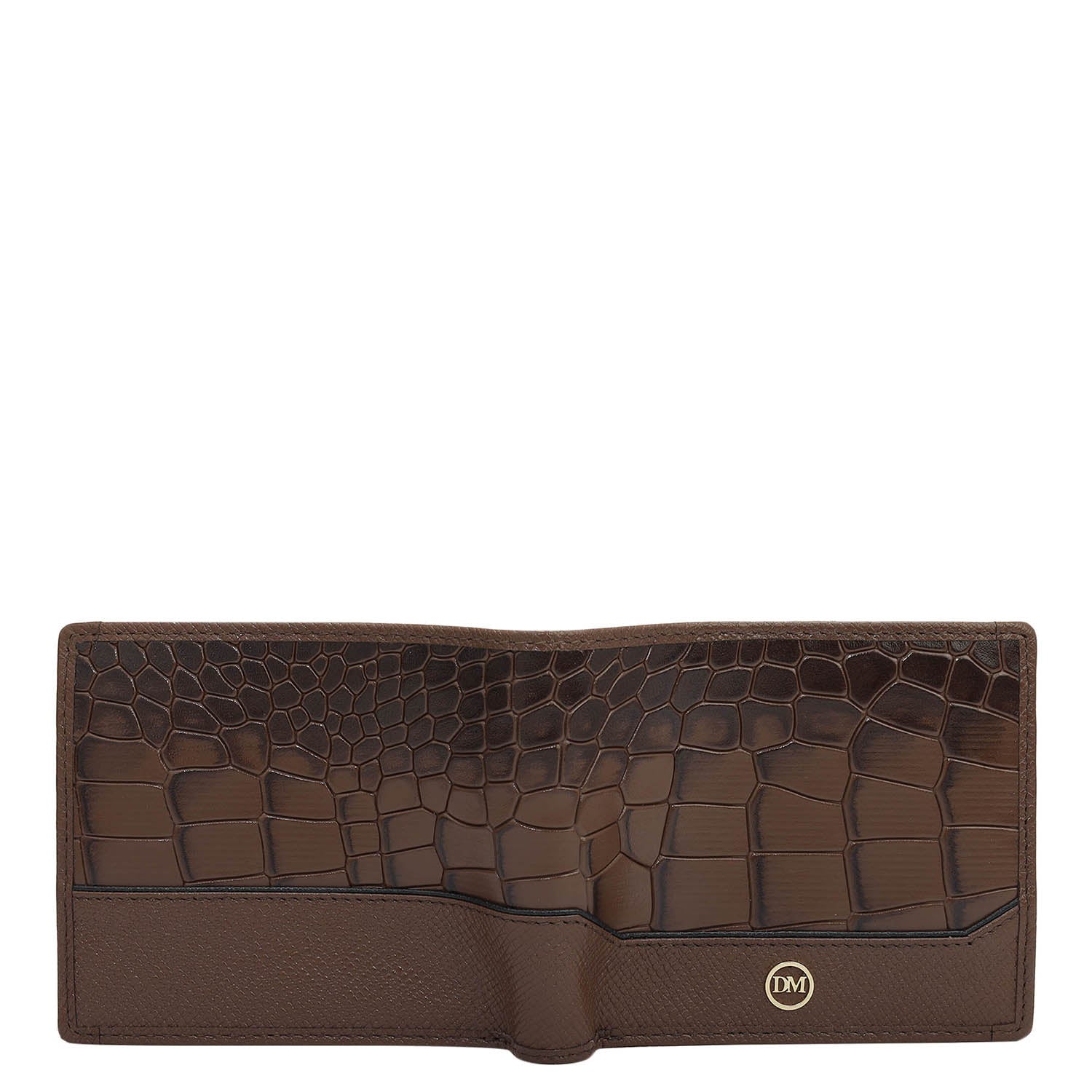 Crafted from textured leather, Da Milano men's bifold wallet offers a compact yet stylish design. Featuring easy-to-organize compartments, card slots, and pockets, it combines practicality with elegance. Subtle branding on the front enhances its refined appearance.
