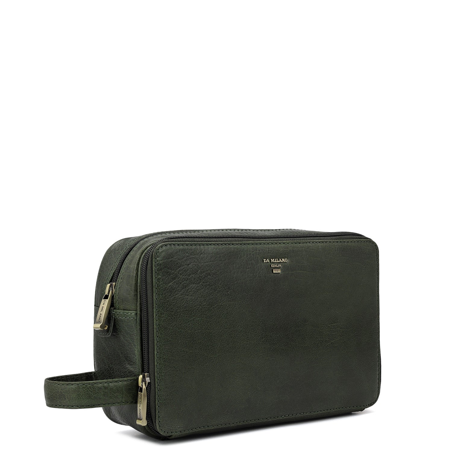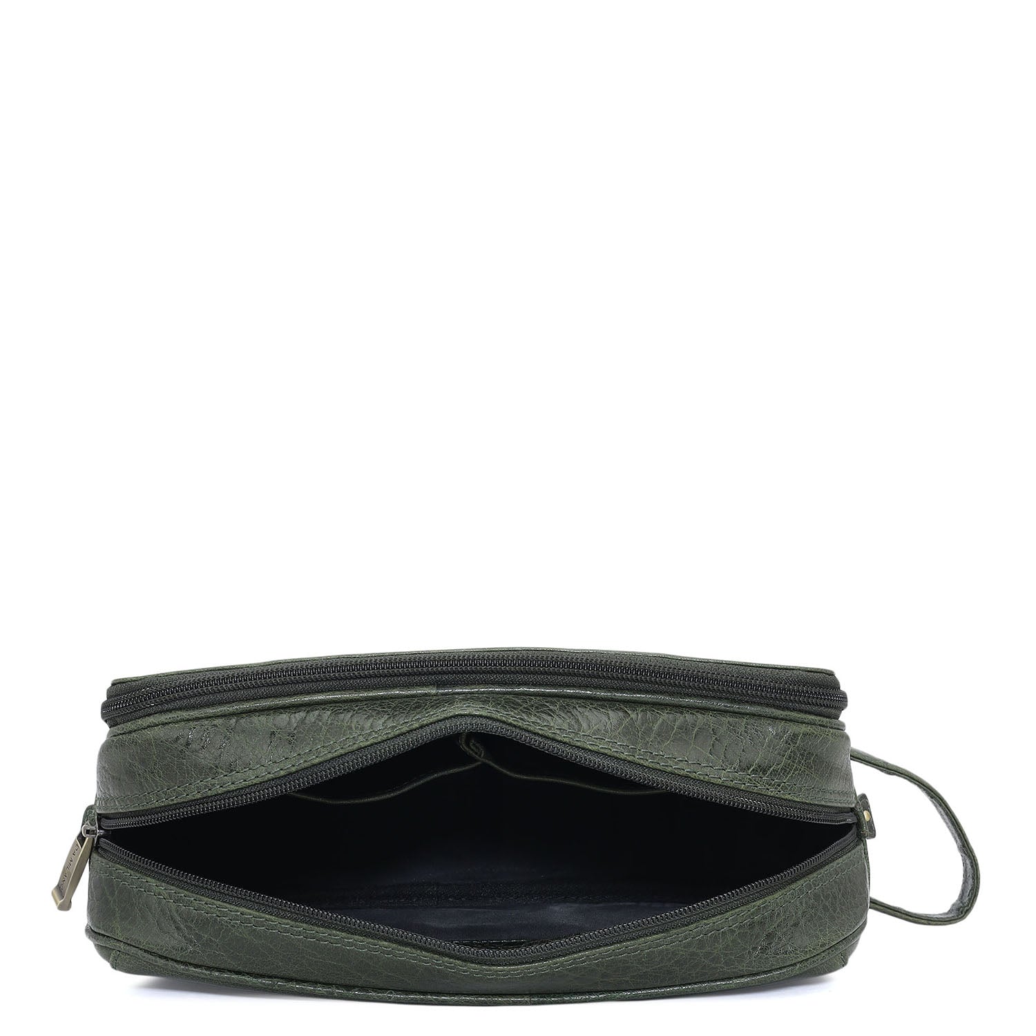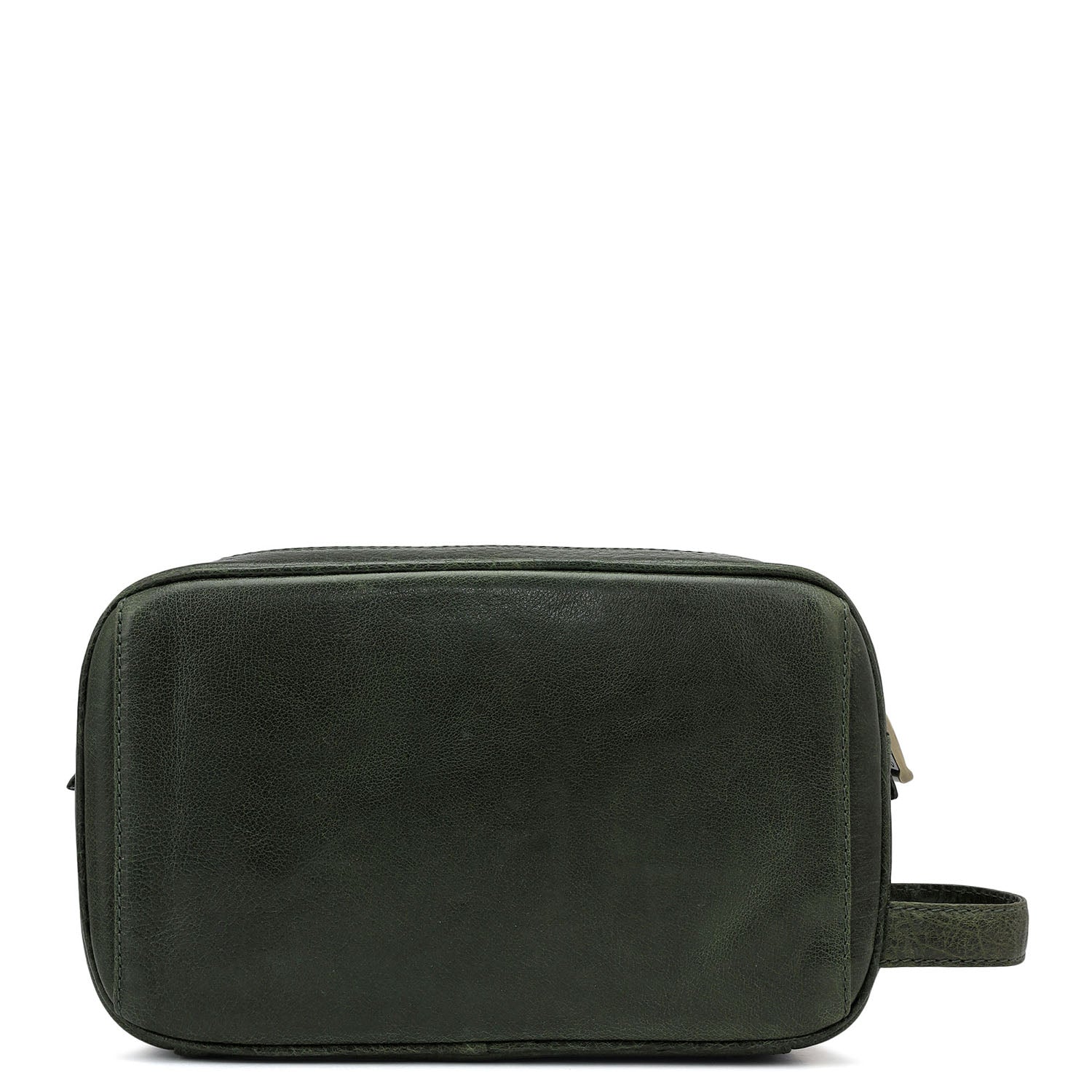 Elephant Pattern Leather Vanity Pouch - Petrol Green
