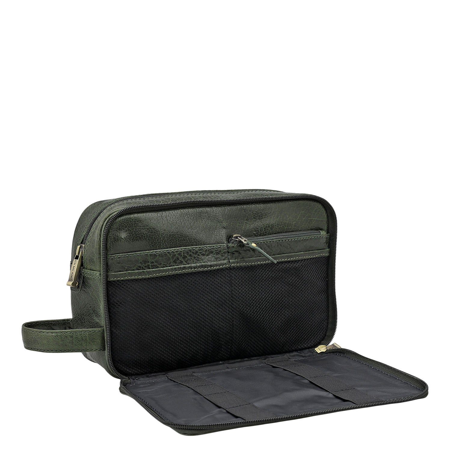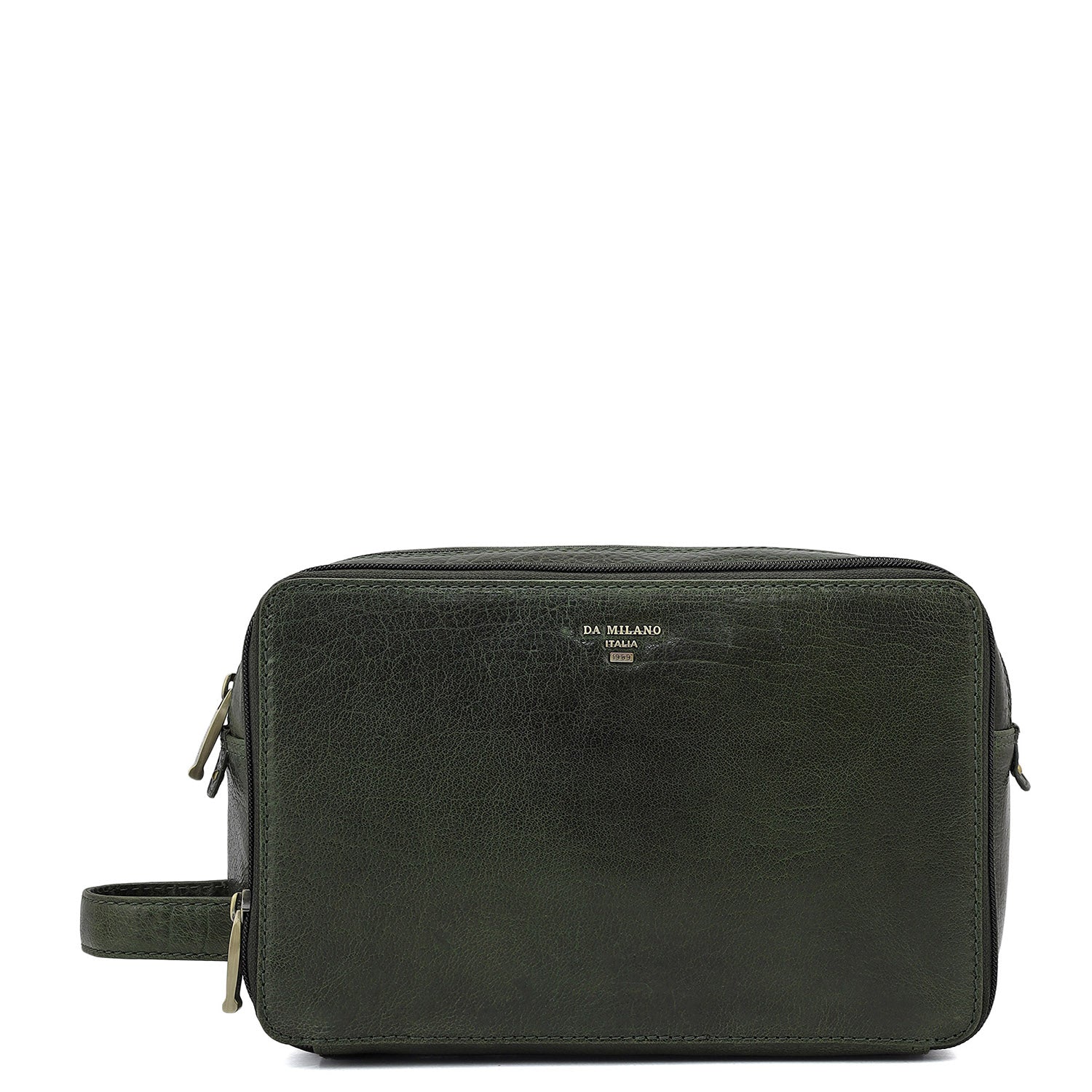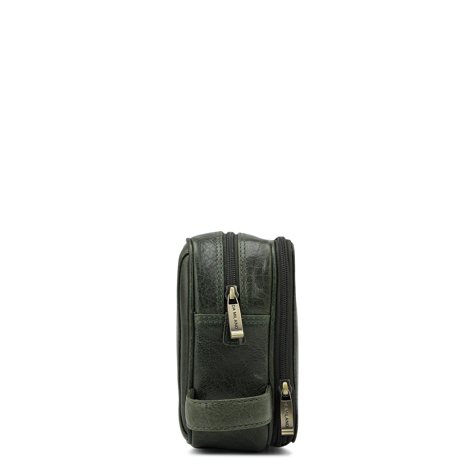 Elephant Pattern Leather Vanity Pouch - Petrol Green