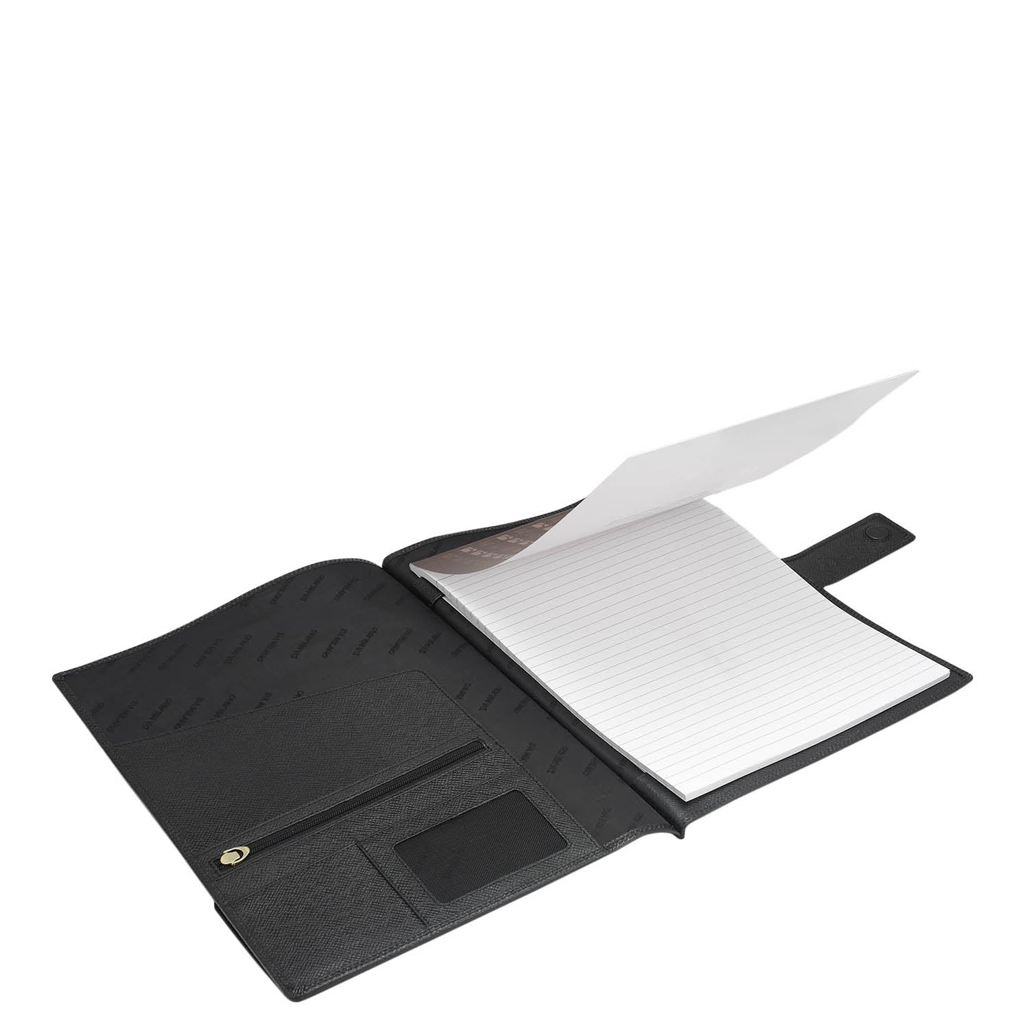 A fine leather folder with a smart exterior. Distinguished by its metal hardware and textured leather, the bag is carefully crafted to maximize utility while keeping it stylish.