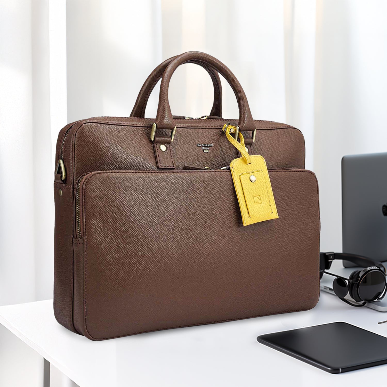 Upraise your professional ensemble with our leather computer bags, meticulously crafted to marry sophistication with practicality. Designed to accommodate laptops of various sizes, these bags feature premium leather for durability and style, ensuring you make a statement in any business setting. Comes with a detachable shoulder strap, and the bag can fit a standard laptop up to 14 inches.