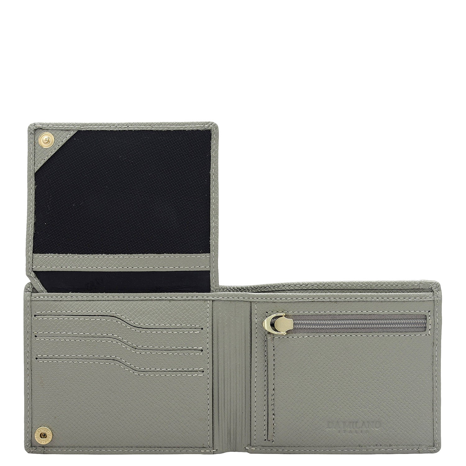 Crafted from textured leather, Da Milano men's bifold wallet offers a compact yet stylish design. Featuring easy-to-organize compartments, card slots, and pockets, it combines practicality with elegance. Subtle branding on the front enhances its refined appearance.