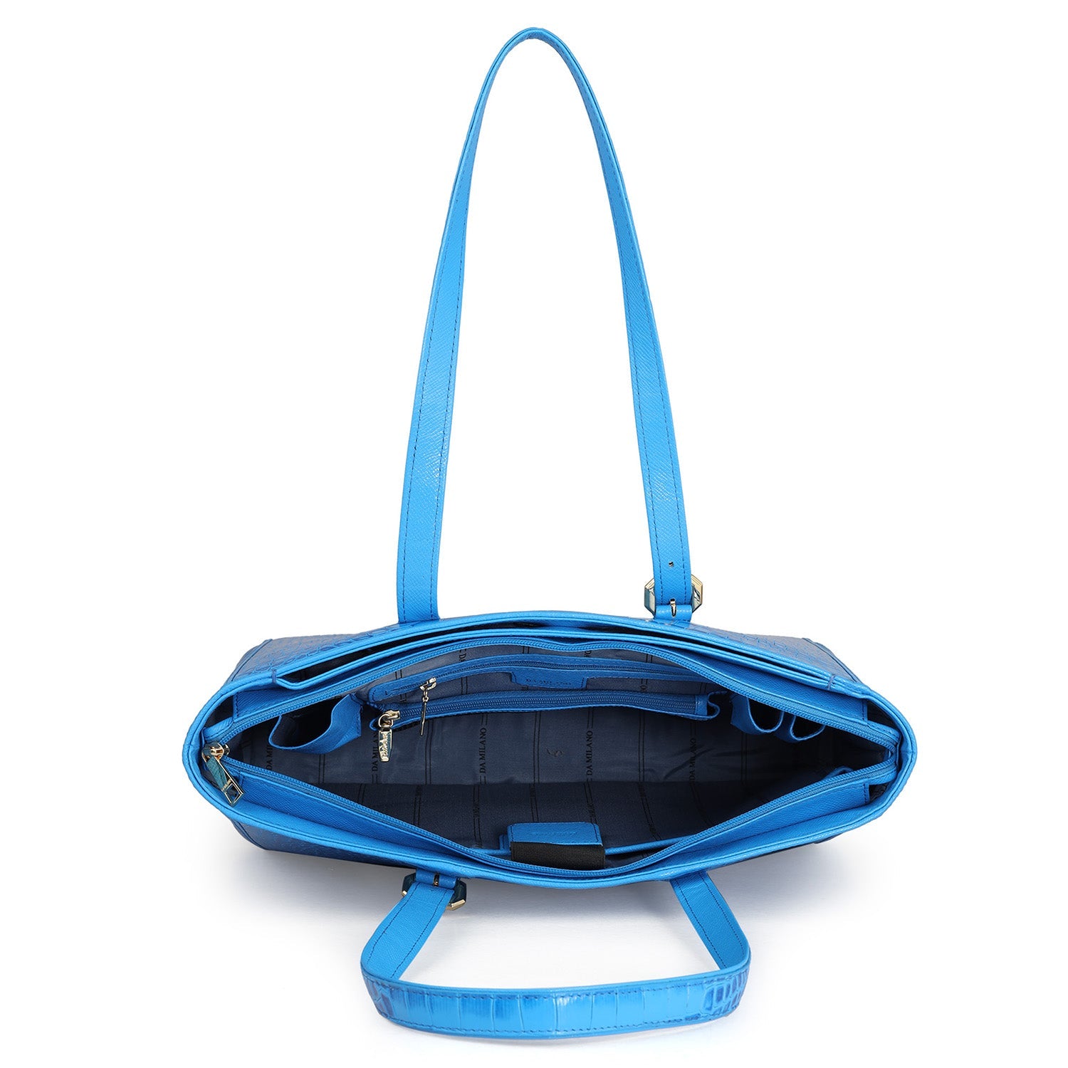 Designed to enhance your style quotient, this piece with its handles and emphasis on utility is a statement in itself. The dual leather texture effect gives it a much needed sophisticated look. The structured silhouette lets it stand out amongst all.