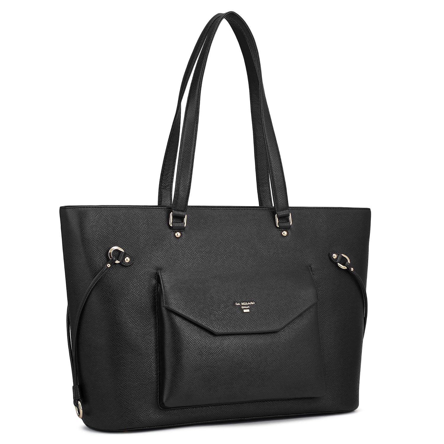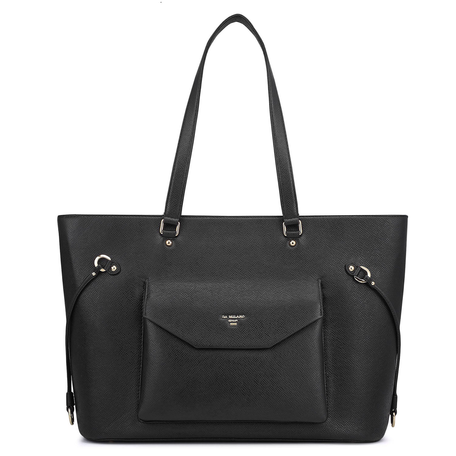 With spacious interior and thoughtfully organized pockets, Da Milano's Leather Tote Bags effortlessly accommodates your everyday essentials with ease. Notebooks, keys, smartphones and other daily essentials, everything finds its place within this meticulously designed accessory. The supple leather exterior lends a luxurious touch, while the sturdy handles ensure comfortable carrying throughout your day. Comes with a detachable shoulder strap, and the bag can fit a standard laptop up to 14 inches.