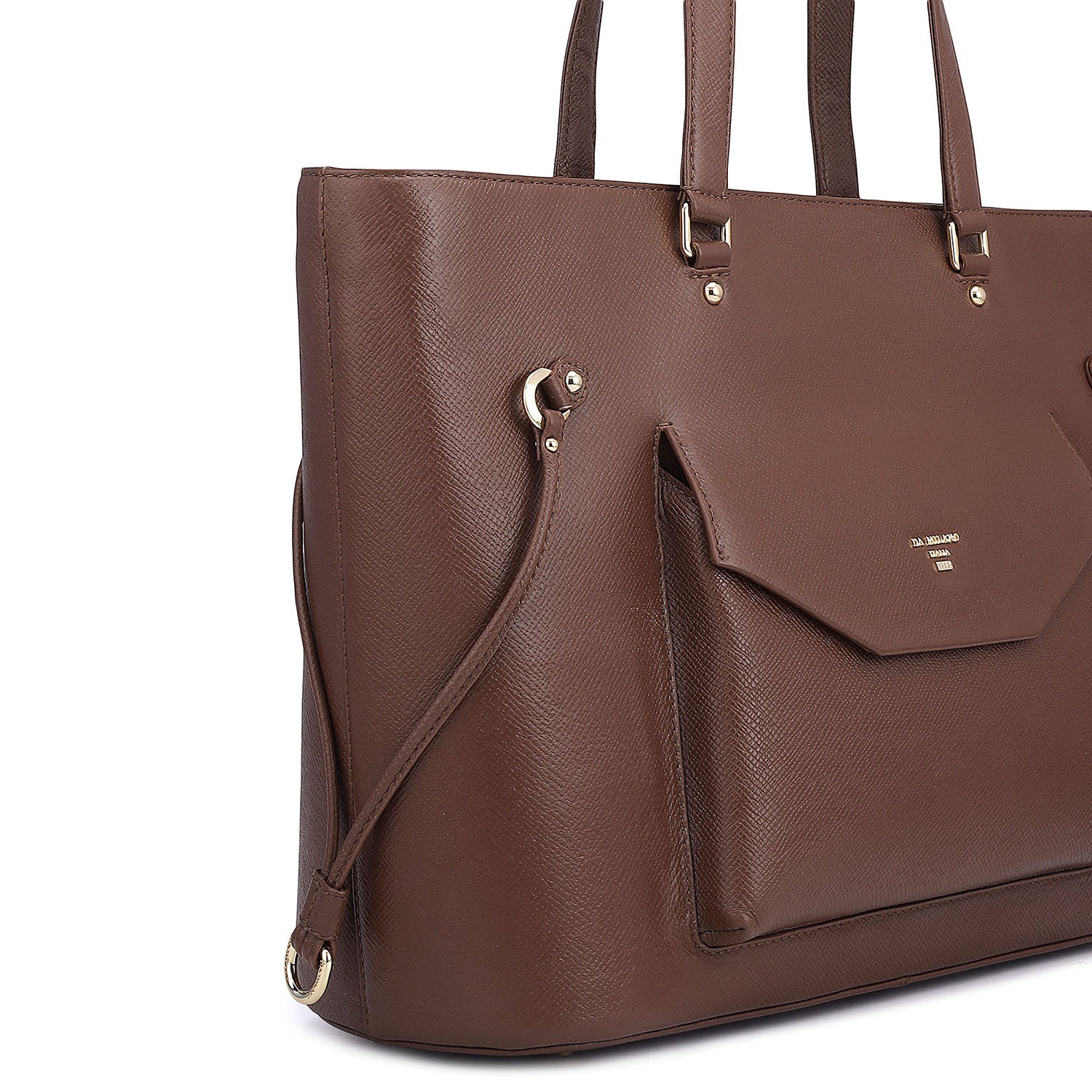 With spacious interior and thoughtfully organized pockets, Da Milano's Leather Tote Bags effortlessly accommodates your everyday essentials with ease. Notebooks, keys, smartphones and other daily essentials, everything finds its place within this meticulously designed accessory. The supple leather exterior lends a luxurious touch, while the sturdy handles ensure comfortable carrying throughout your day. Comes with a detachable shoulder strap, and the bag can fit a standard laptop up to 14 inches.