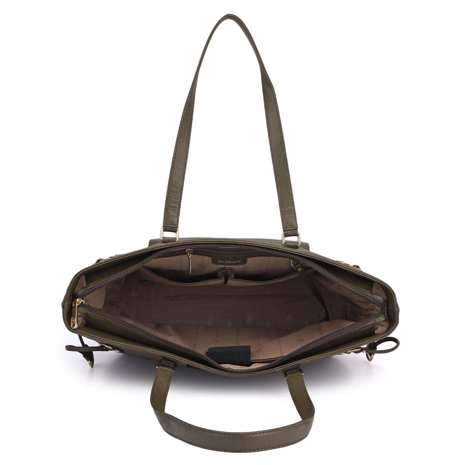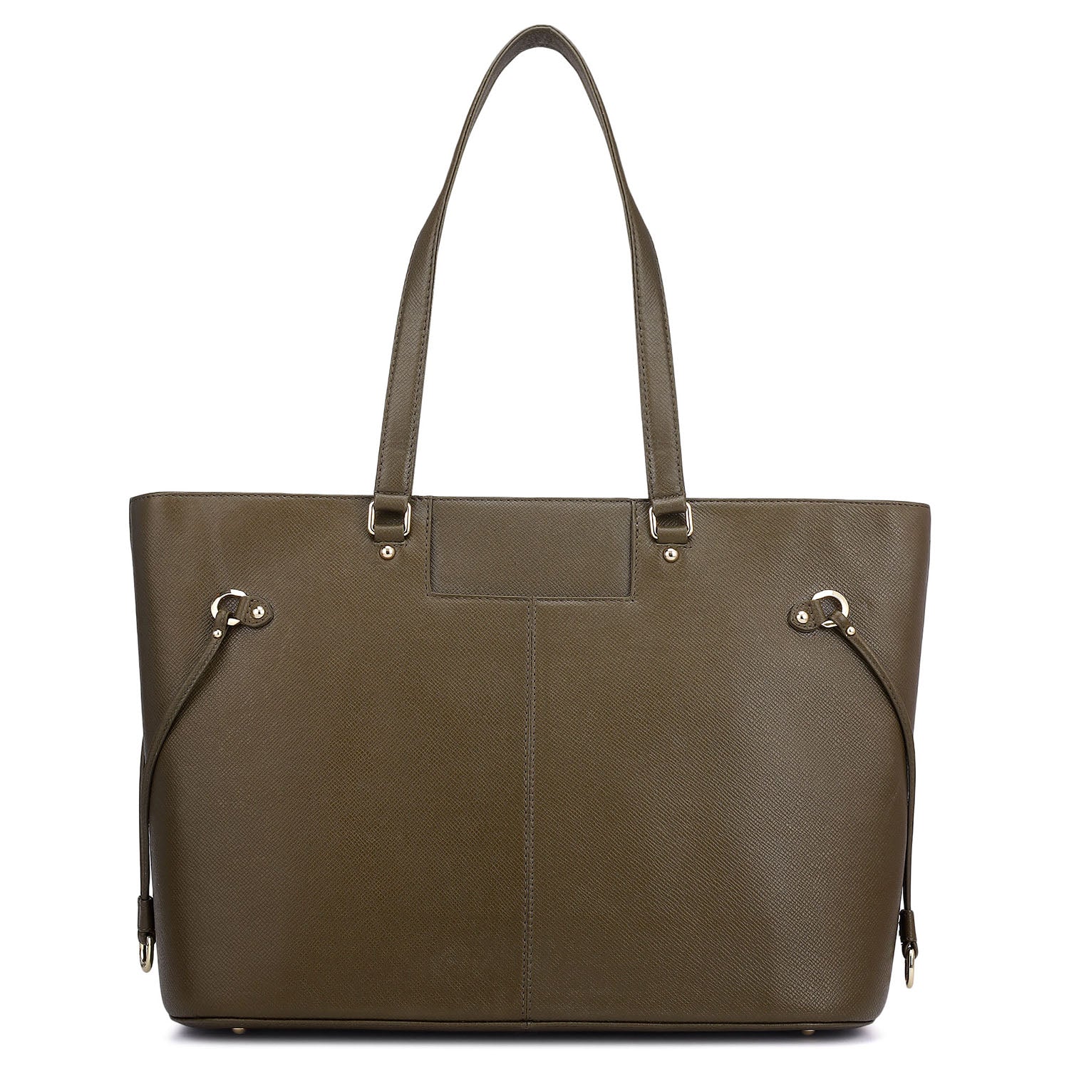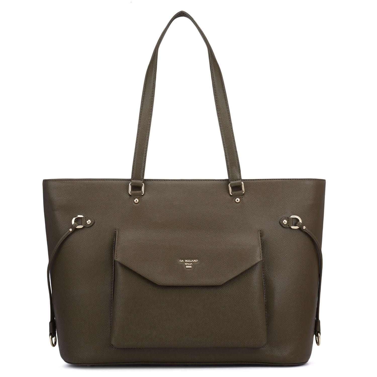 With spacious interior and thoughtfully organized pockets, Da Milano's Leather Tote Bags effortlessly accommodates your everyday essentials with ease. Notebooks, keys, smartphones and other daily essentials, everything finds its place within this meticulously designed accessory. The supple leather exterior lends a luxurious touch, while the sturdy handles ensure comfortable carrying throughout your day. Comes with a detachable shoulder strap, and the bag can fit a standard laptop up to 14 inches.