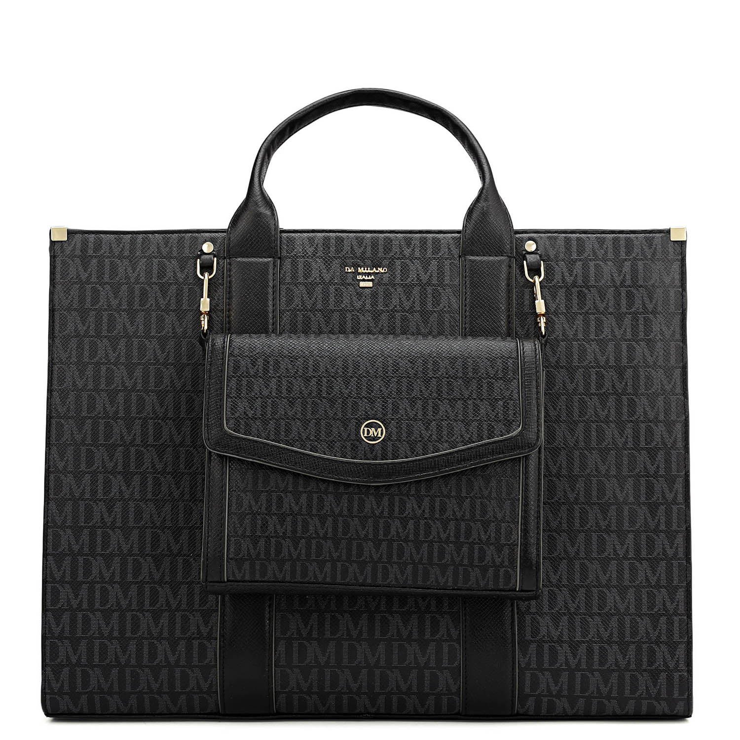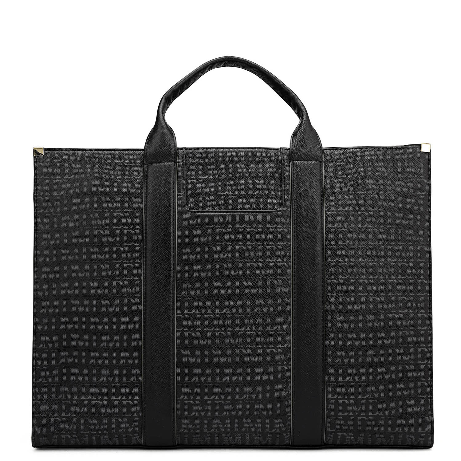 Large Monogram Leather Book Tote - Black