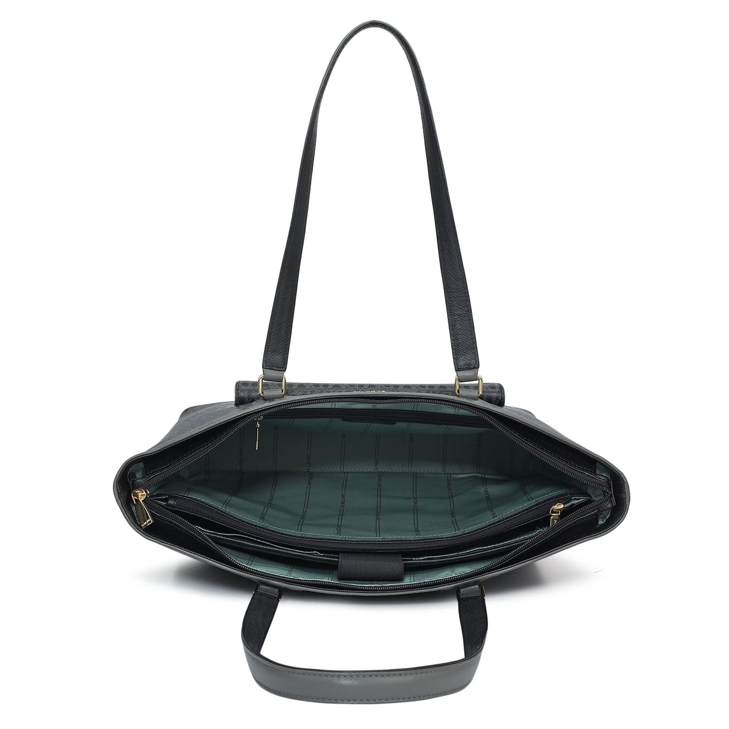 With spacious interior and thoughtfully organized pockets, Da Milano's Leather Tote Bags effortlessly accommodates your everyday essentials with ease. Laptops, notebooks ,keys, smartphones and other daily need products, everything finds its place within this meticulously designed accessory. The supple leather exterior lends a luxurious touch, while the sturdy handles ensure comfortable carrying throughout your day. This bag can fit a standard laptop up to 14 inches.