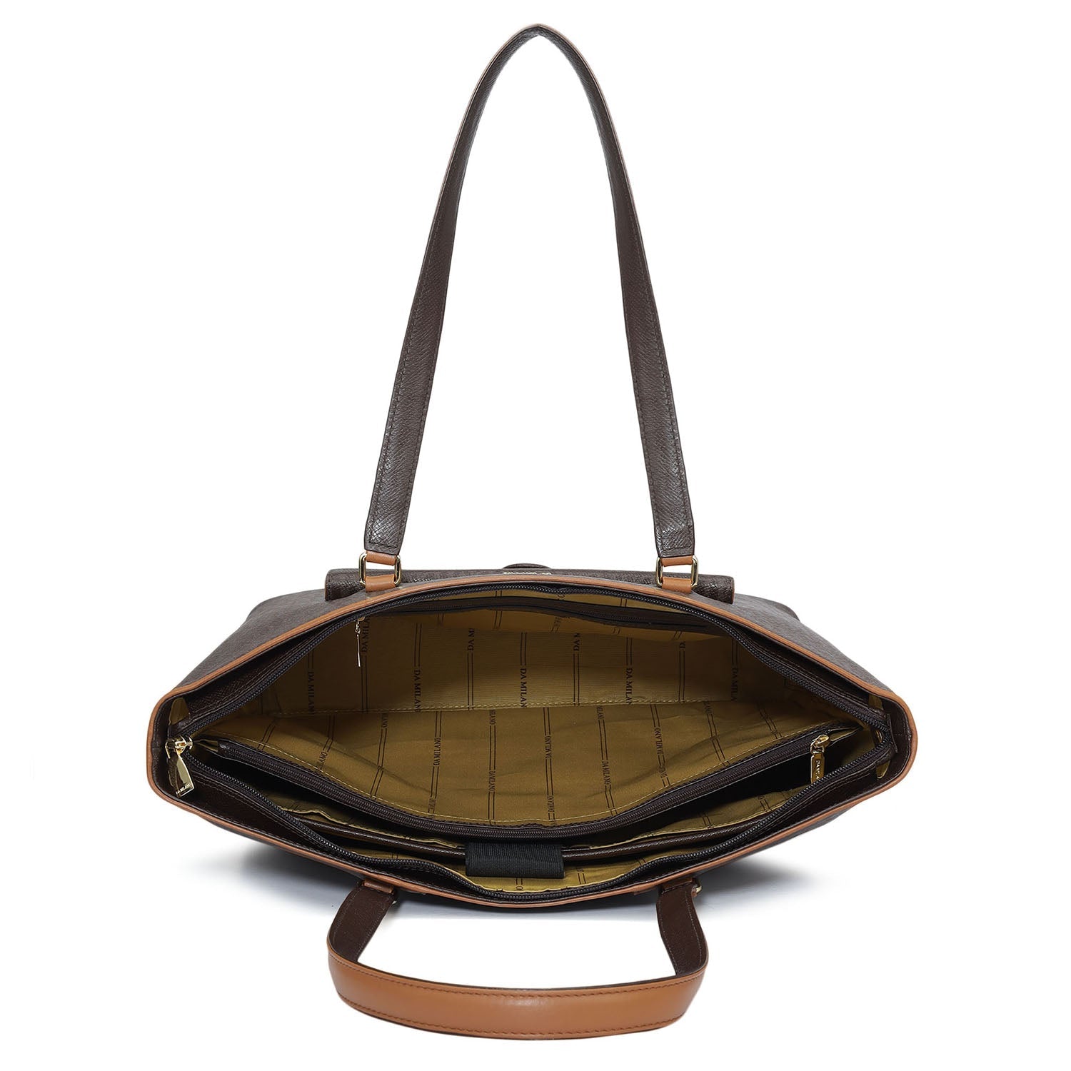 With spacious interior and thoughtfully organized pockets, Da Milano's Leather Tote Bags effortlessly accommodates your everyday essentials with ease. Laptops, notebooks ,keys, smartphones and other daily need products, everything finds its place within this meticulously designed accessory. The supple leather exterior lends a luxurious touch, while the sturdy handles ensure comfortable carrying throughout your day. This bag can fit a standard laptop up to 14 inches.