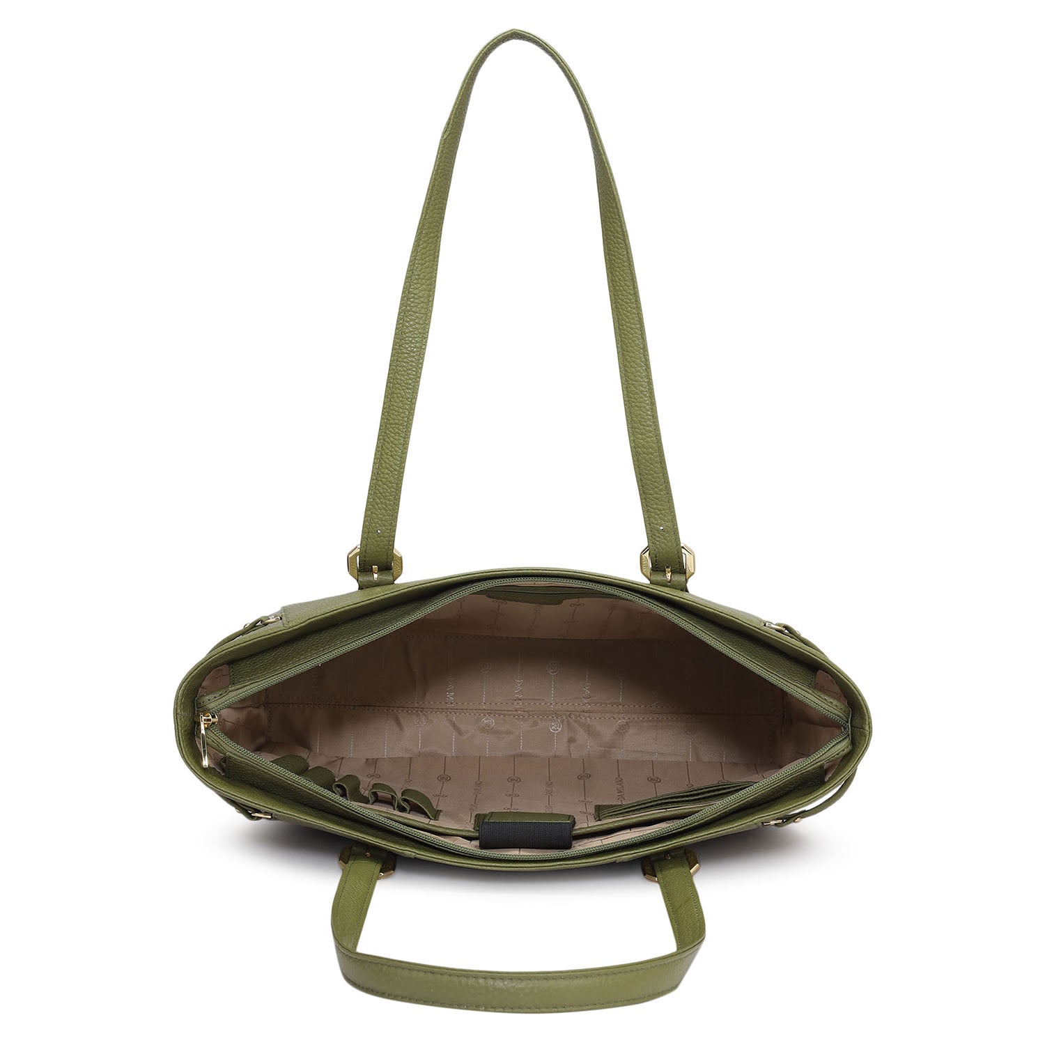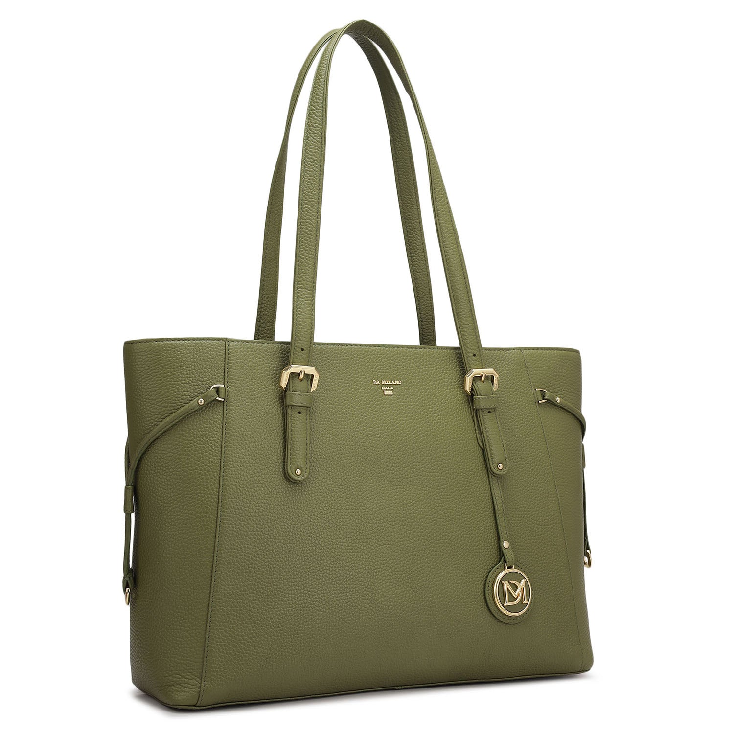 With spacious interior and thoughtfully organized pockets, Da Milano's Leather Tote Bags effortlessly accommodates your everyday essentials with ease. Notebooks, keys, smartphones and other daily essentials, everything finds its place within this meticulously designed accessory. The supple leather exterior lends a luxurious touch, while the sturdy handles ensure comfortable carrying throughout your day. This bag can fit a standard laptop up to 14 inches.