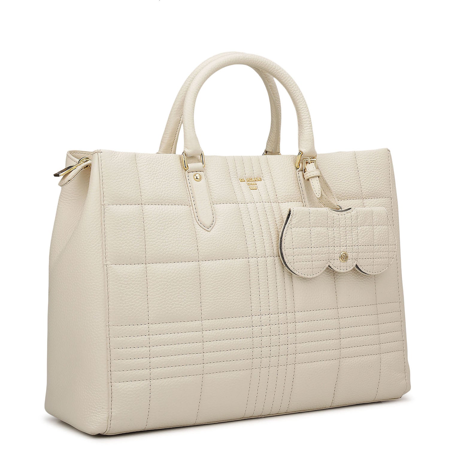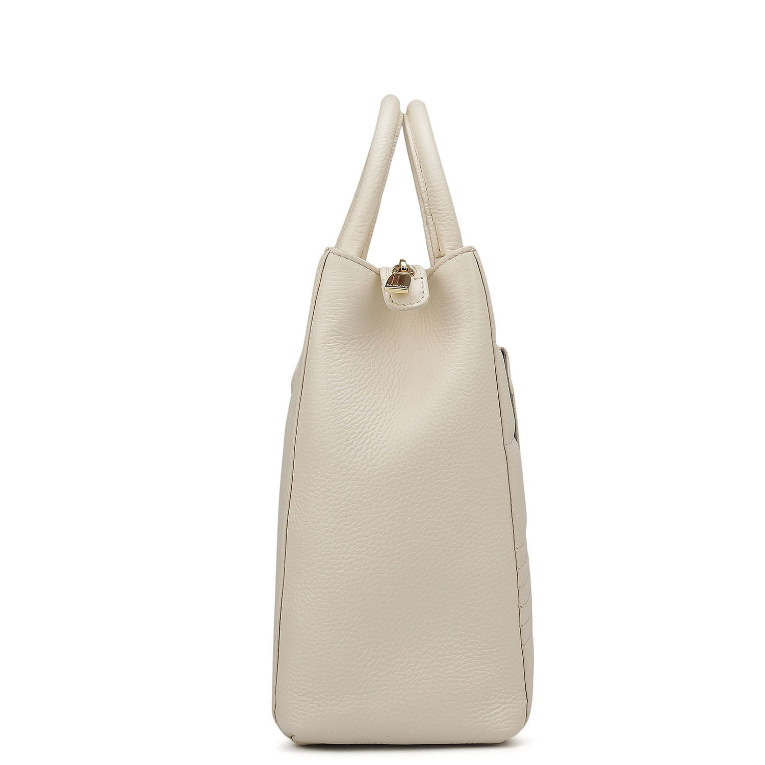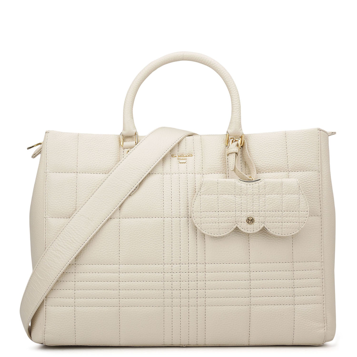 Large Wax Stripe Leather Book Tote - Off White