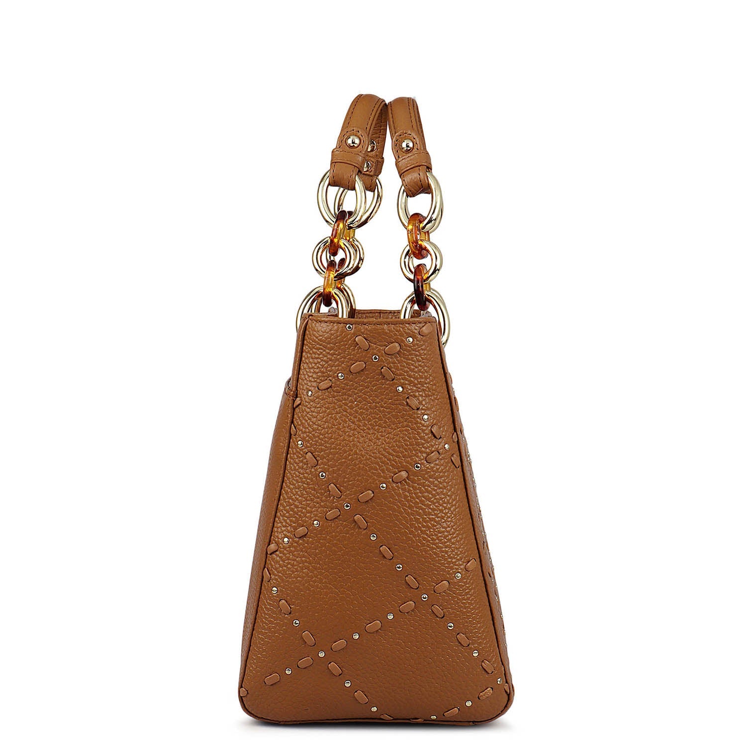 This elegant leather satchel handbag combines timeless style with practical functionality. Crafted from premium full-grain leather, it features a spacious interior with multiple compartments, and a detachable shoulder strap for versatile carrying options. Perfect for both professional and casual situations.