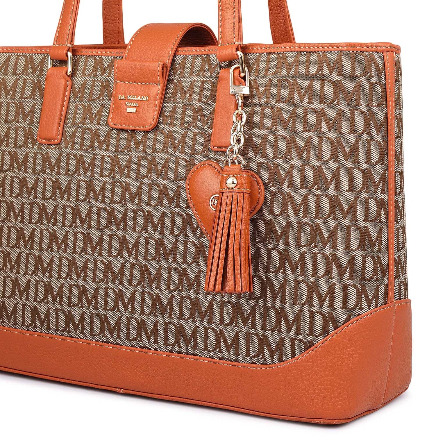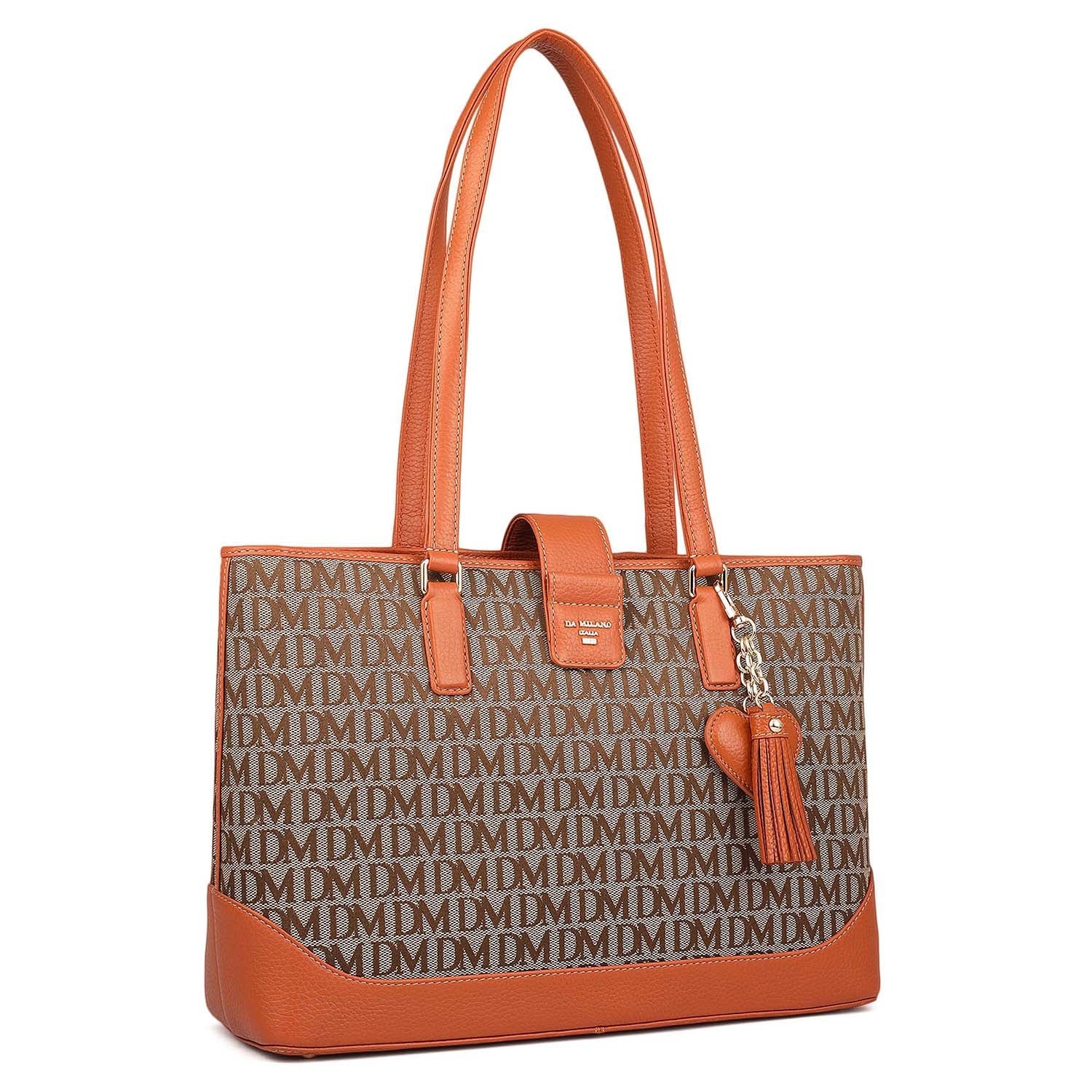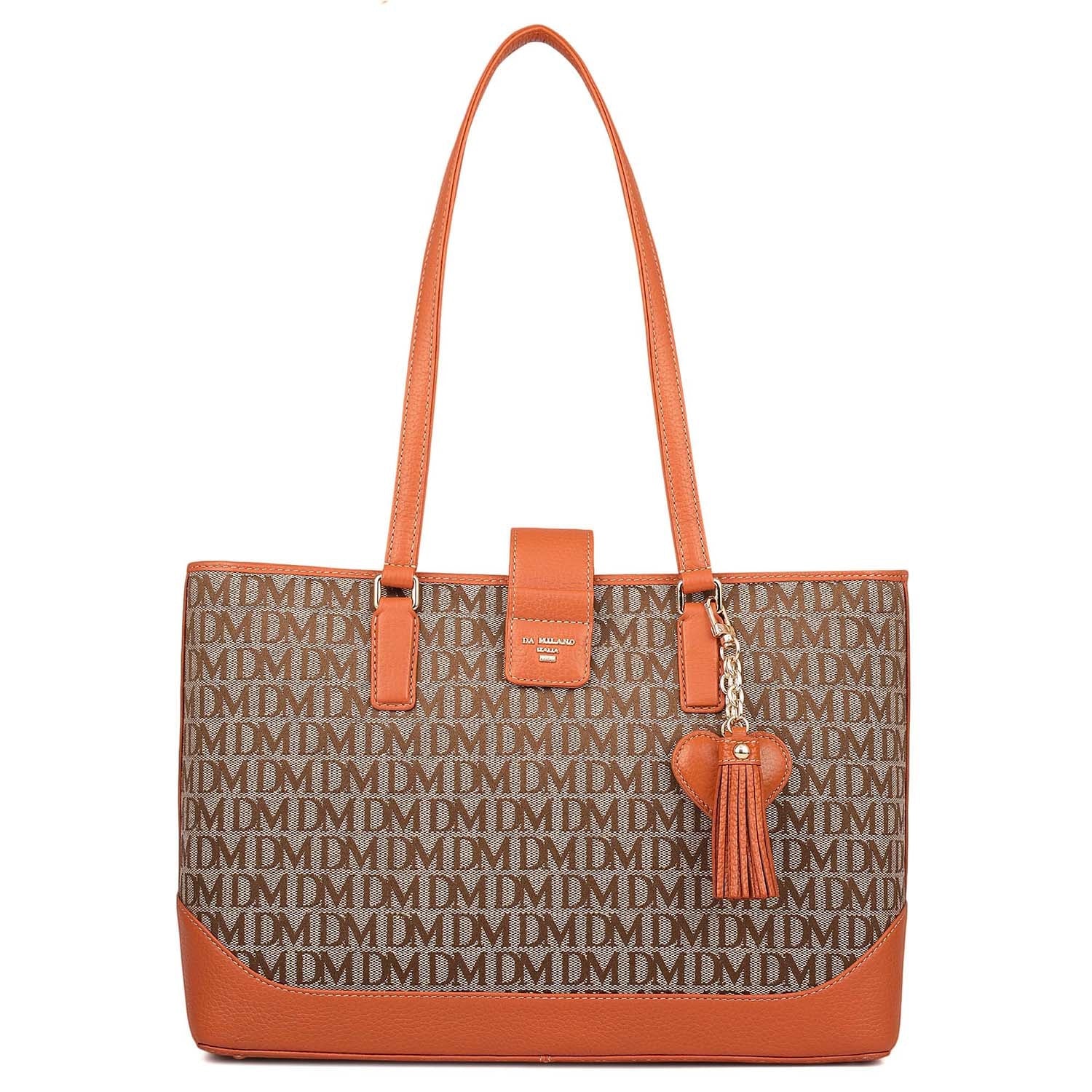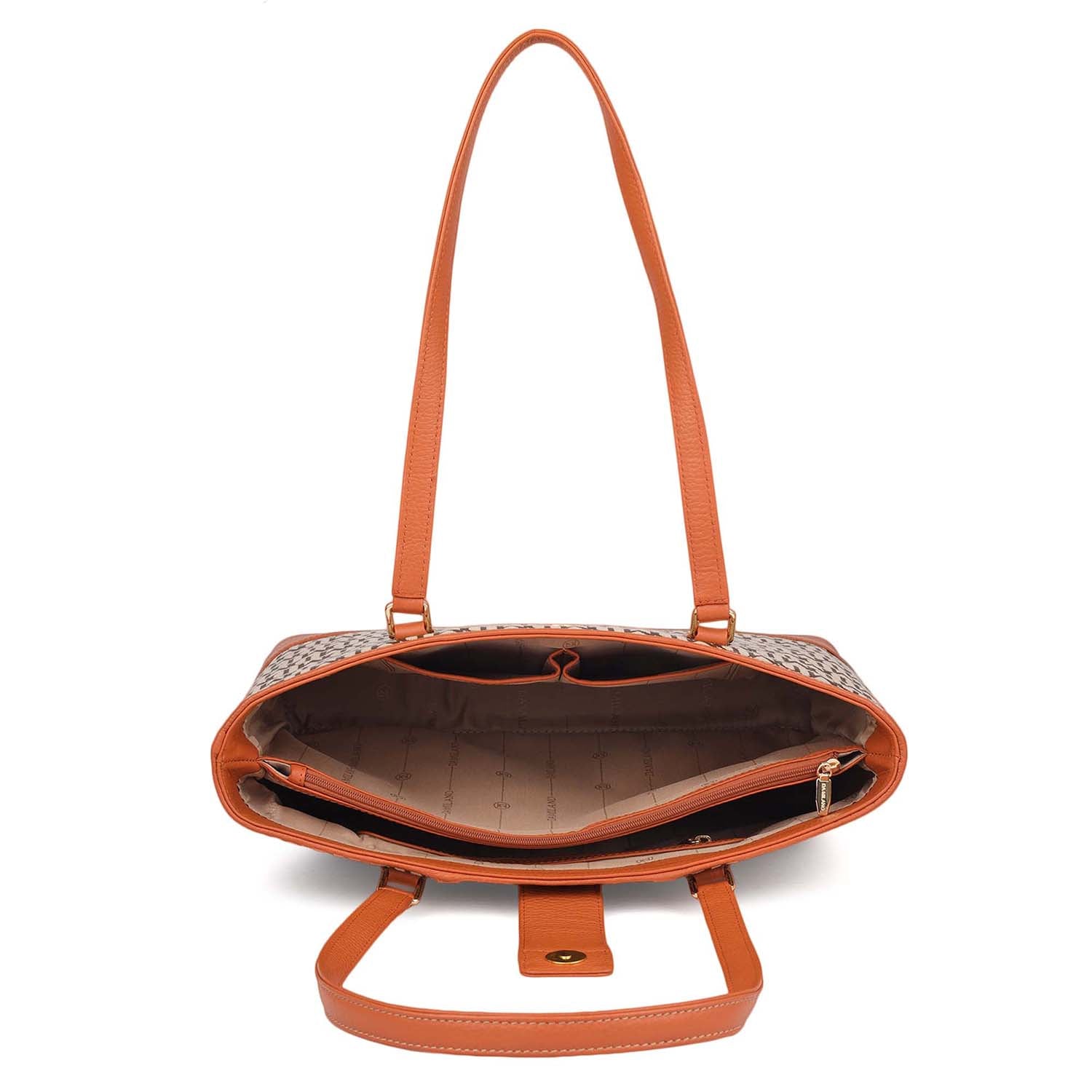 Medium Canvas Wax Leather Shoulder Bag - Beige & Orange