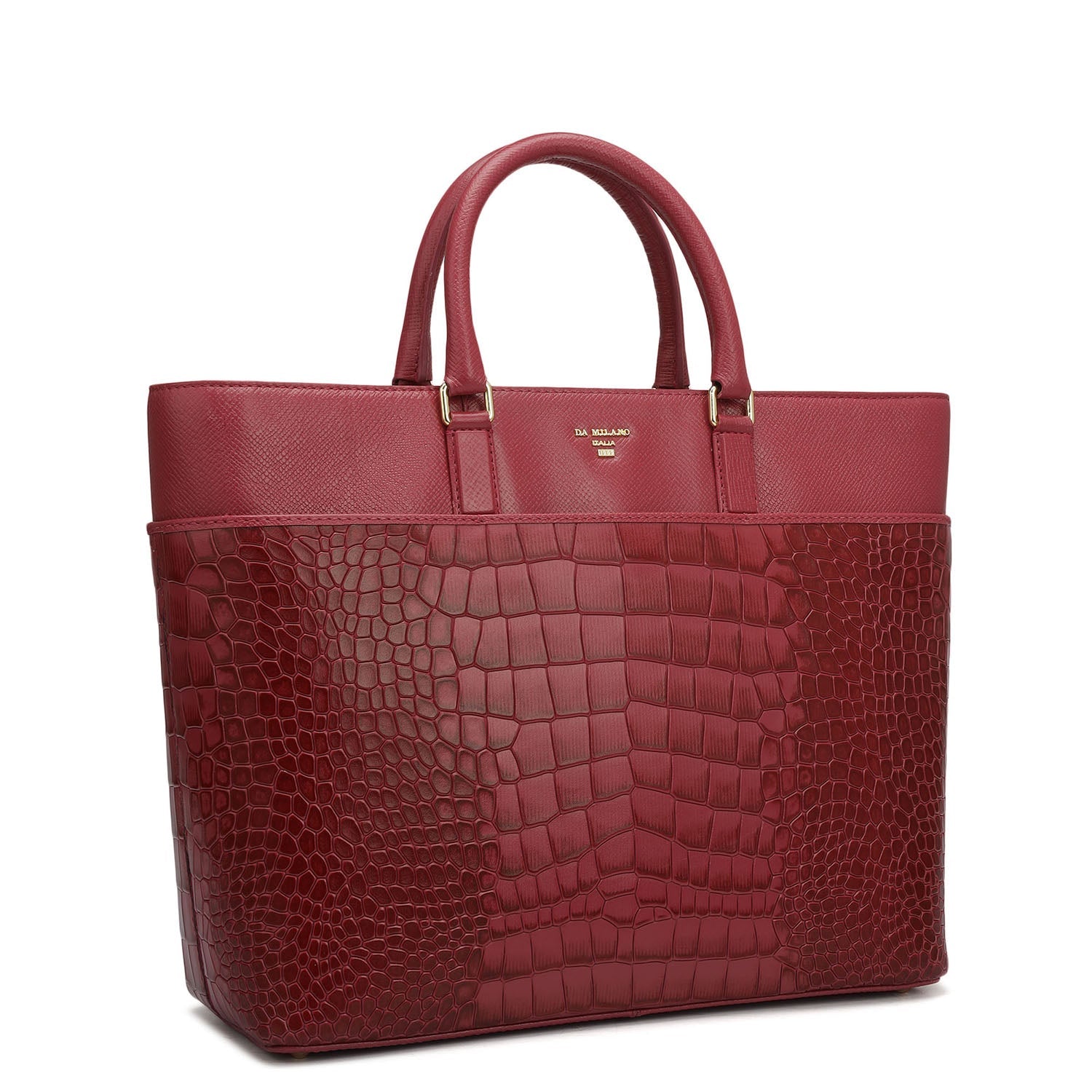 Medium Croco Franzy Leather Satchel - Plumberry