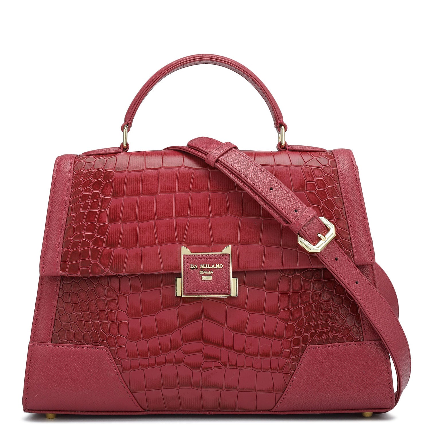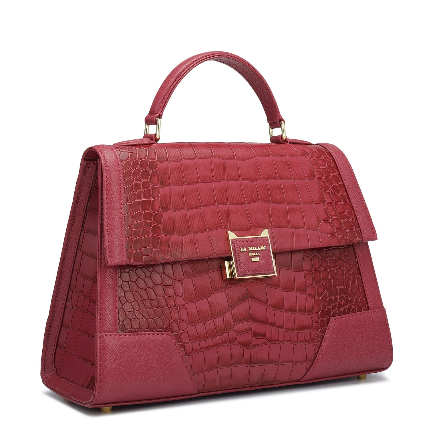 Medium Croco Franzy Leather Satchel - Plumberry