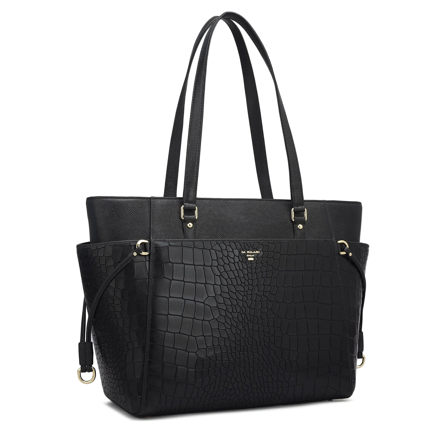 Medium Croco Franzy Leather Shoulder Bag - Black