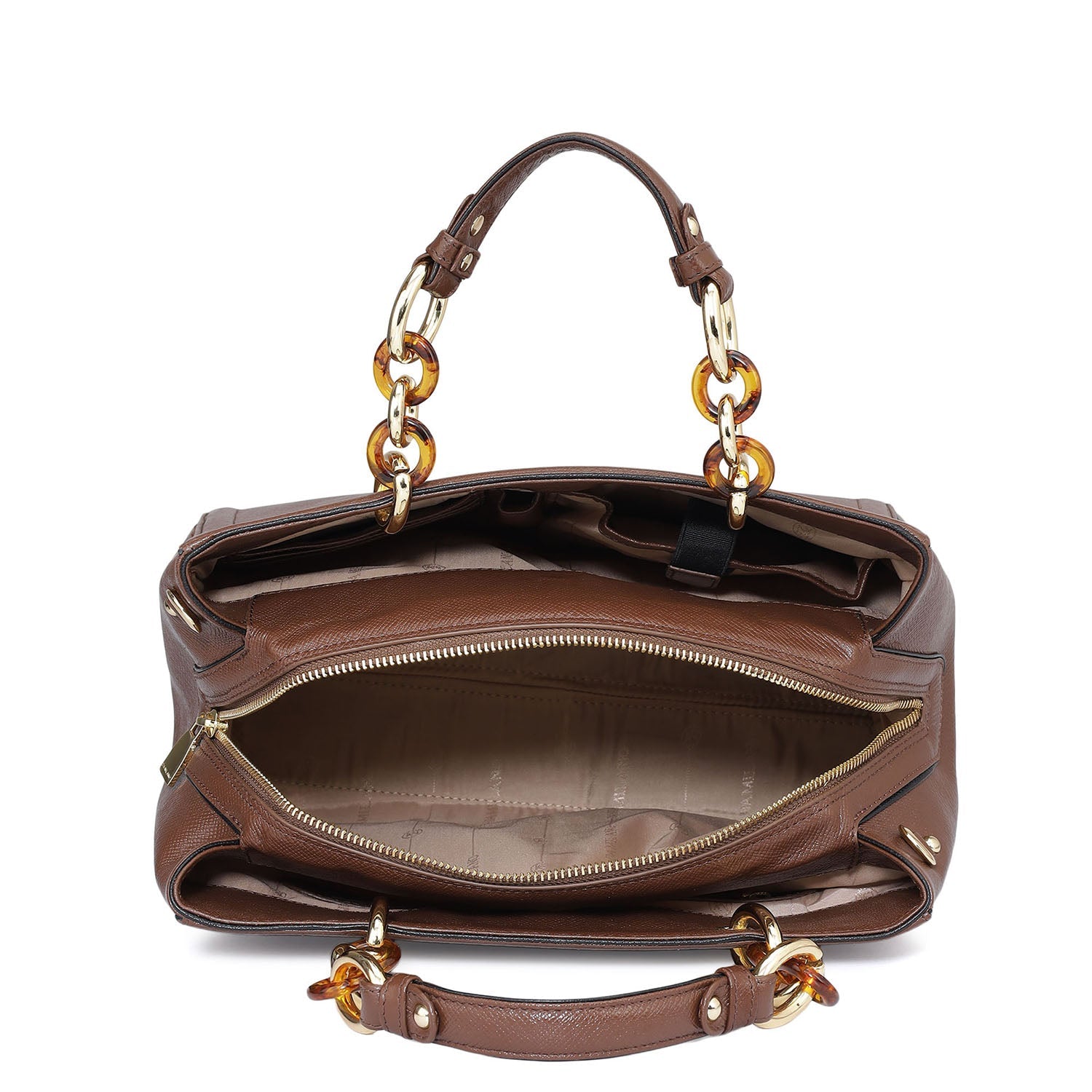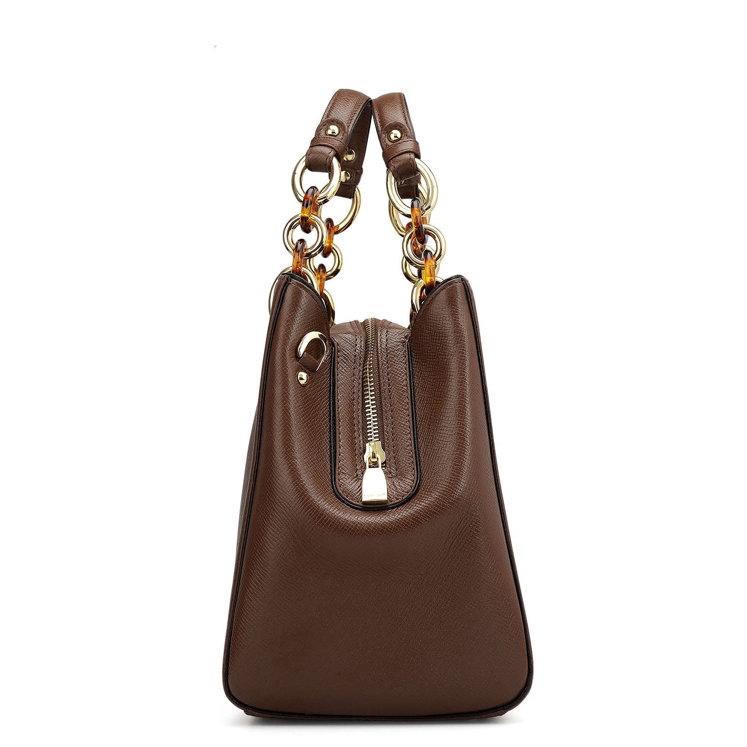 This elegant leather satchel handbag combines timeless style with practical functionality. Crafted from premium full-grain leather, it features a spacious interior with multiple compartments, and a detachable shoulder strap for versatile carrying options. Perfect for both professional and casual situations.