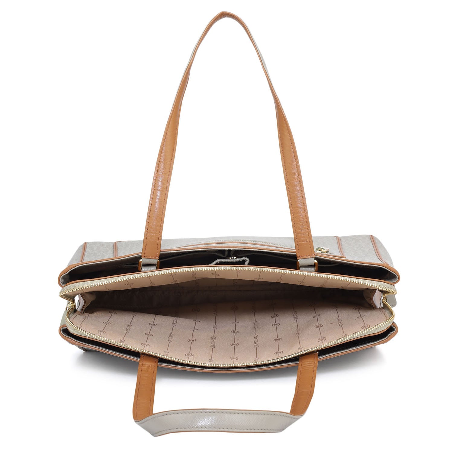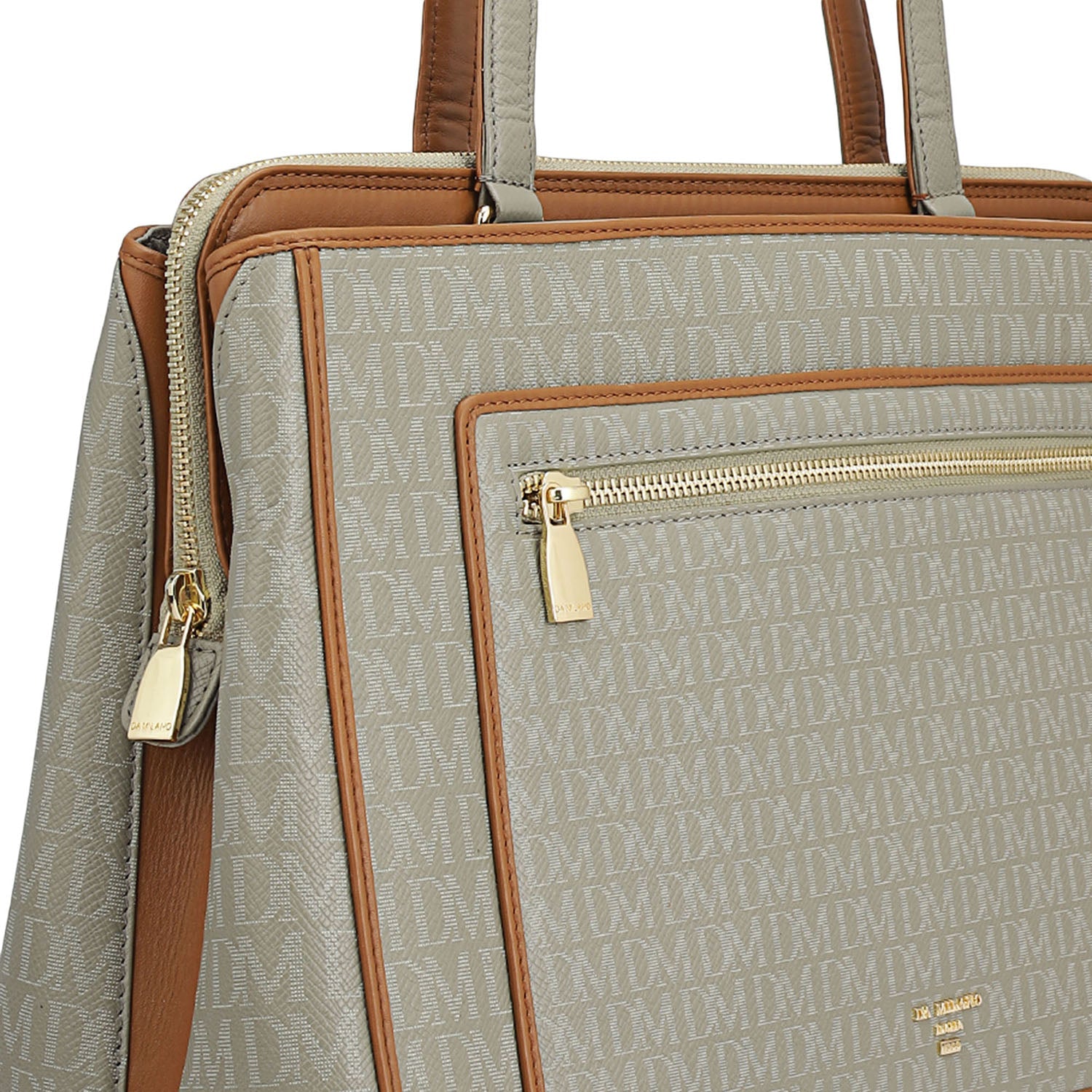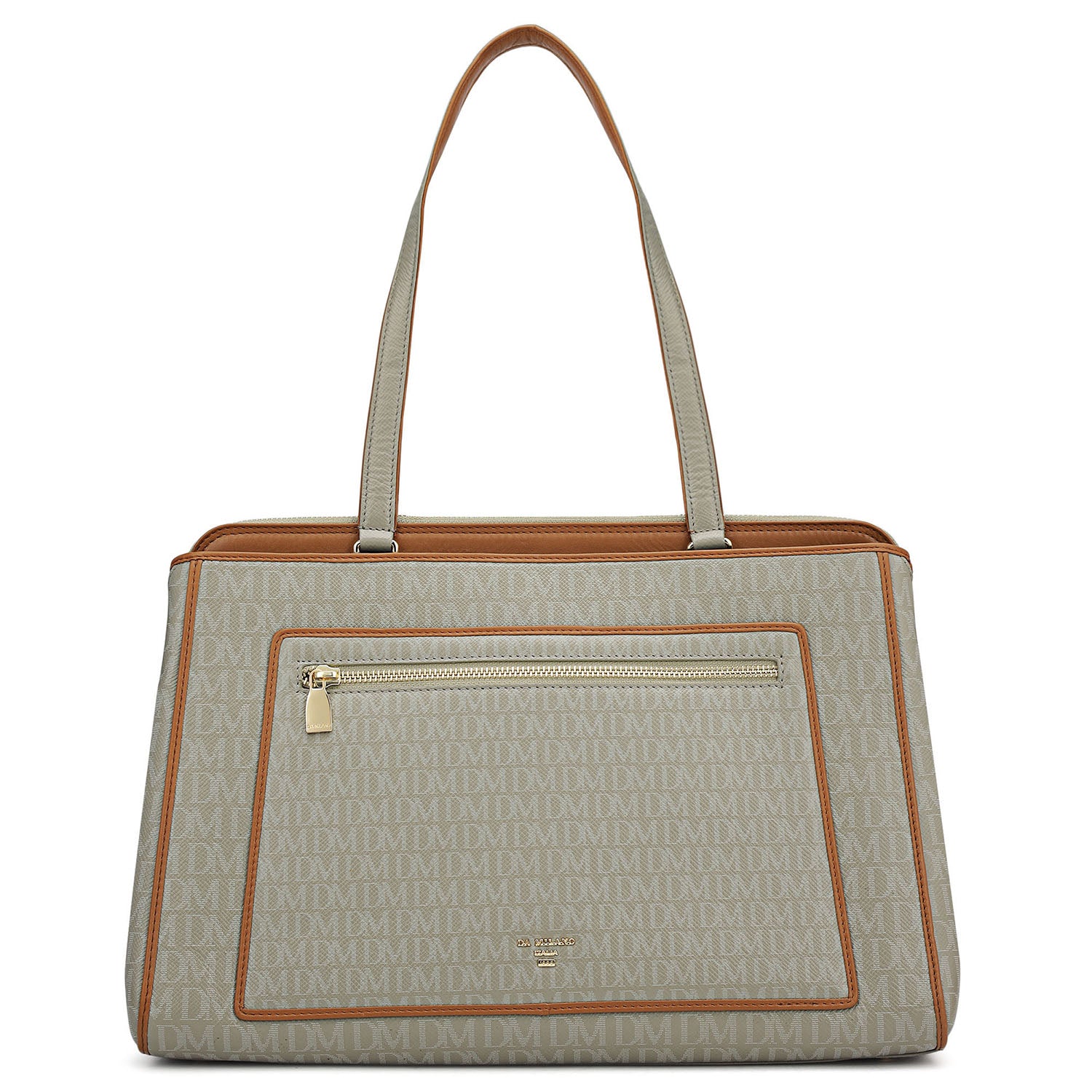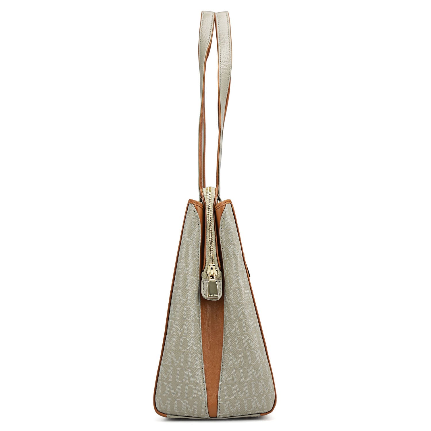 Medium Monogram Leather Shoulder Bag - Stone Grey