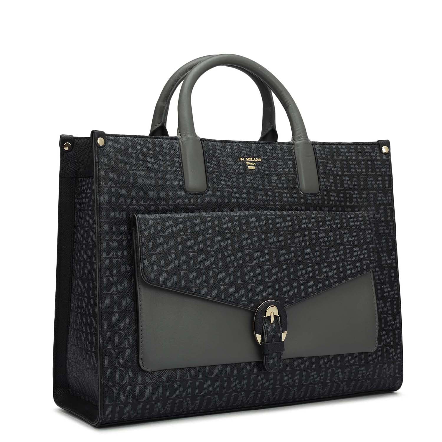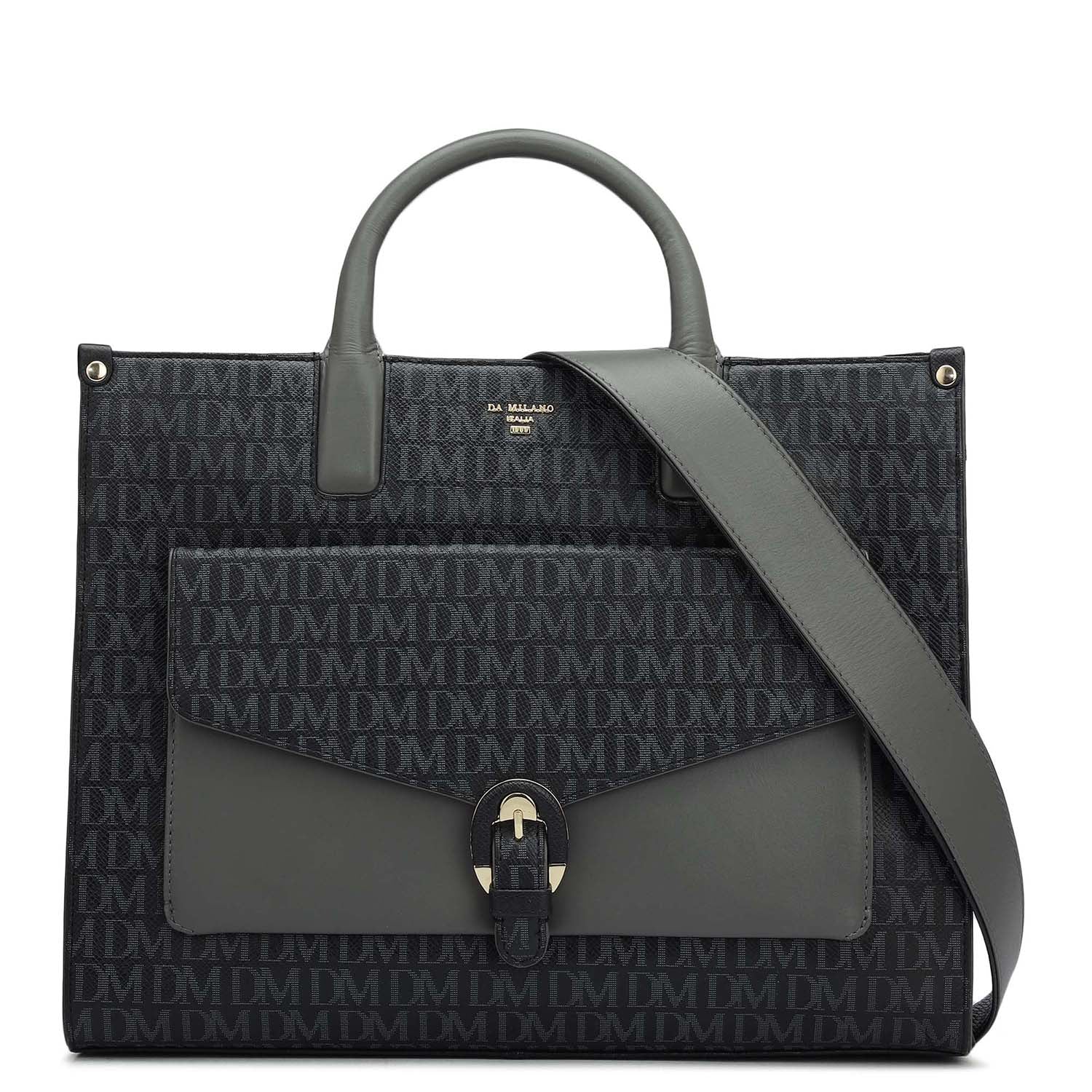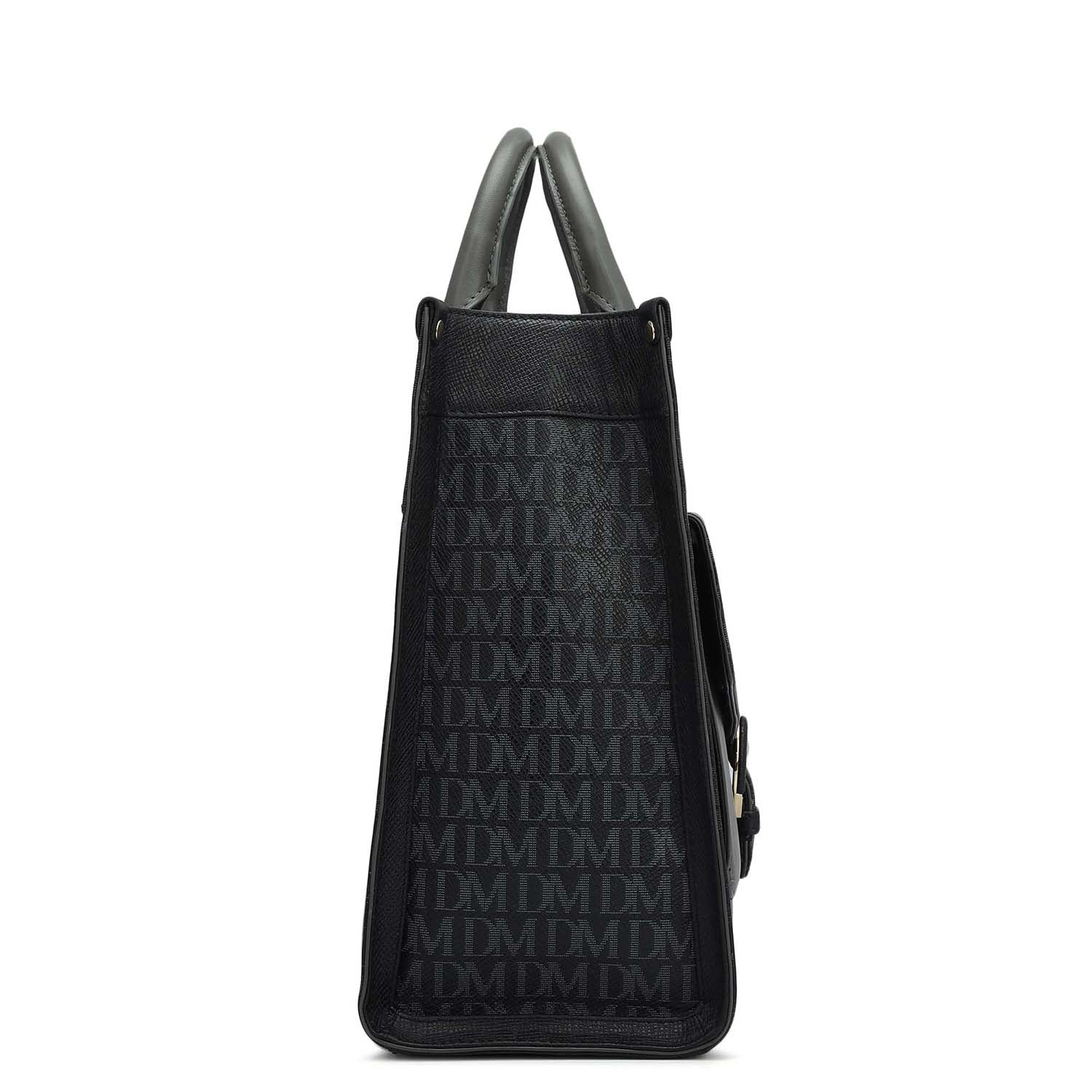 Medium Monogram Plain Leather Satchel - Black