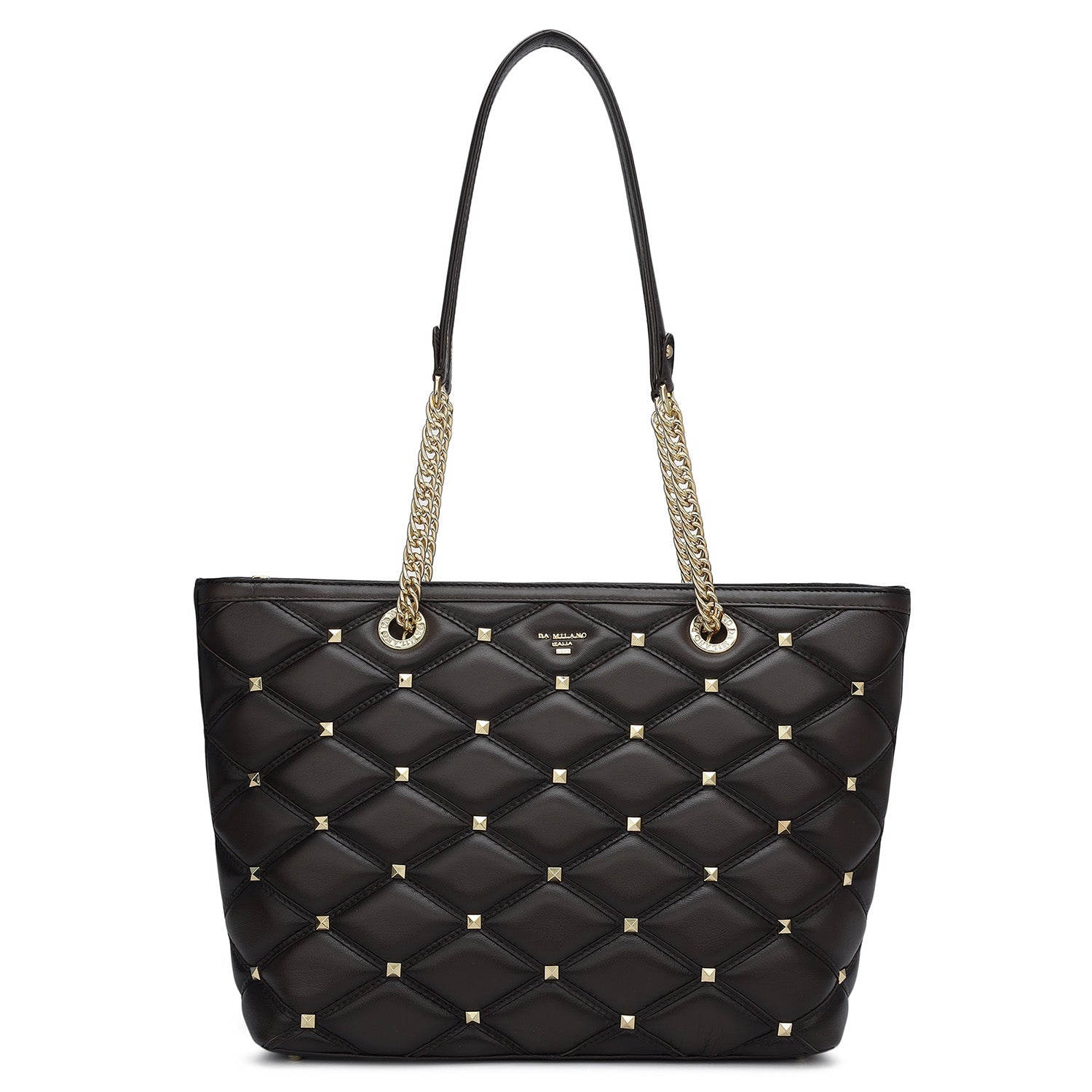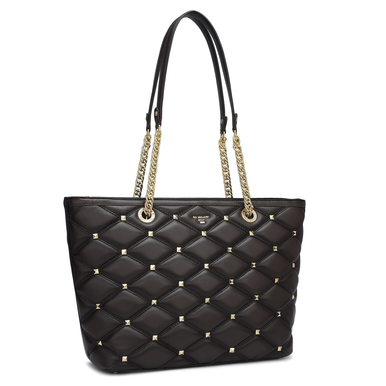 Medium Quilting Plain Leather Shoulder Bag - Brown