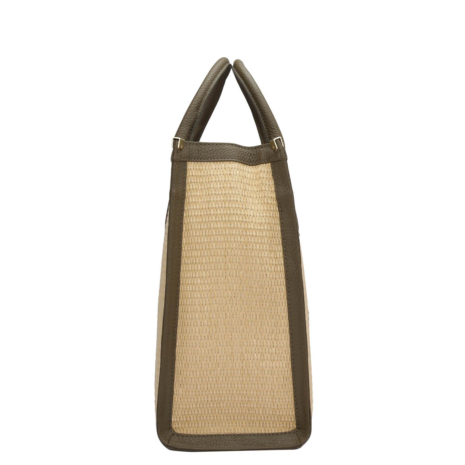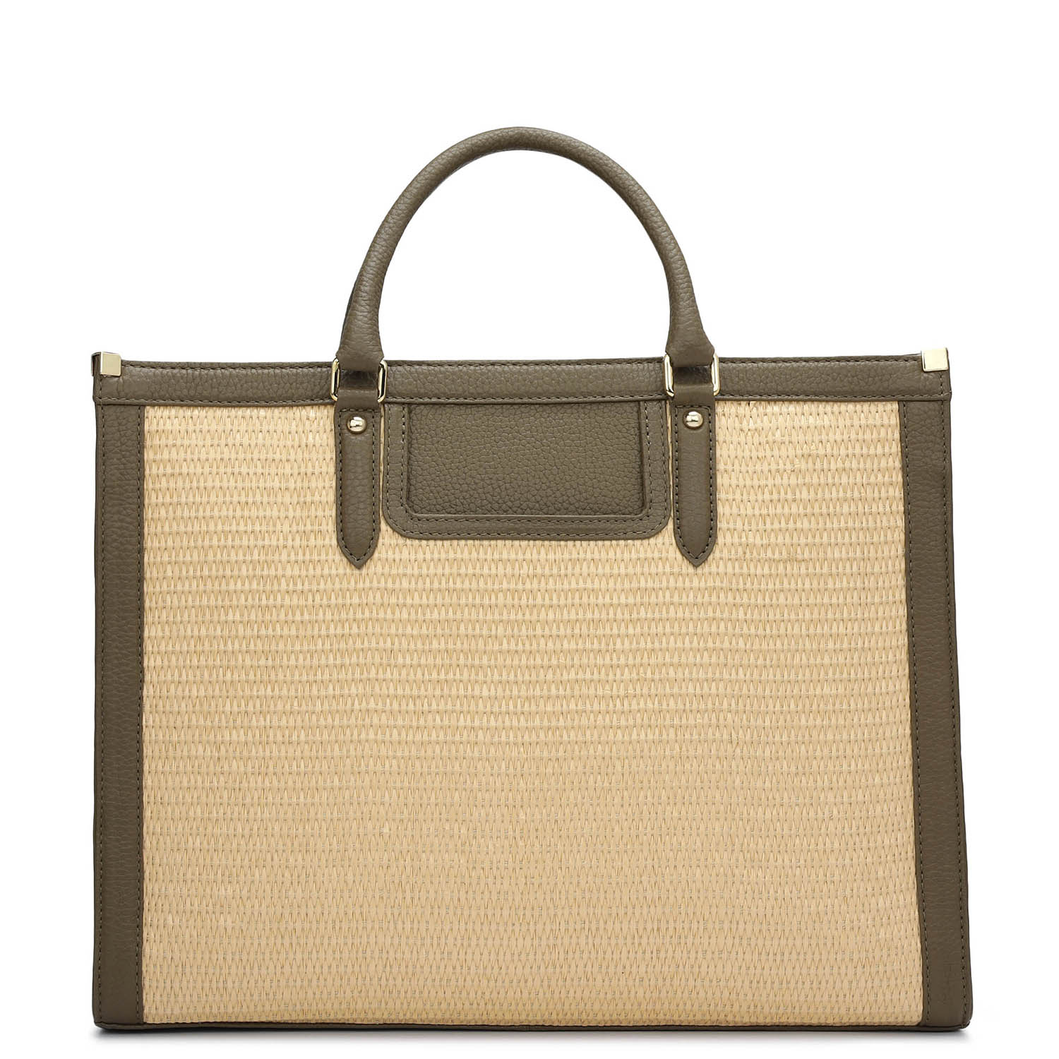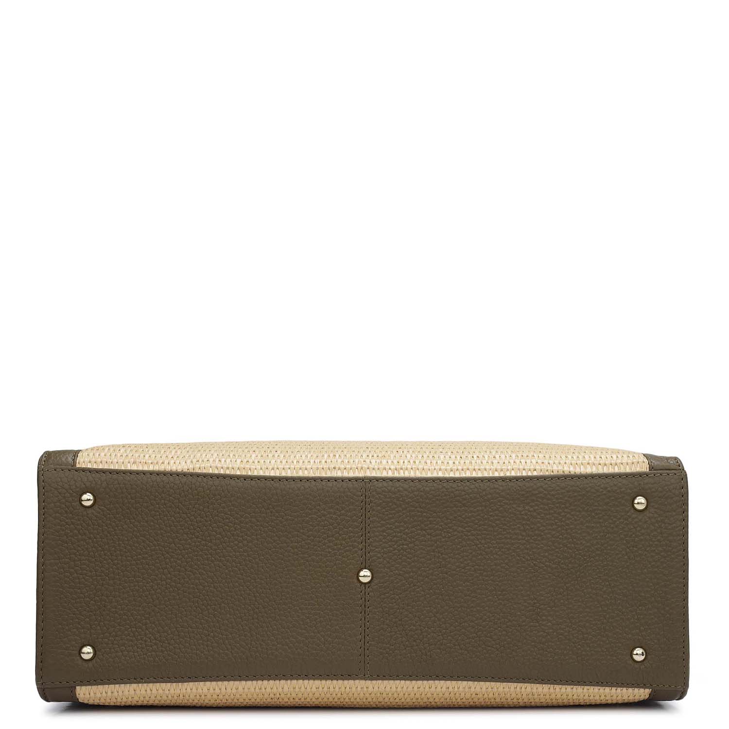Medium Raffia Wax Leather Book Tote - Beige & Moss
