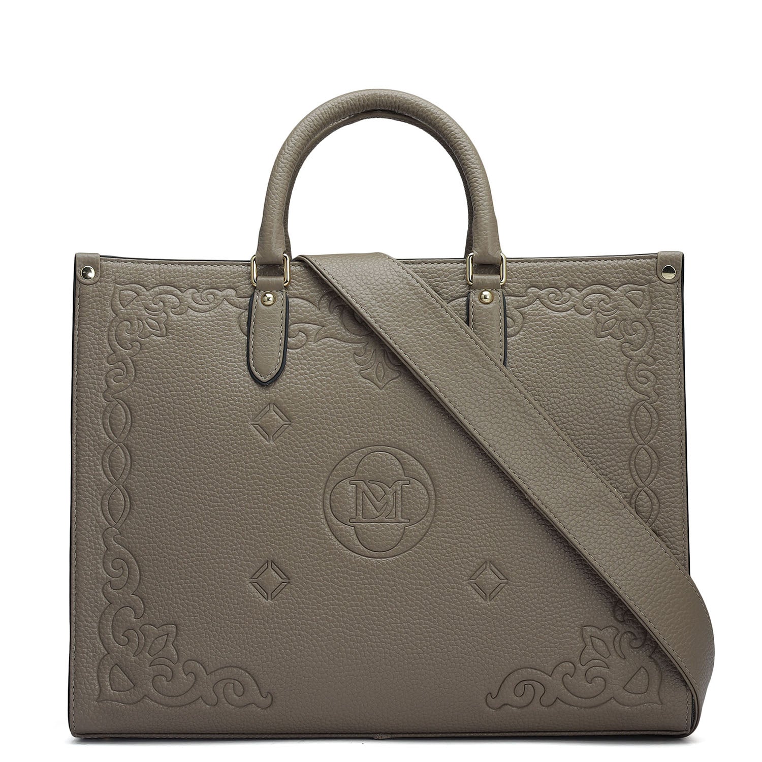 Medium Wax Leather Book Tote - Greyish Taupe