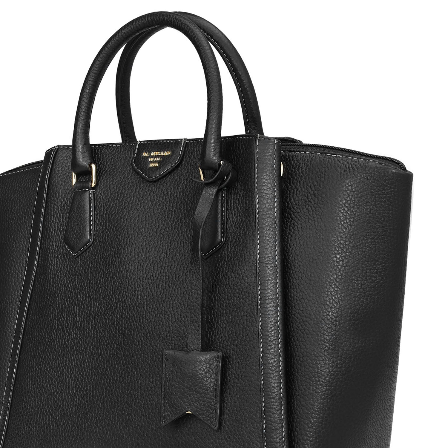 Medium Wax Leather Satchel - Black